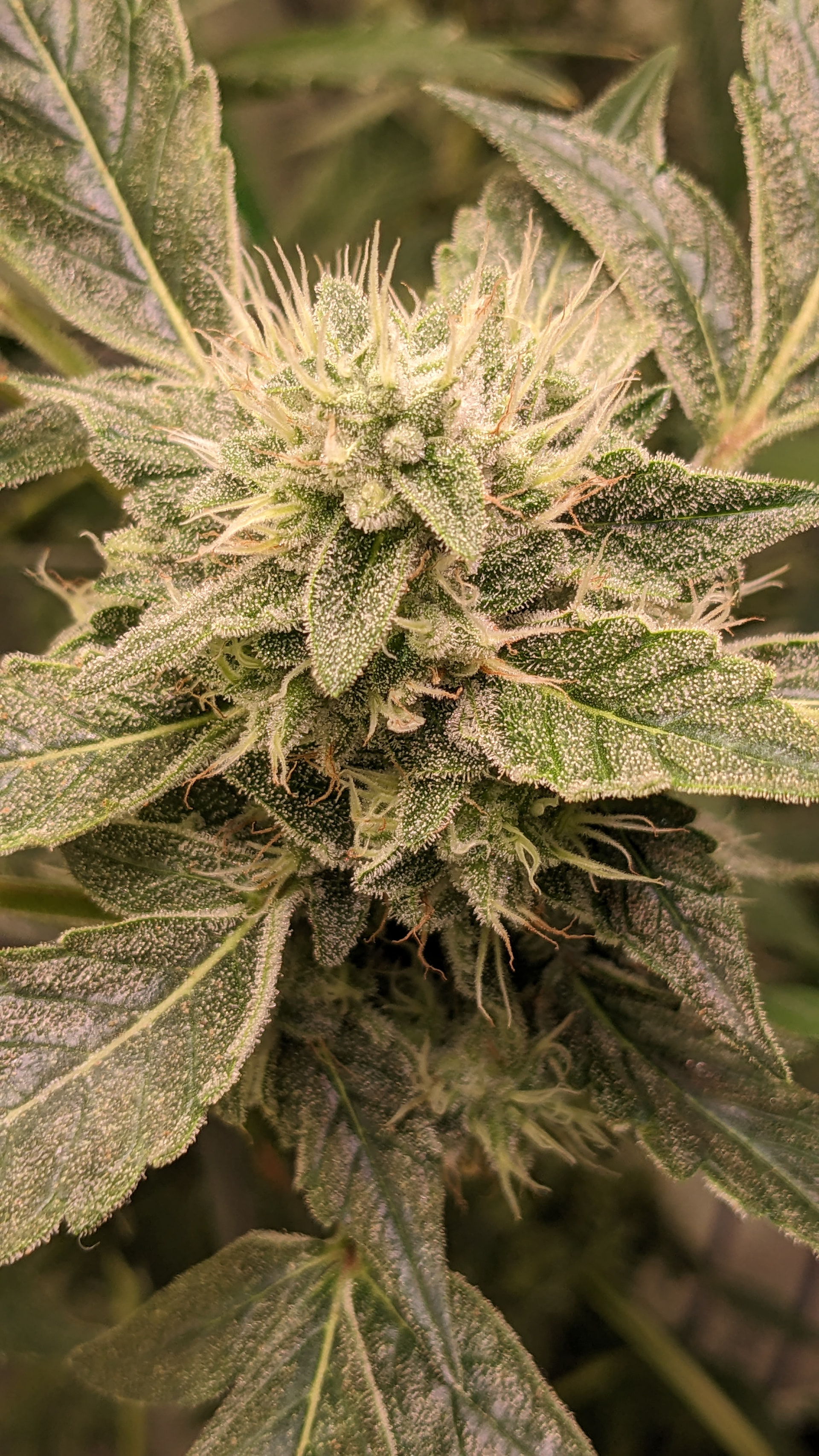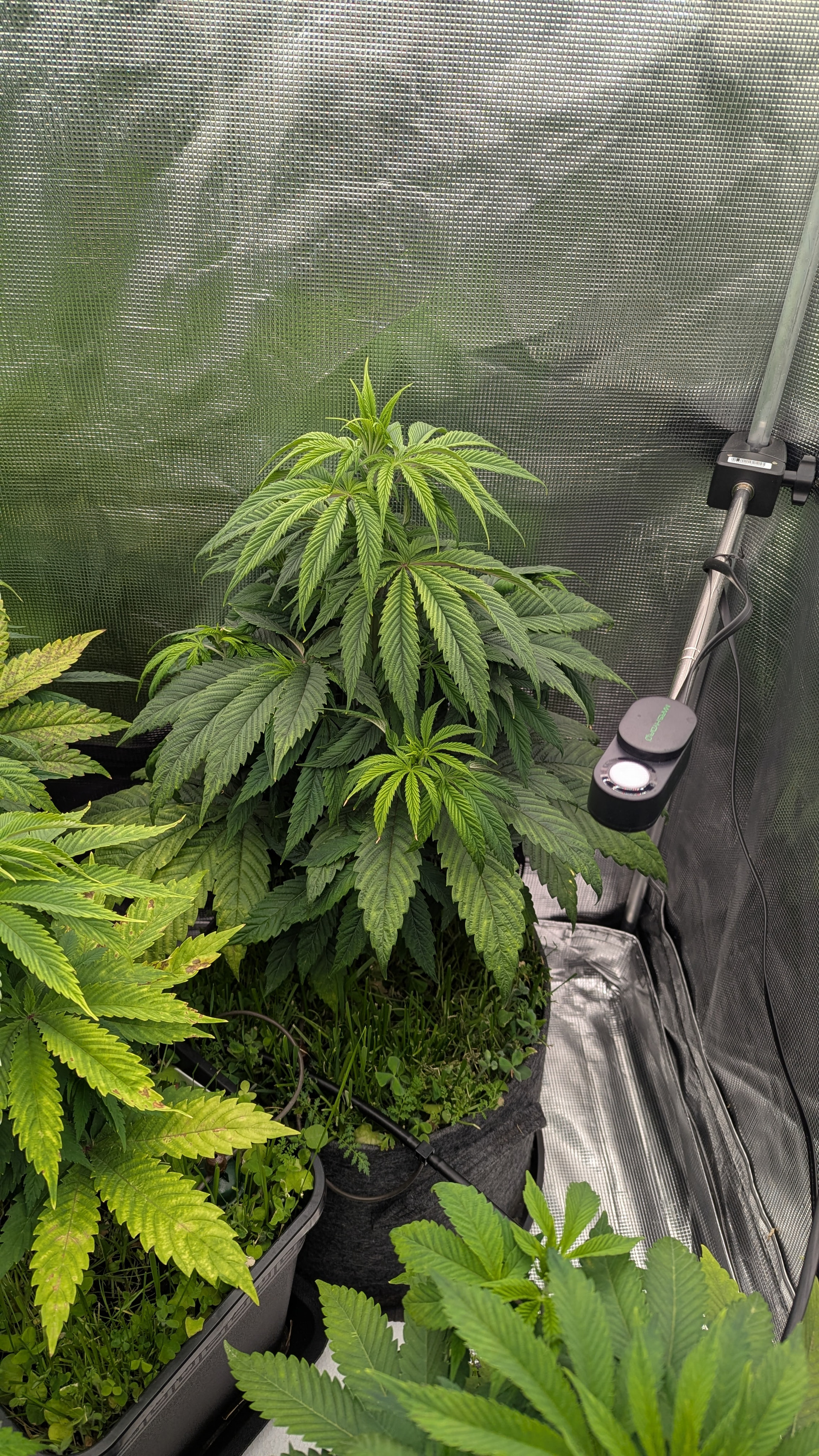 Der linke Kolben ist eine Kreuzung Zelda Runtz x Smack Town die bisher immer richtig gut gewachsen ist, warum die eine komische Bud Struktur hat weiß ich nicht aber da ich genug Platz habe darf so gut wie jede Pflanze bleiben.