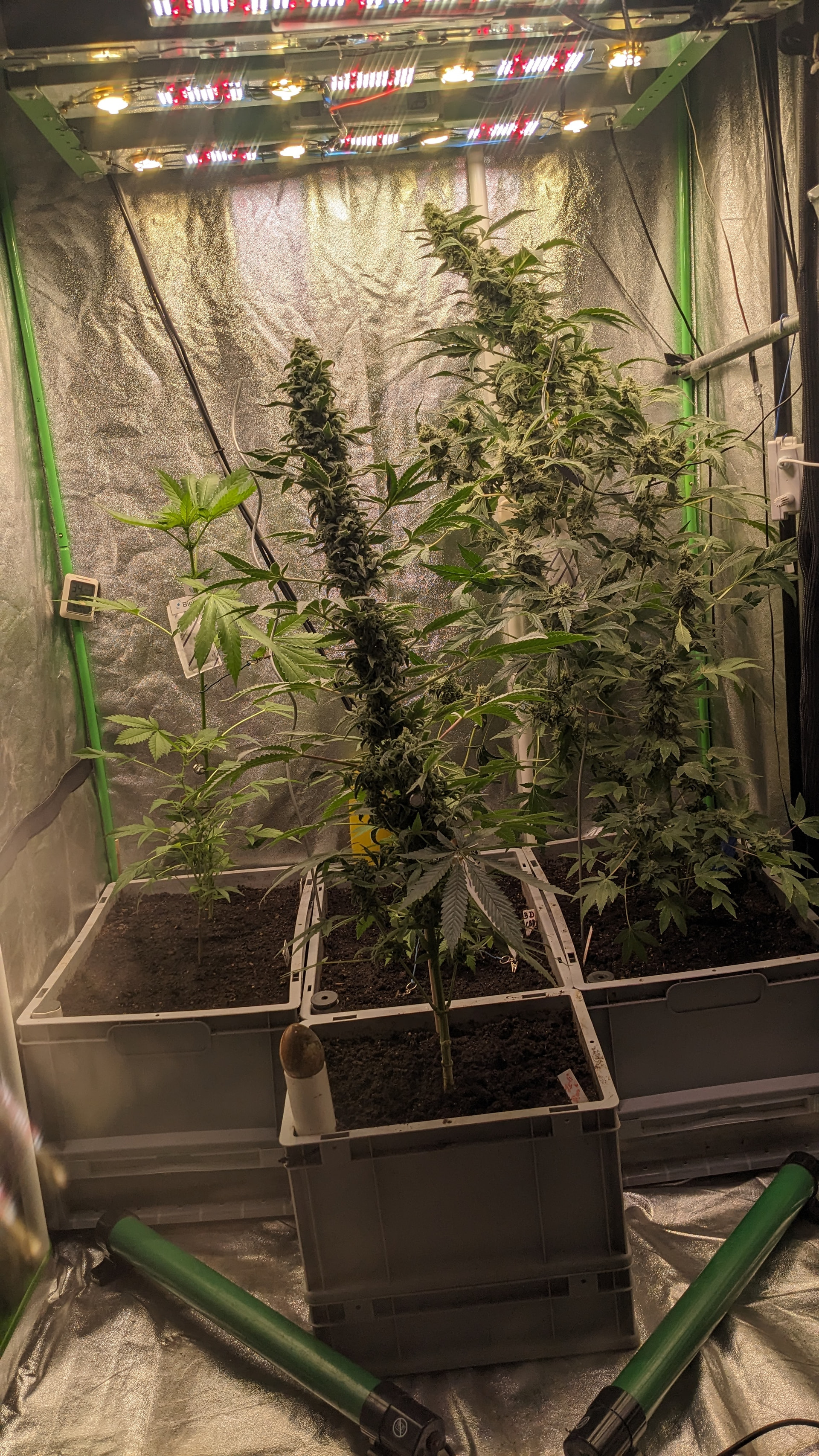 Ich werde in 6 Tagen nachschauen wie sich die Pflanzen entwickeln. Wenn sie gut aussehen wechsel ich auf Blüte. Ansonsten geht’s noch ein bisschen weiter mit der Vegetation und es gibt weiteren Tee.