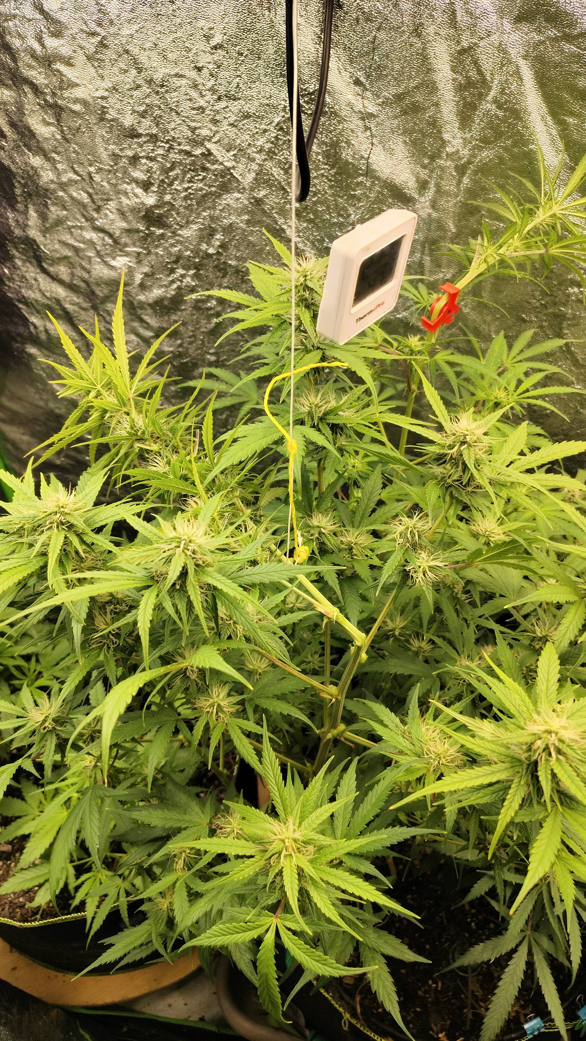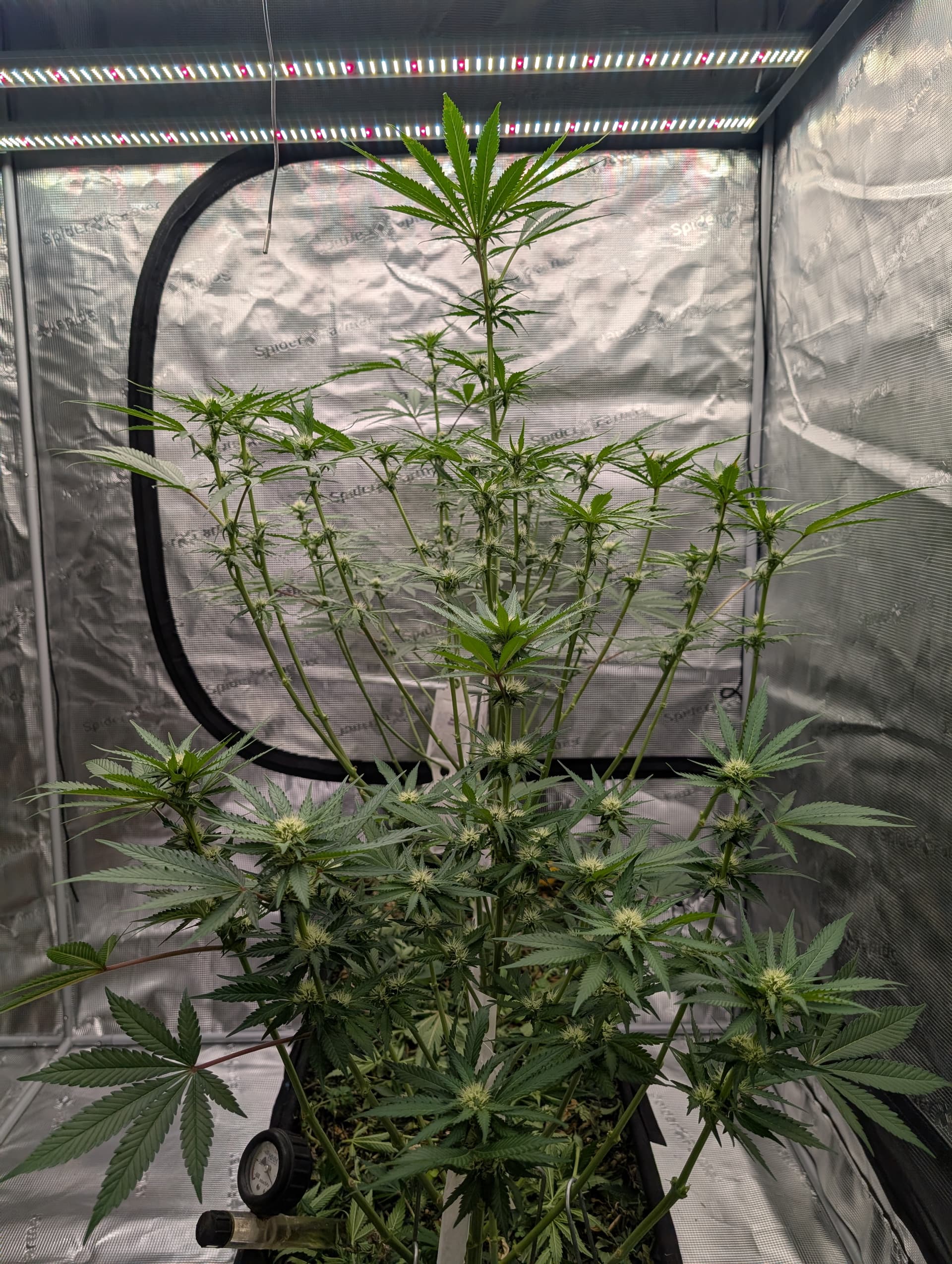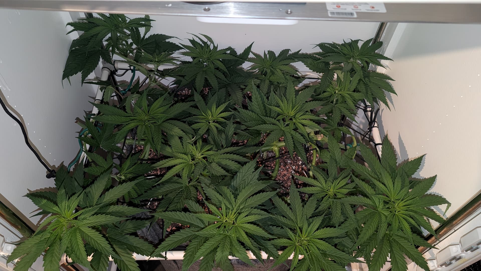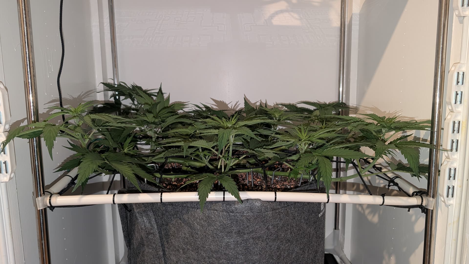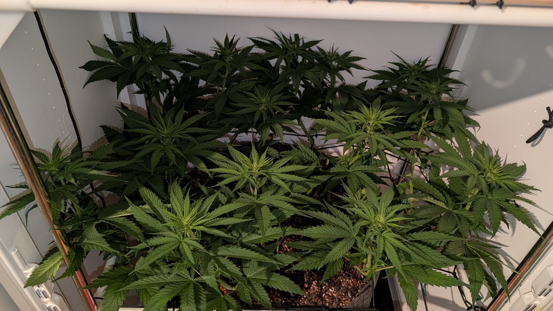Das Licht steht aktuell bei etwa 980 µmol am Headbud und 660–680 µmol an der Seite, Autopot läuft im Wechsel zwischen 20 und 50 mbar, damit die Wurzeln aktiv bleiben.
