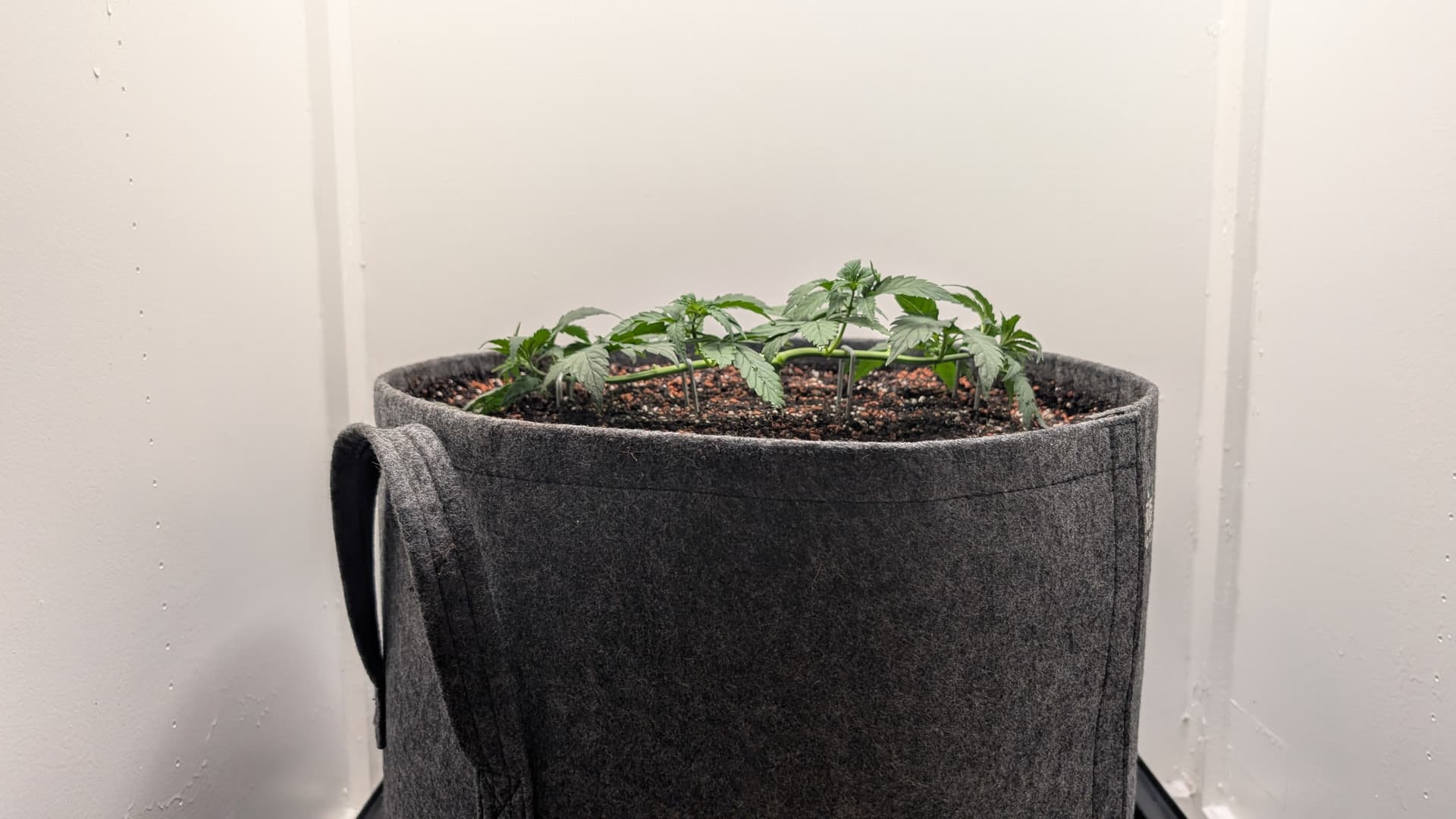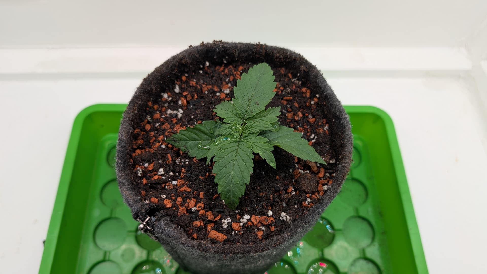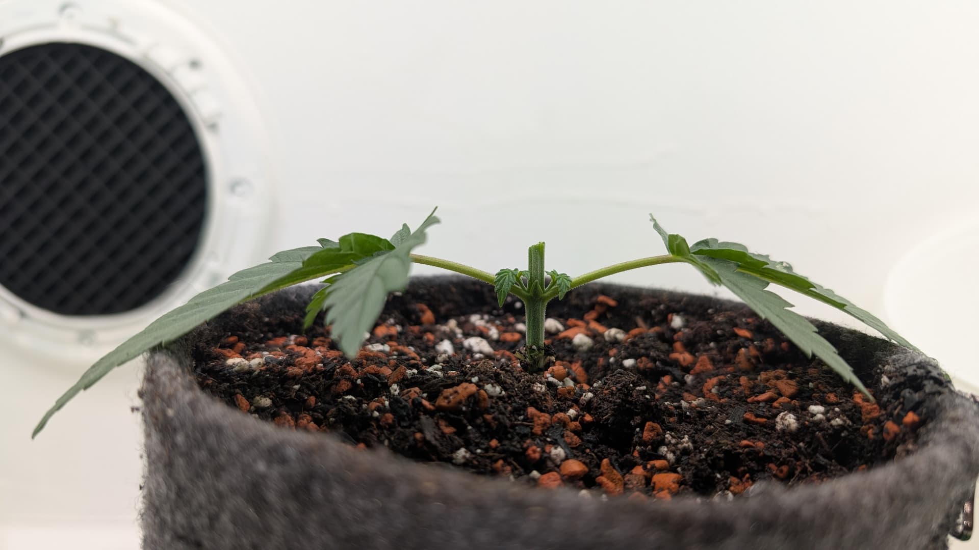 Vor 8 Tagen hat sie, in einem 0,25l Töpfchen gefüllt mit BB lightmix, das Licht der LED entdeckt. Heute wurde Sie in 3l Stofftopf mit meinem Erdmix umgetopft