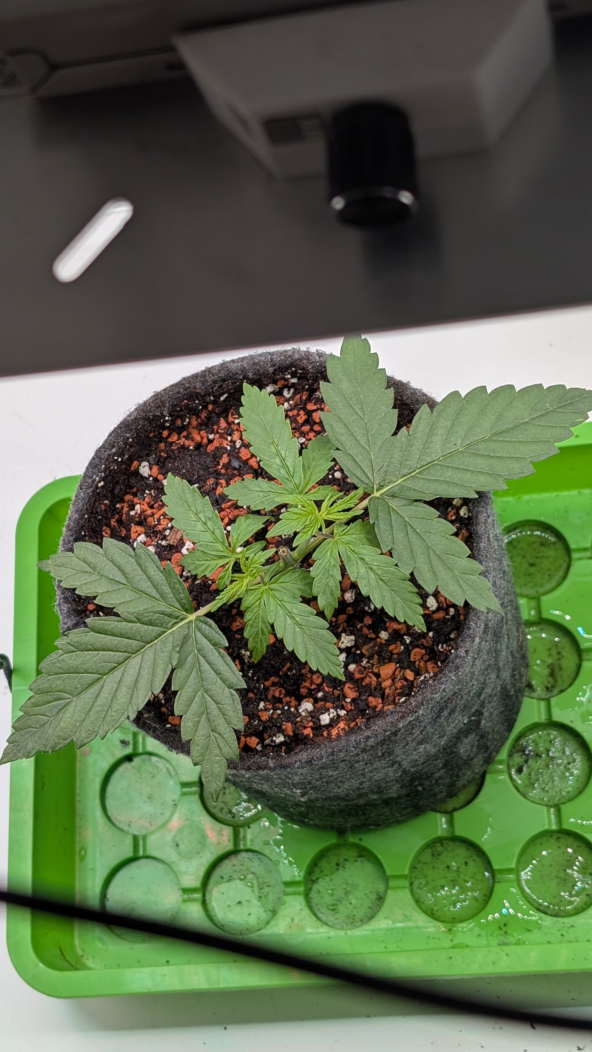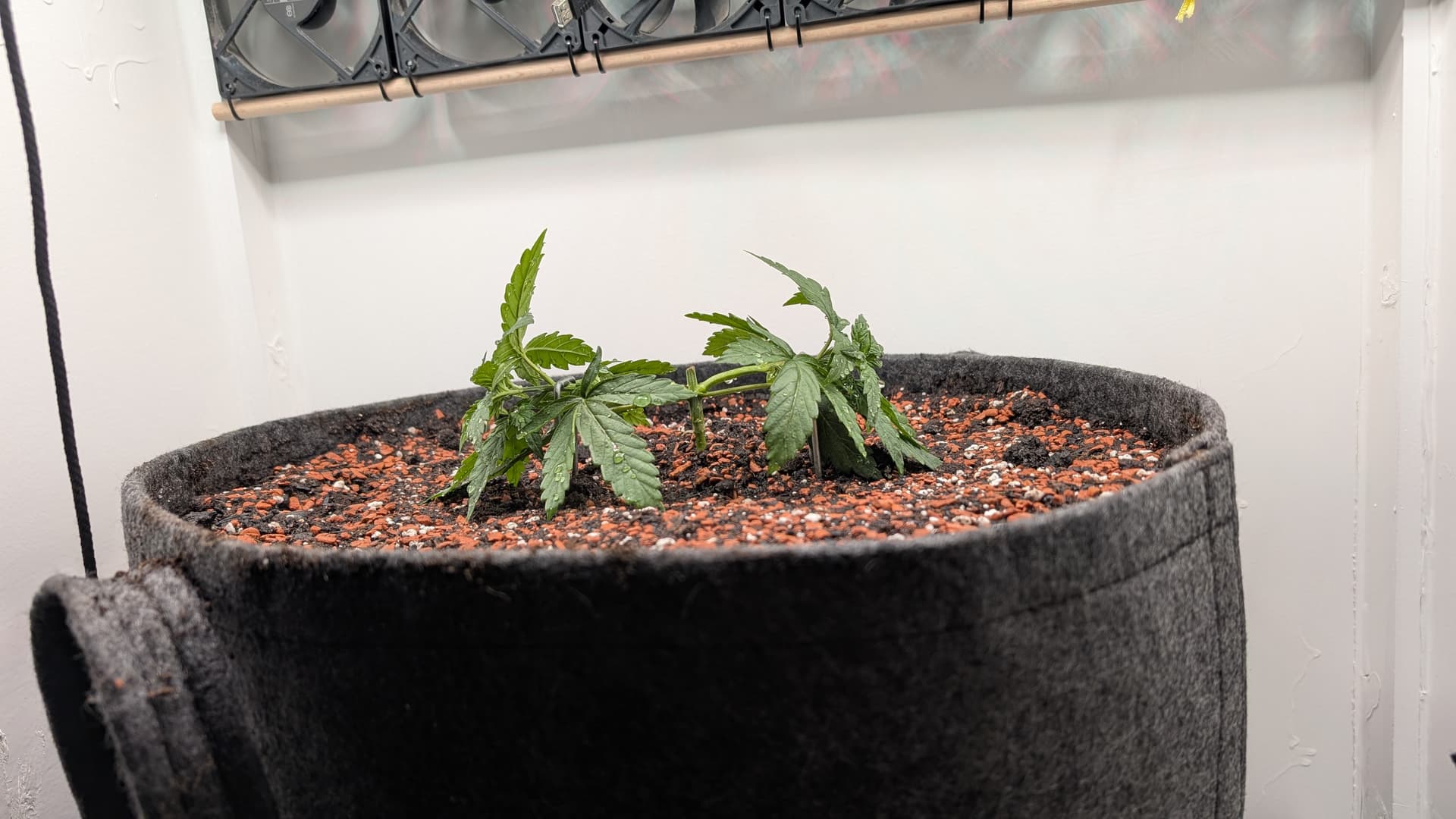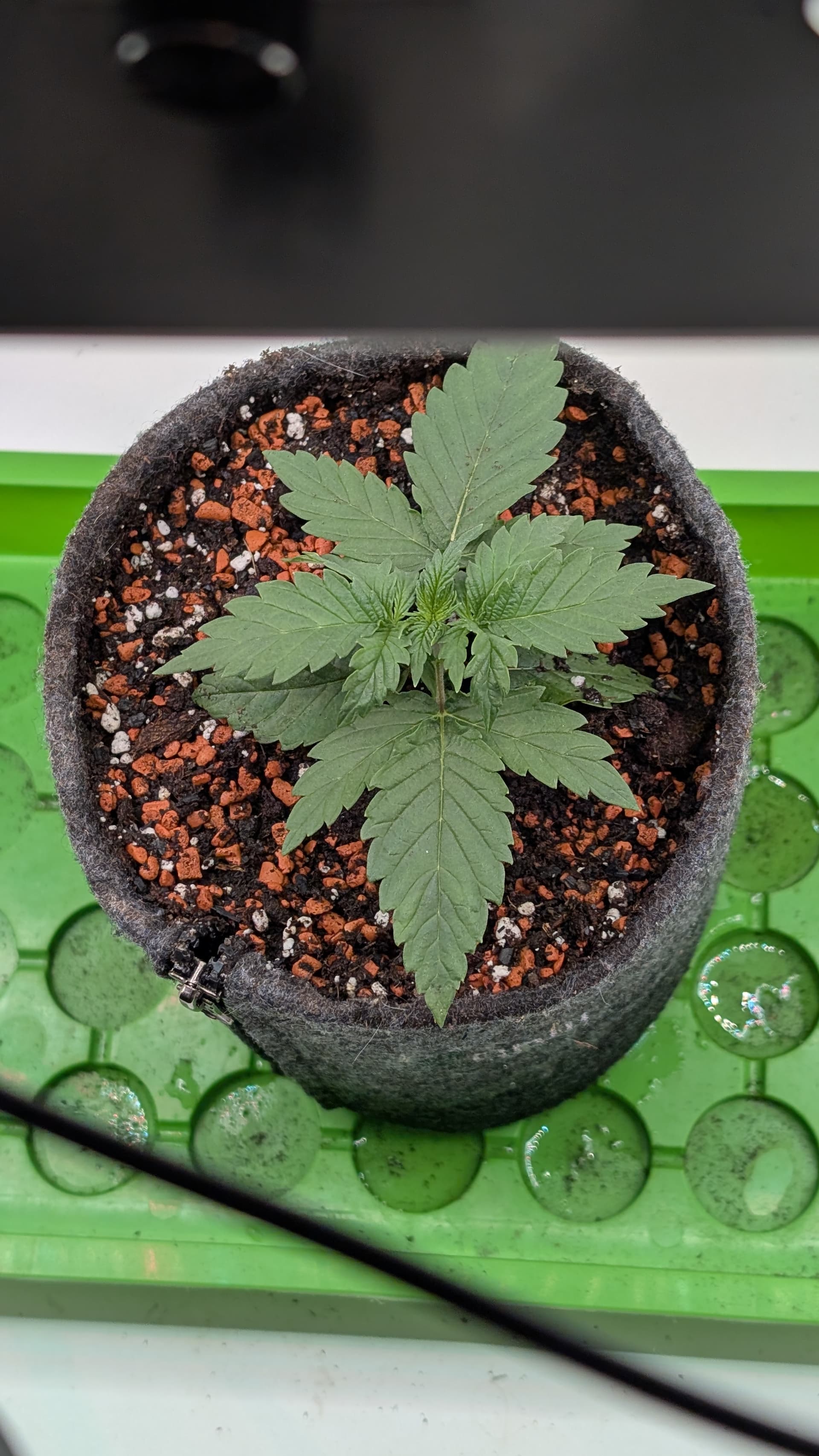 Vor 8 Tagen hat sie, in einem 0,25l Töpfchen gefüllt mit BB lightmix, das Licht der LED entdeckt. Heute wurde Sie in 3l Stofftopf mit meinem Erdmix umgetopft