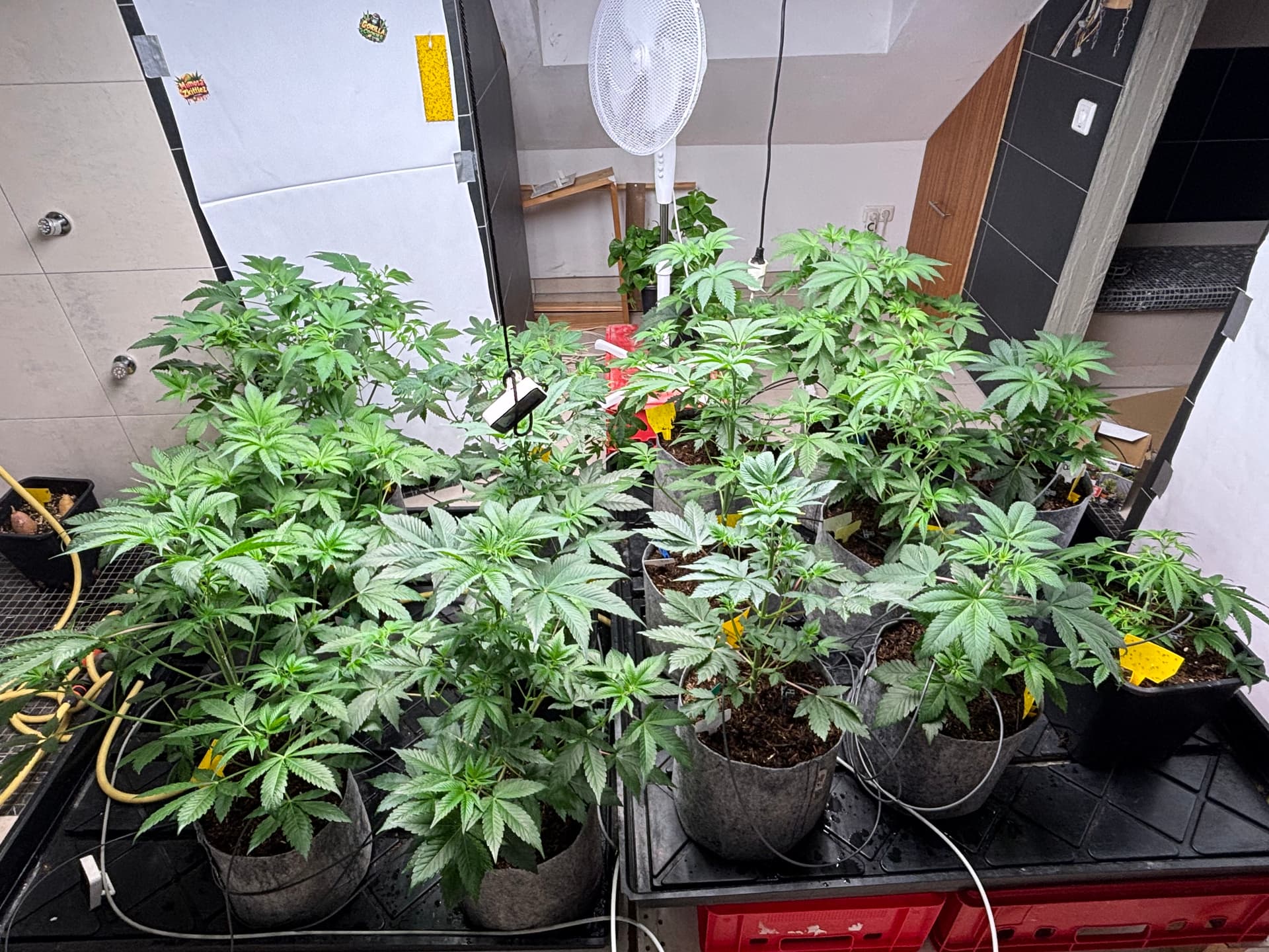 Hab heute etwas umgeräumt. Den einen Growtable, mit den vorwiegend Dopesoil Damen, habe ich mit Metzgerkisten erhöht. So Spar ich mir den ein oder anderen Einzeltopf, außerdem angenehme Arbeitshöhe:)