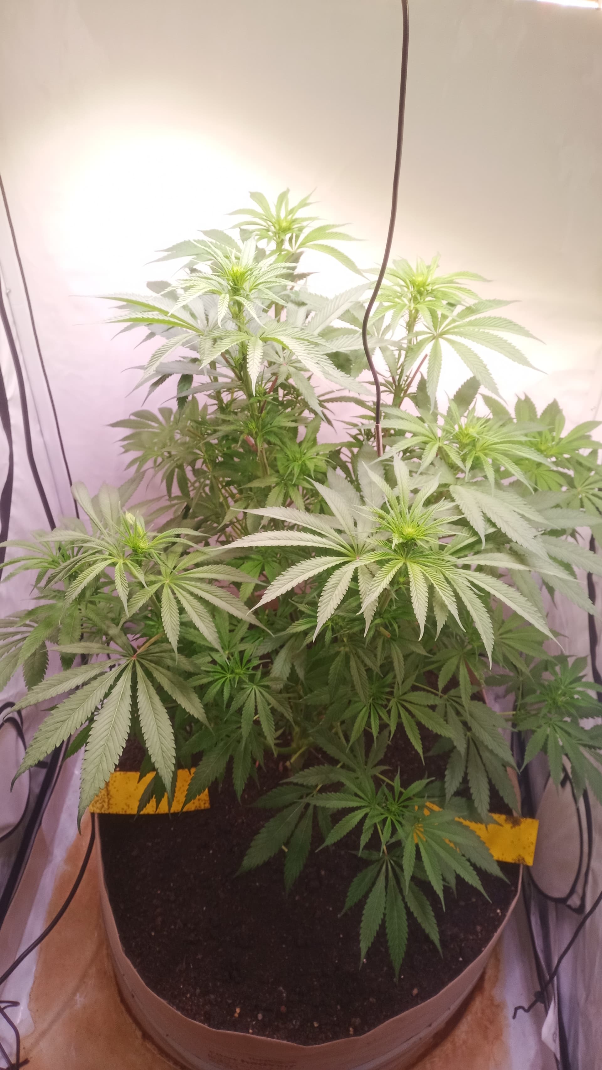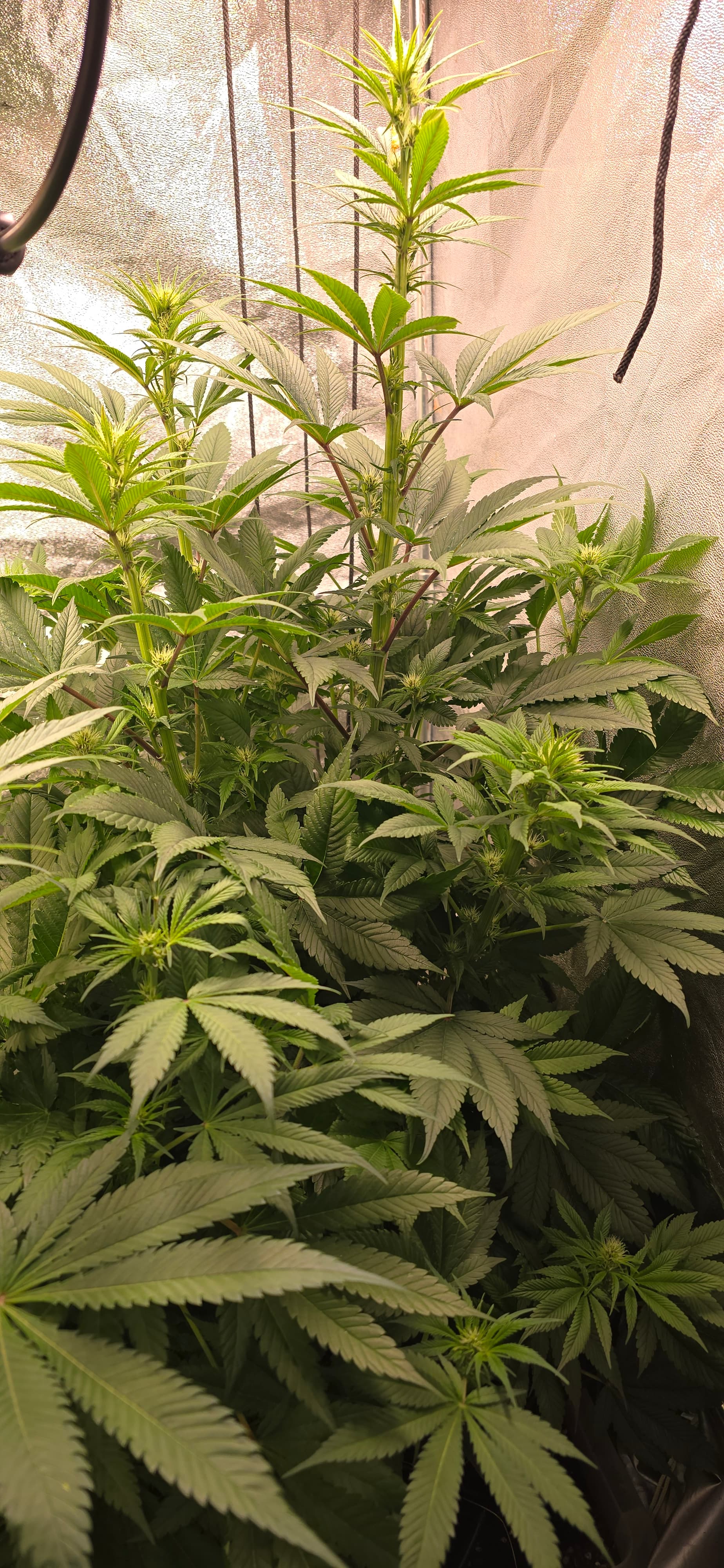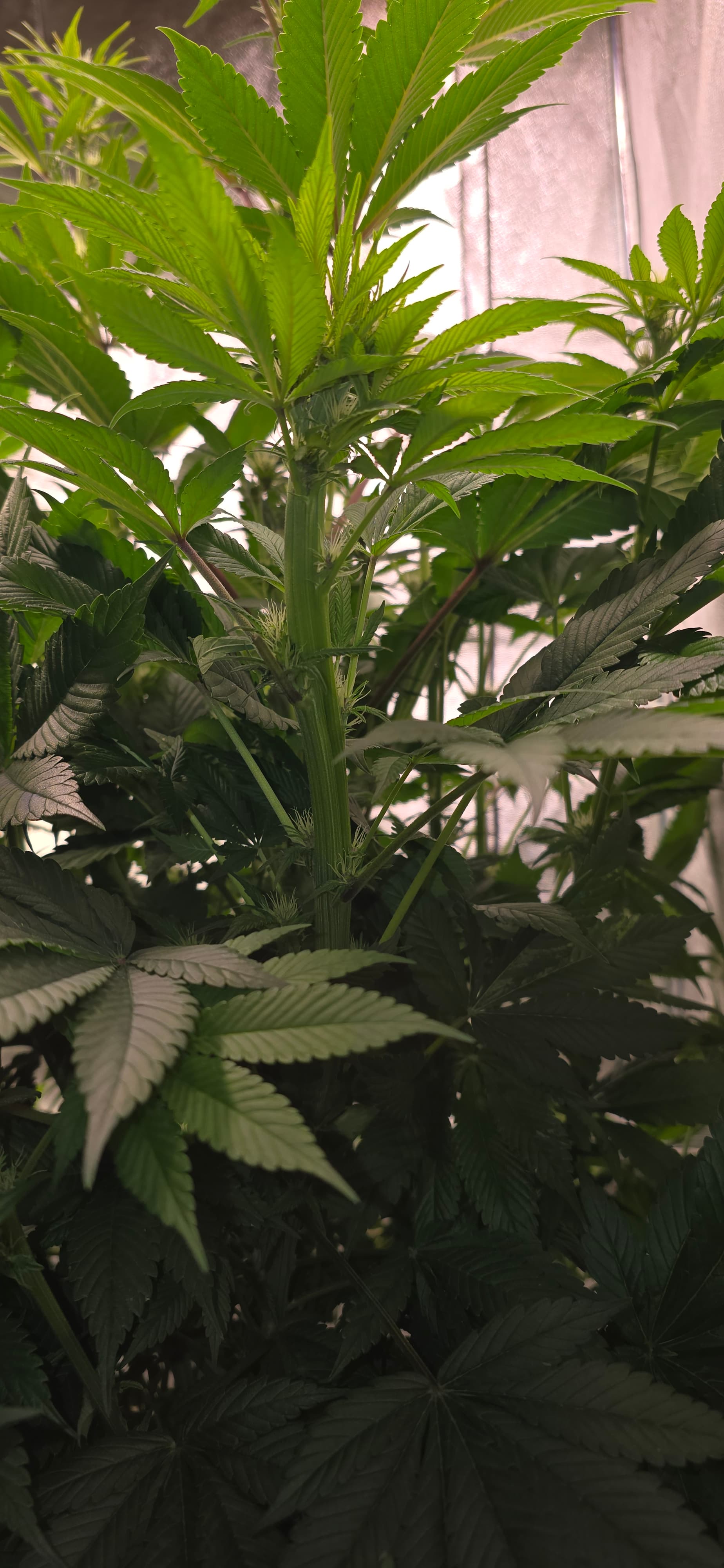 Ich bin sehr zufrieden mit dem Verlauf, den Pflanzen geht es hervorragend. Die Blütenproduktion ist voll angelaufen. Die rechte Pflanze die ich nur mehr als Panzer bezeichne ist echt krass. Ich hatte noch nie so einen dicken Stamm im Indoor Bereich.