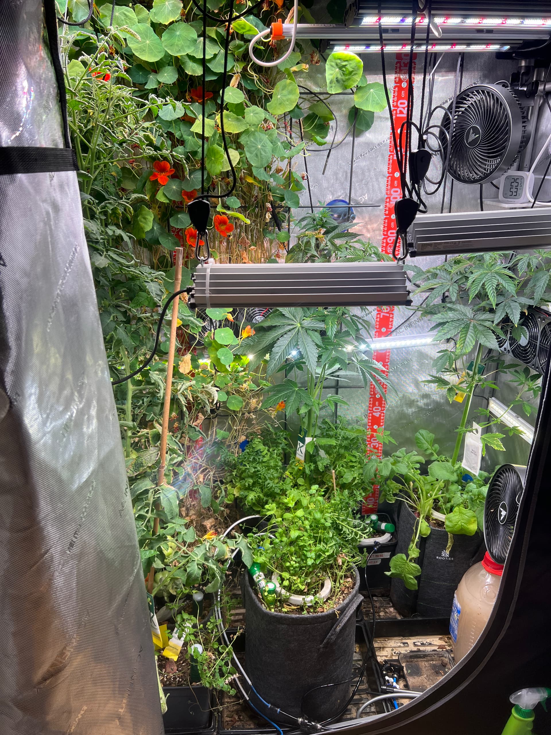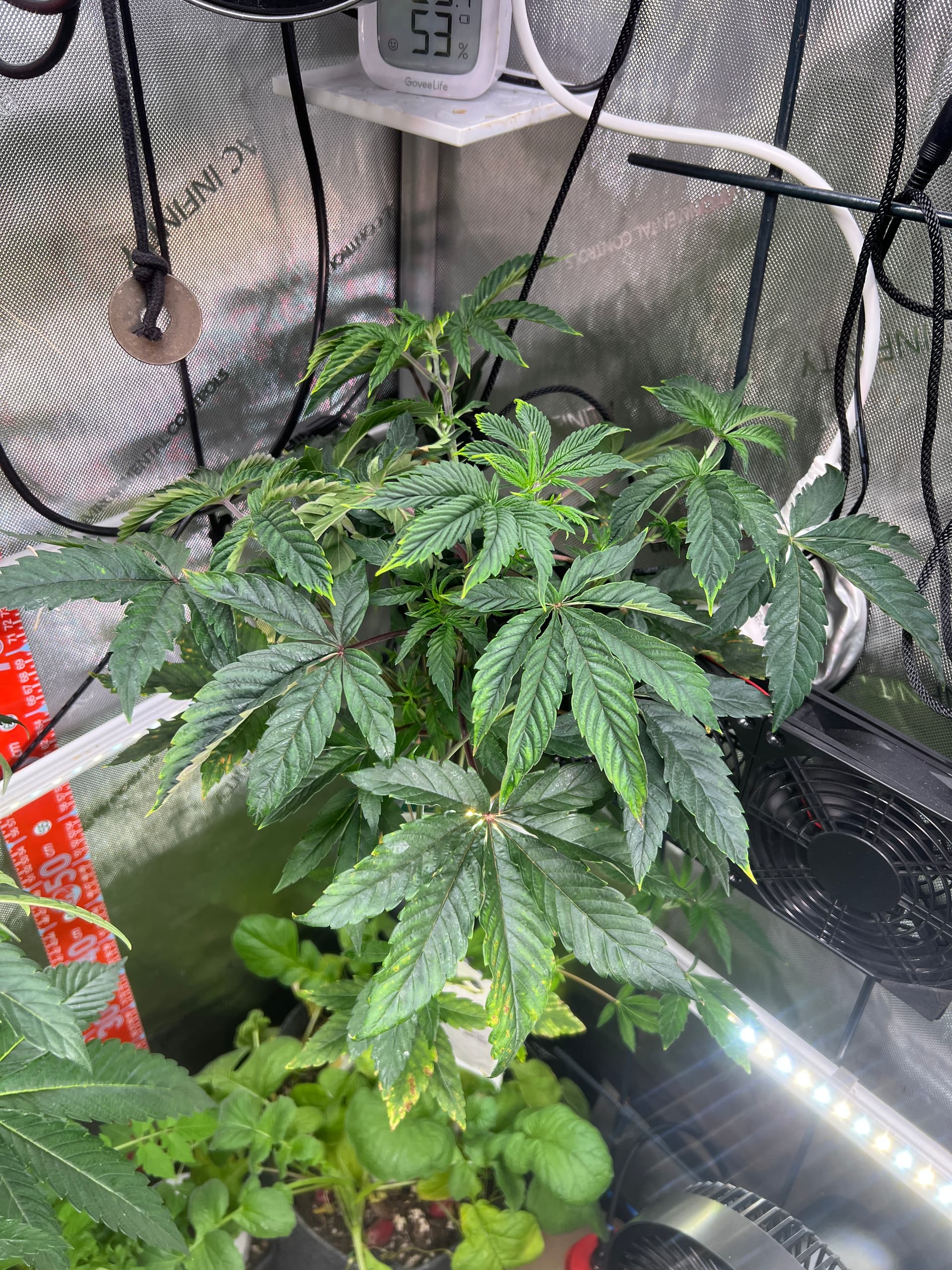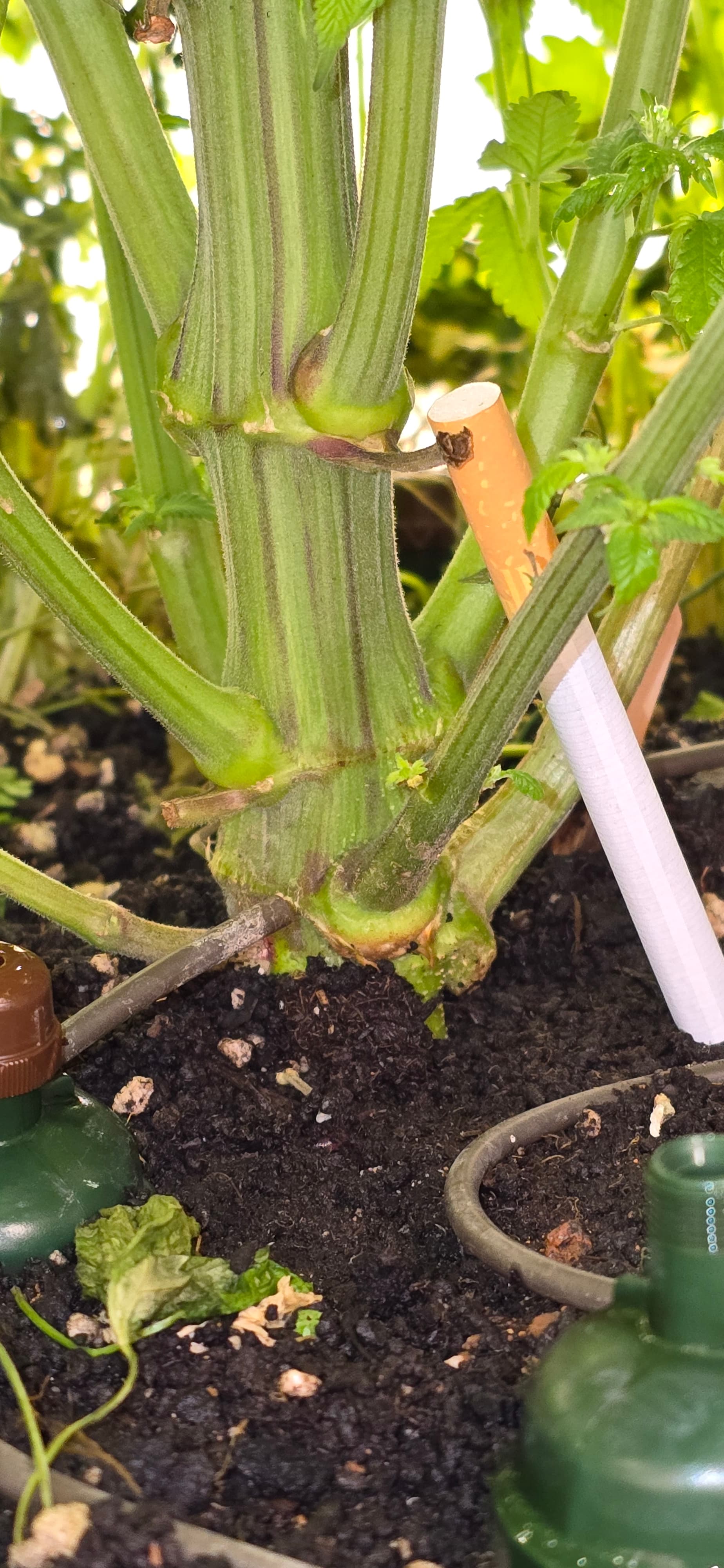 Ich bin sehr zufrieden mit dem Verlauf, den Pflanzen geht es hervorragend. Die Blütenproduktion ist voll angelaufen. Die rechte Pflanze die ich nur mehr als Panzer bezeichne ist echt krass. Ich hatte noch nie so einen dicken Stamm im Indoor Bereich.
