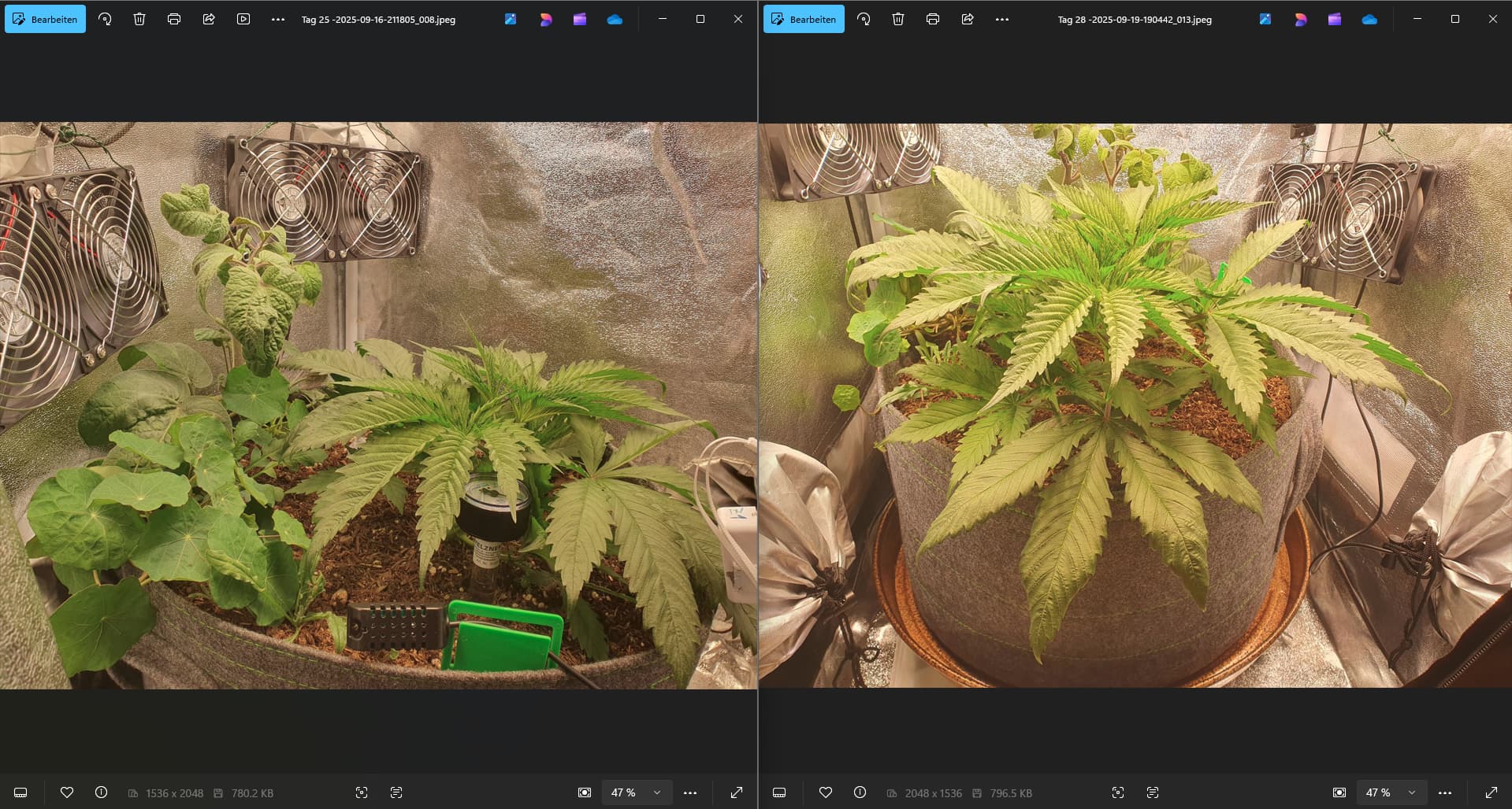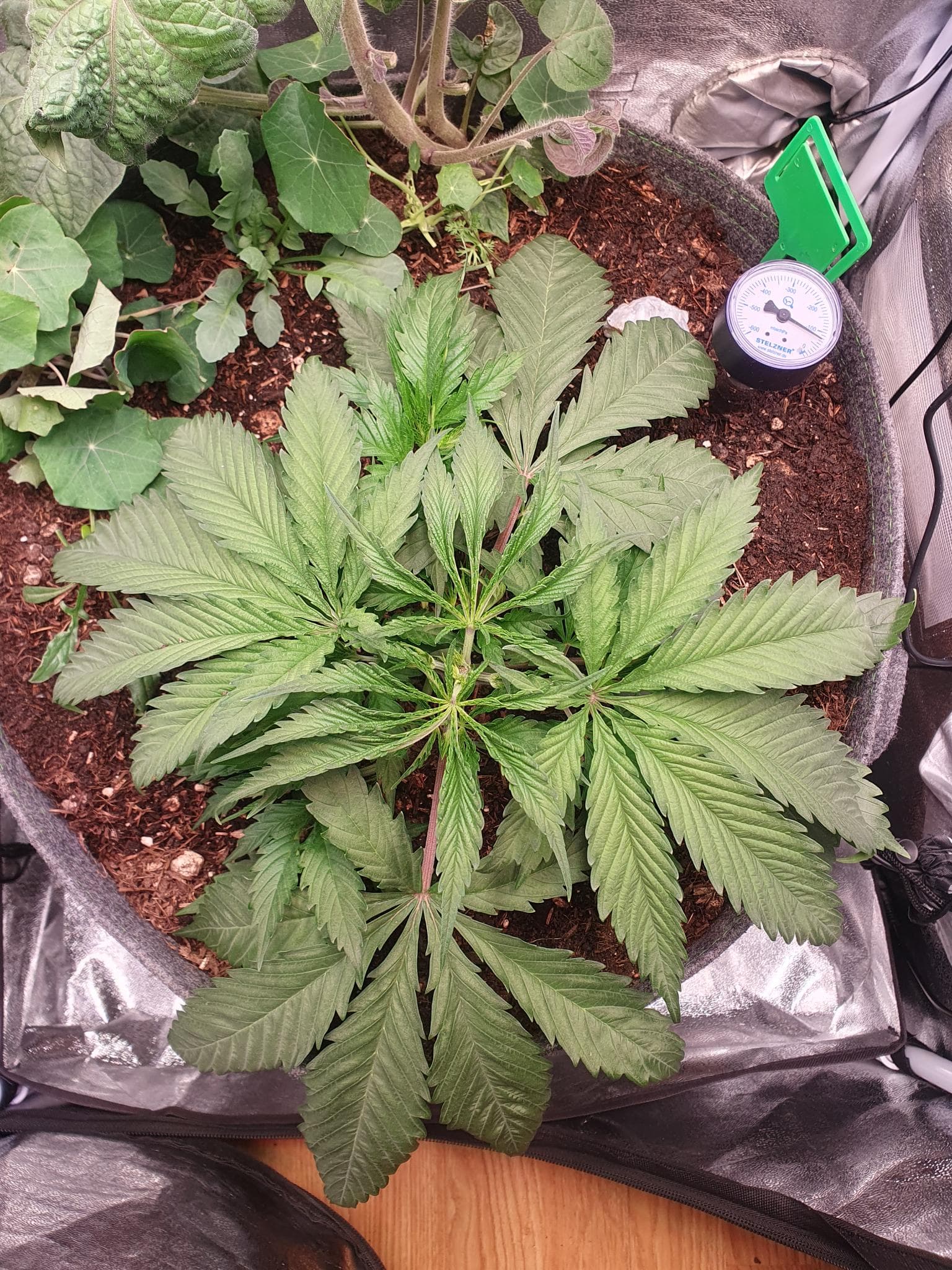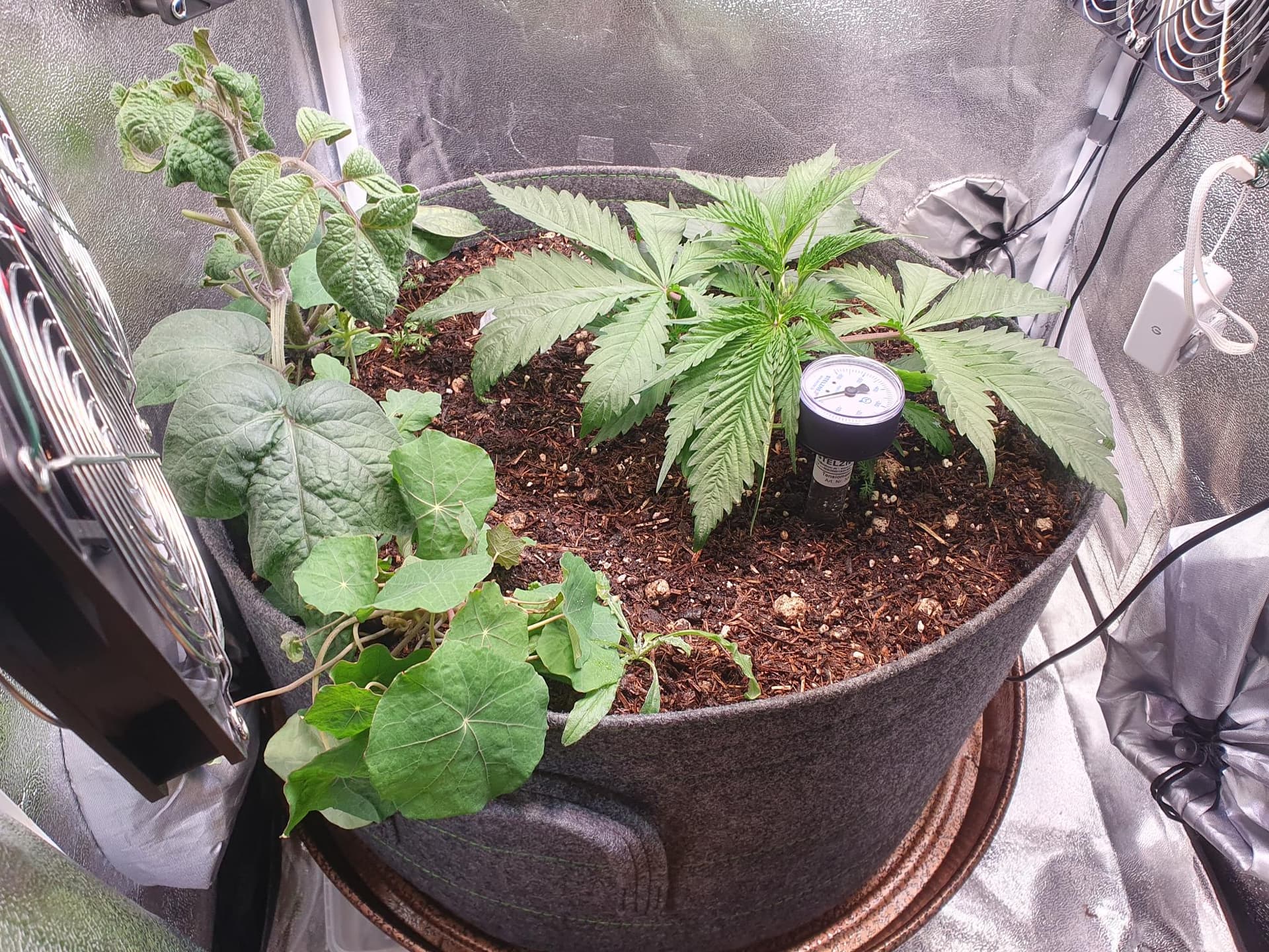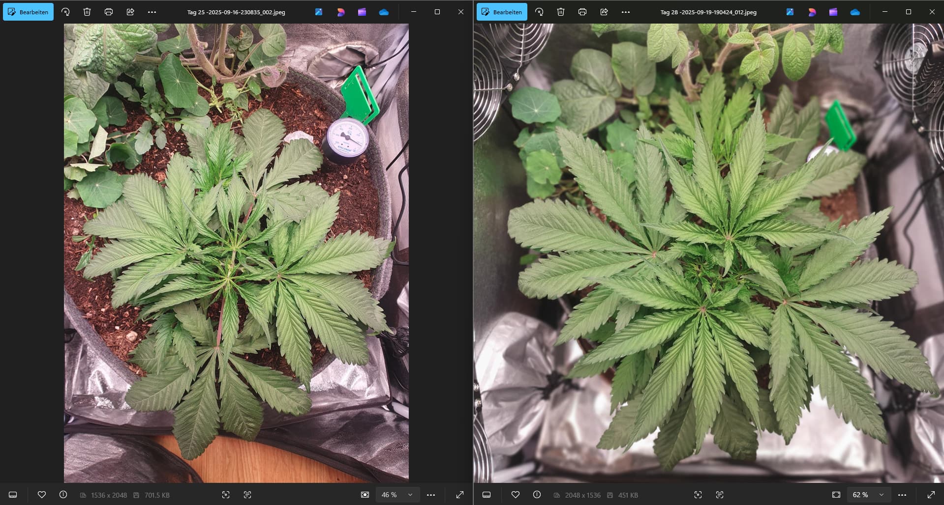 Trotzdem habe ich mich schon daran gewöhnt und finde es wirklich schön und entspannend, wenn ich das Zelt aufmache und die Pflanzen betrachte. Das andere Zelt mit dem größeren Topf kommt mir schon richtig kahl vor, da ich in diesem Topf fast alle Beipflanzen raus gemacht habe. Aber es wächst noch was, hoffentlich wird es dort auch richtig grün.