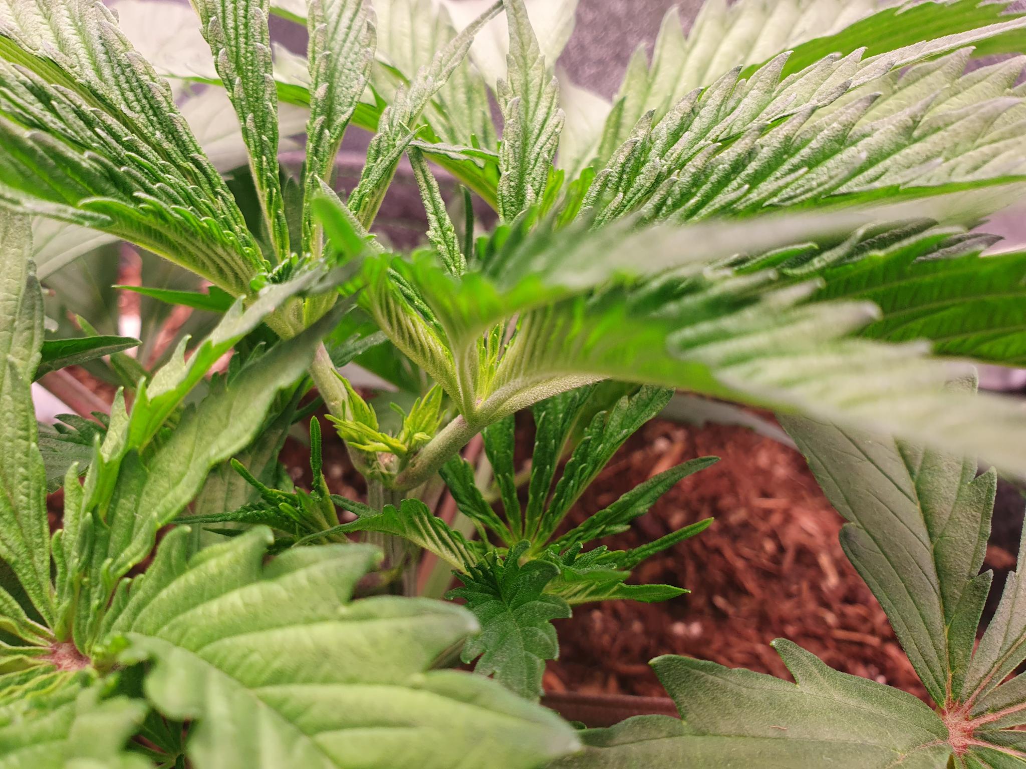 Sativas wachsen aber vor allem in der ersten Hälfte der Blüte erstmal ungehindert weiter, deswegen kann es besser sein, erst nach vielleicht vier Wochen bei 12/12 richtig in die waagerechte zu gehen und alles anzubinden, sonst wird es zwischen den Sekundärzweigen, die sich dann zangsläufig bilden und nach oben streben, womöglich zu dicht. Es ist ja schade, wenn man dann zwecks ausreichender Belüftung die Hälfte wegschneiden muss, obwohl überall halbfertige Blüten dran sind. Weil sonderlich schimmeltolerant ist die Beldia leider nicht. Sie kommt eben aus einer echt trockenen Weltgegend.