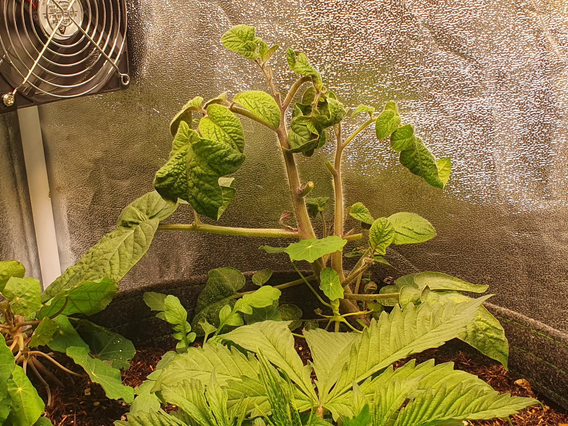 Mit den anderen Pflanzen im Zelt musste ich mich auch anfreunden und leider ist es ein nicht ganz so harmonisches Miteinander, zumindest nicht für die Tomate.