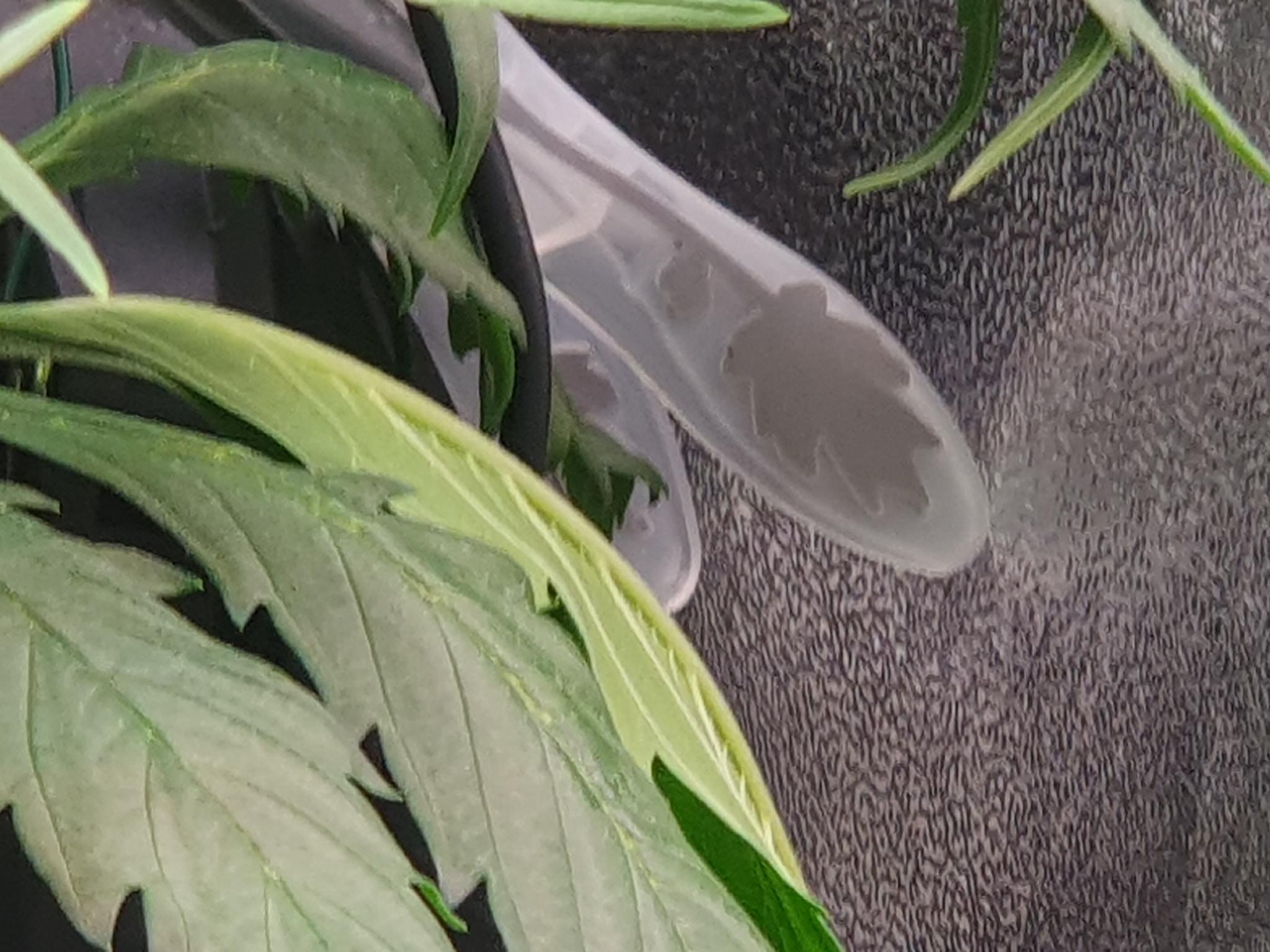 Bezgl. der Überdüngung fand ich es sehr interessant, dass mir heute die gelben Düngespitzen an den Blättern der Triebe aufgefallen sind. In den vorherigen Grows hatte ich das auch immer, aber bei dieser Pflanze ist es mir erst heute aufgefallen.