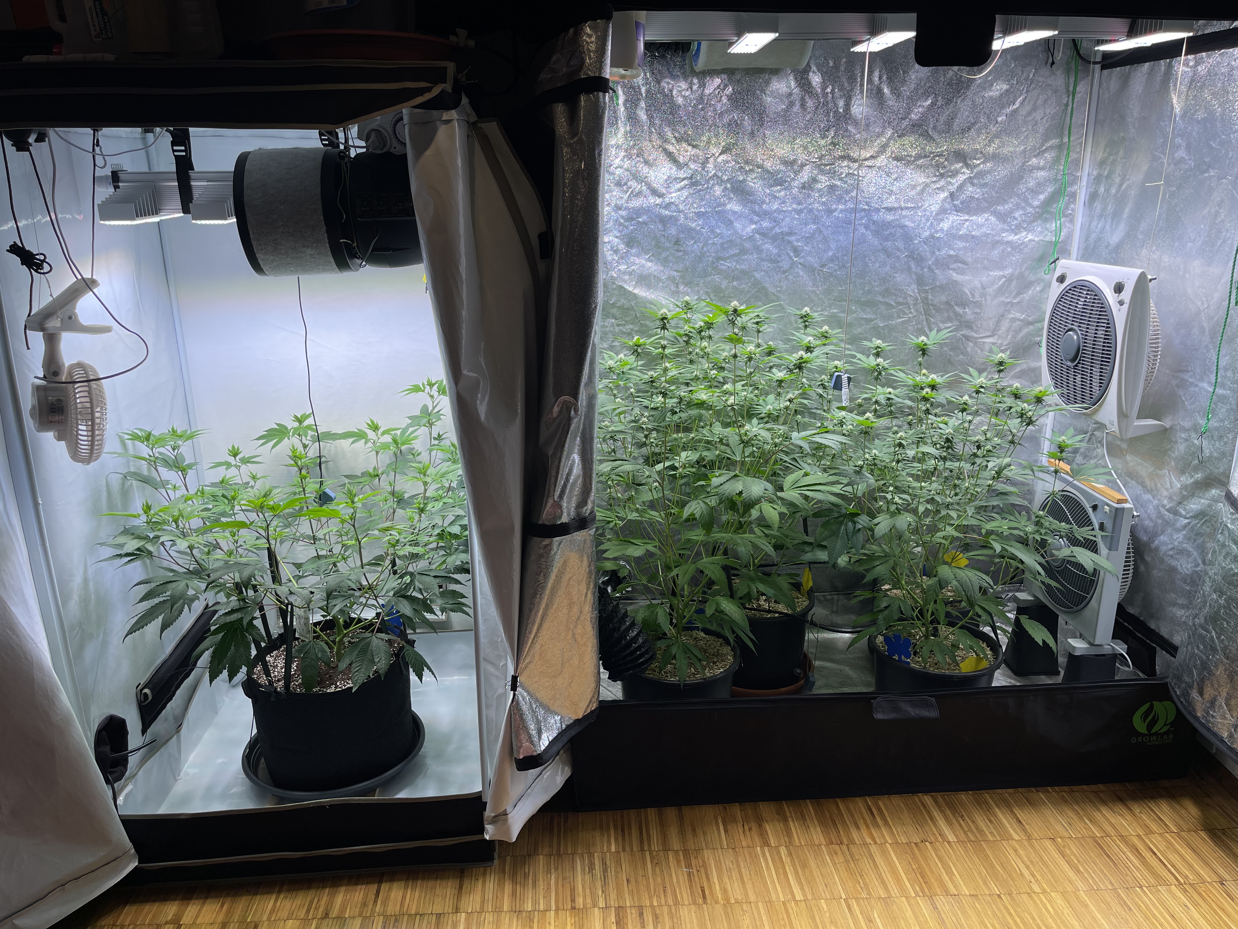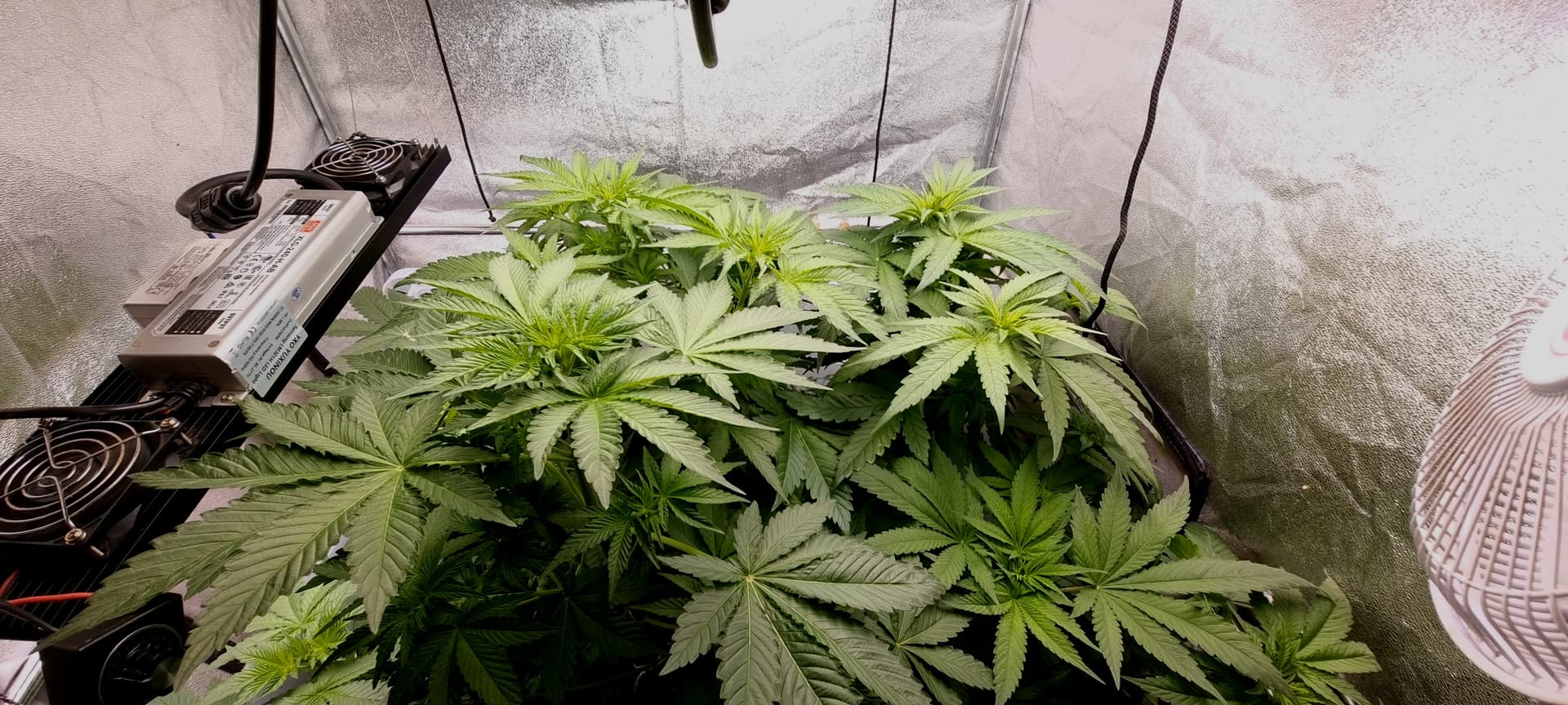 Es stehen 4 verschiedene Strains im Zelt 6 Pflanzen insgesamt.