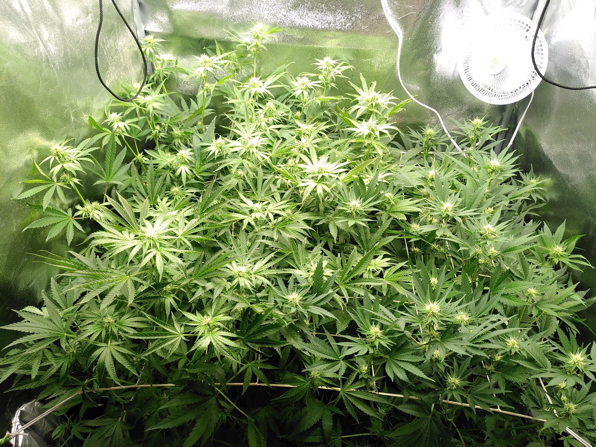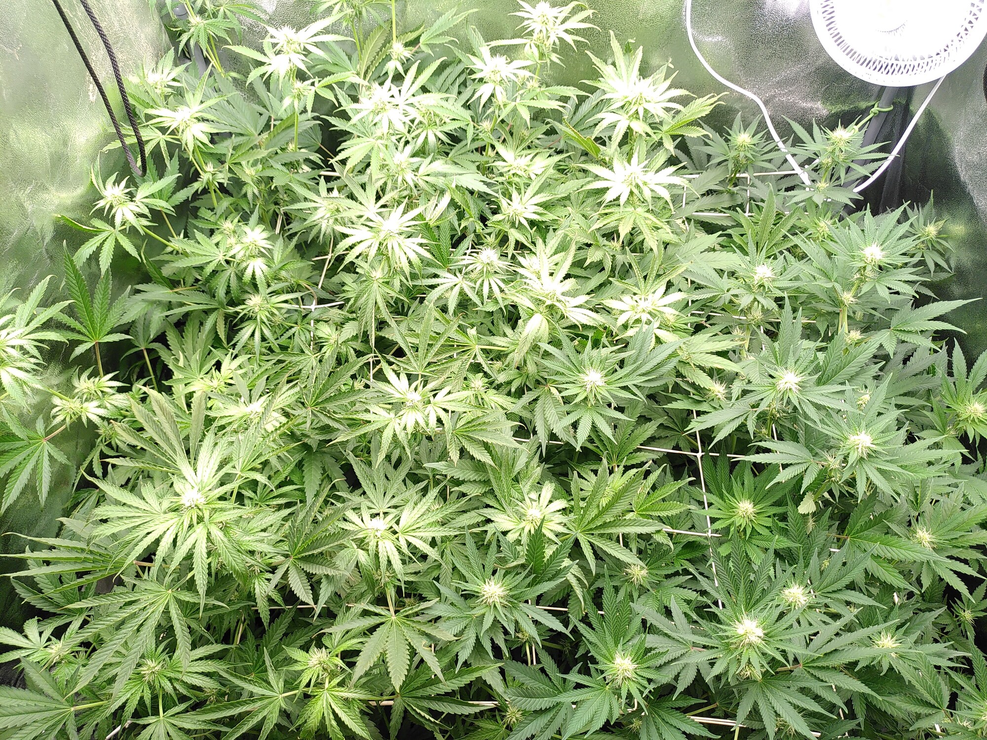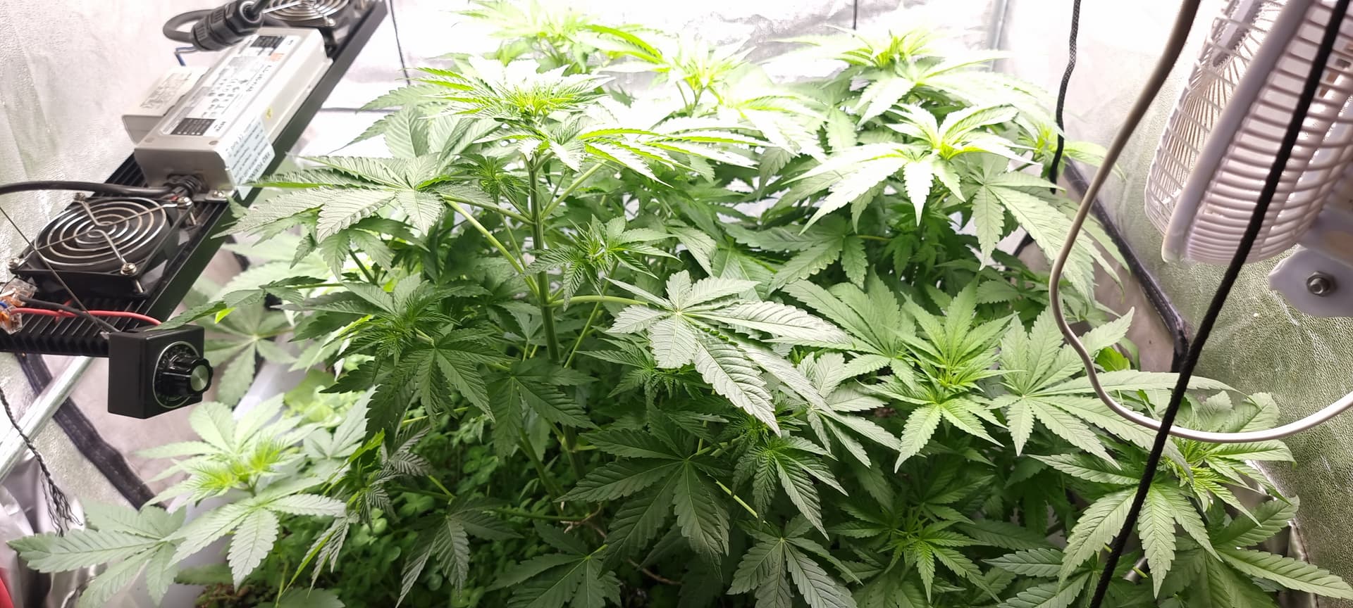 Da ich beim letzten Grow Probleme mit der Höhe hatte habe ich die Wachstumsphase bei diesem Run verkürzt. Die 2 SweetSeeds Pflanzen haben eine Woche 18Std bekommen, der Rest 2 Wochen. Am Anfang wurden die 12Std Licht nur wiederwillig akzeptiert. Seit 1 Woche aber sind sie explodiert.