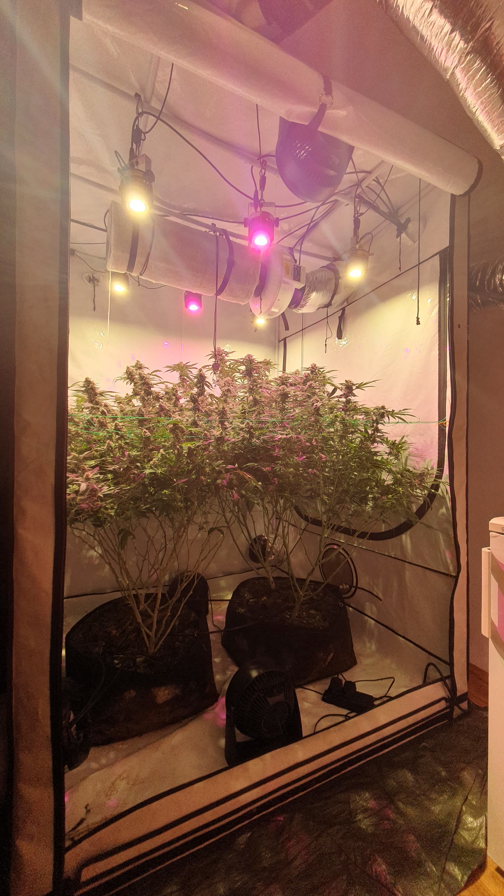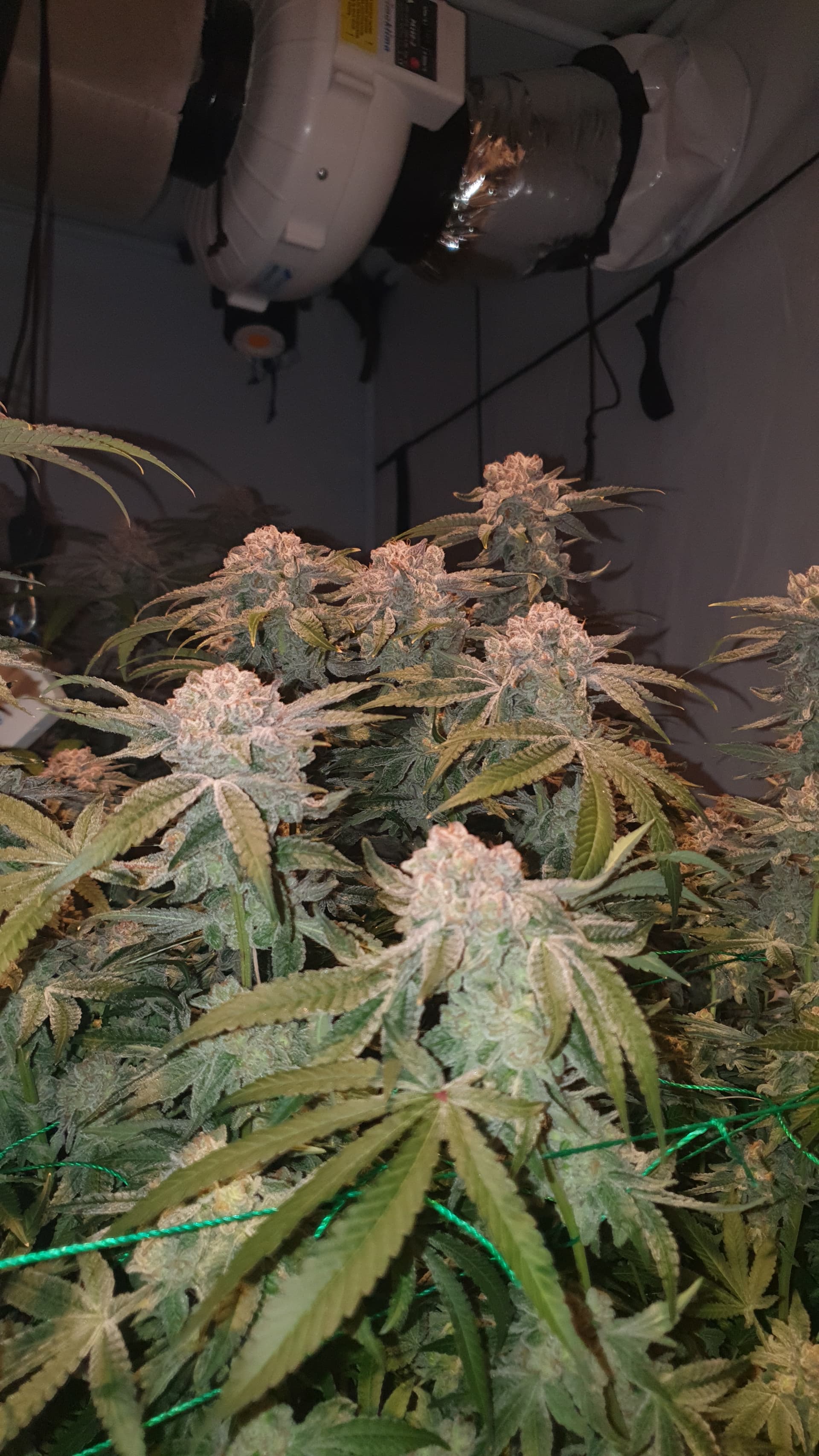Ich habe die letzen Tage unten rum viel entfernt und will höchstens die obersten 10-15 Cm an Blütenständen, sonst wird die ernte auch mehr als anstrengend. Den 50liter Tank für die Blumats habe ich auch mal mit 50ml Orgatrex vermischt und etwas weiter aufgedreht. Binnen 24 stunden war alles weg und im Behälter auch nichts verdickt oder verklumpt.