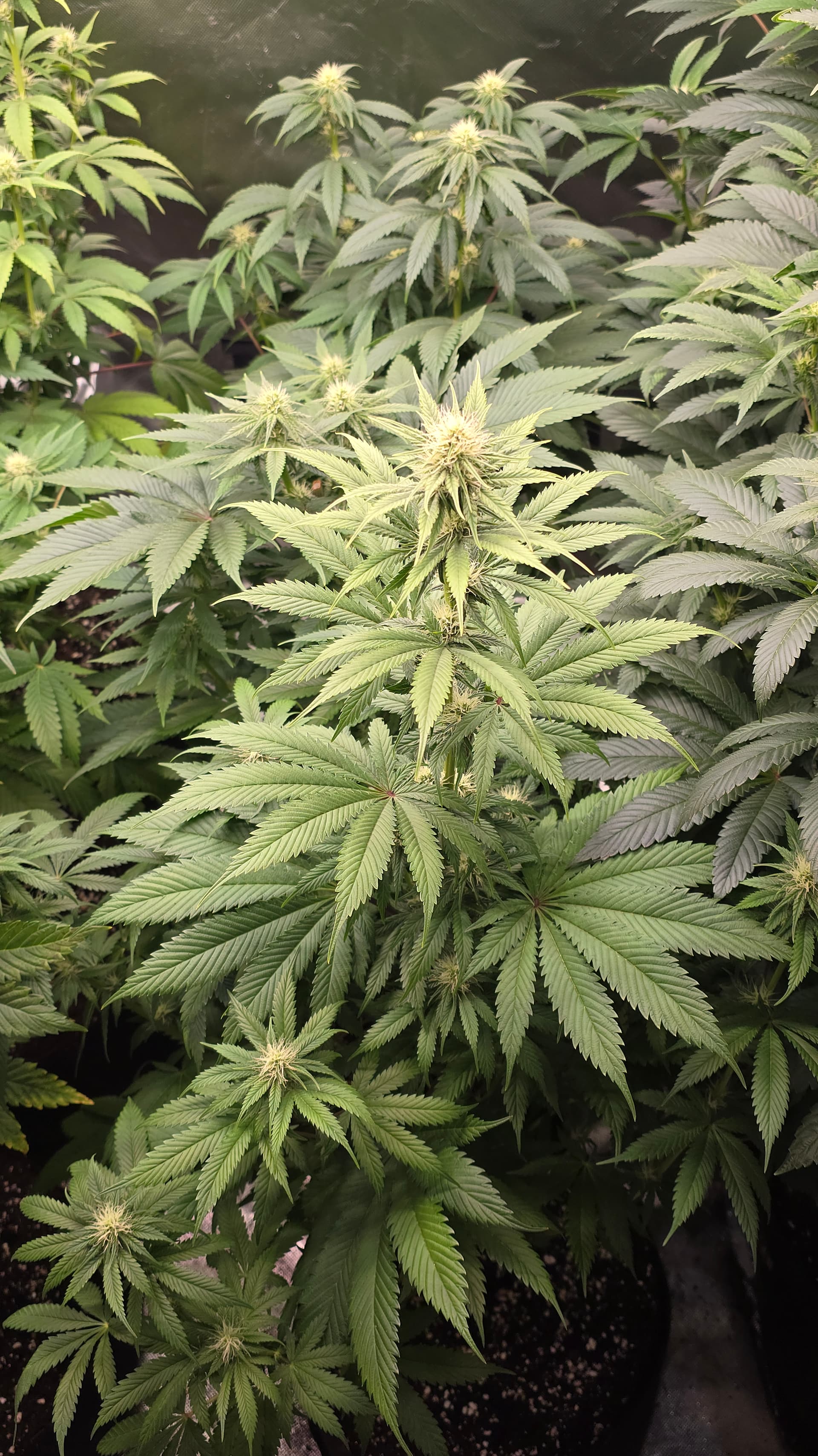 3 Pflanzen am Tag der Rythmus Änderung auf 12/12 umgetopft. Diese 3 Pflanzen haben ein super grün und reichlich Blütenansatz, da kommt sicher noch mehr. Allerdings auch den längsten Stretch. Im Gruppenbild ganz rechts.