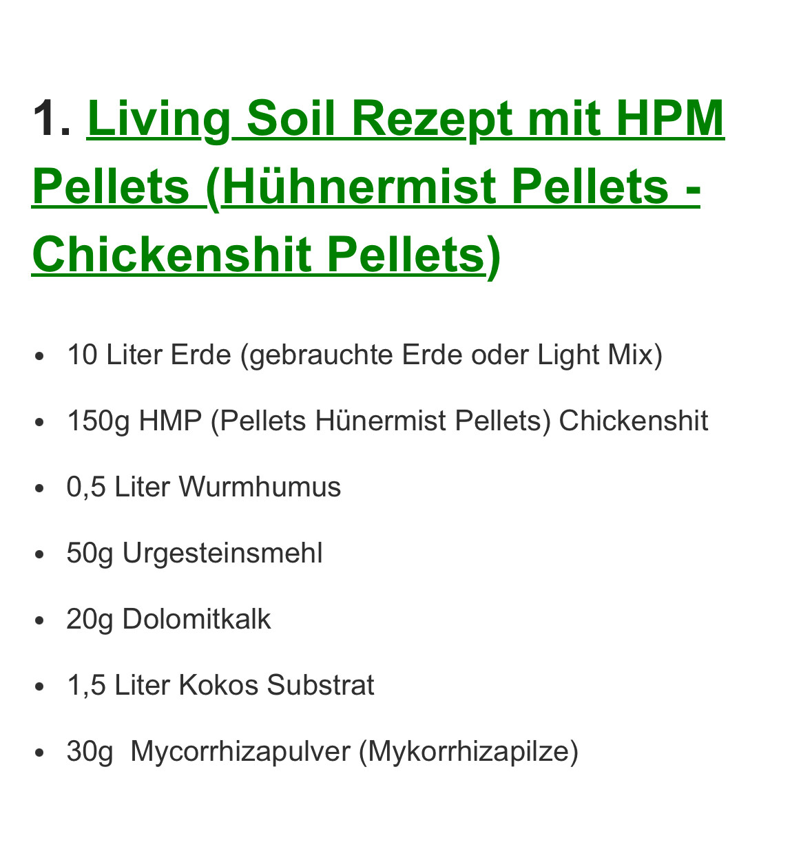 Diese Mischung bietet eine gut ausgewogene Nährstoffversorgung, fördert das Bodenleben und ist perfekt für den No-Till-Ansatz geeignet. Durch regelmäßige Zugabe von Komposttee, Wurmhumus und Mulchmaterial bleibt die Living Soil langfristig produktiv und gesund.