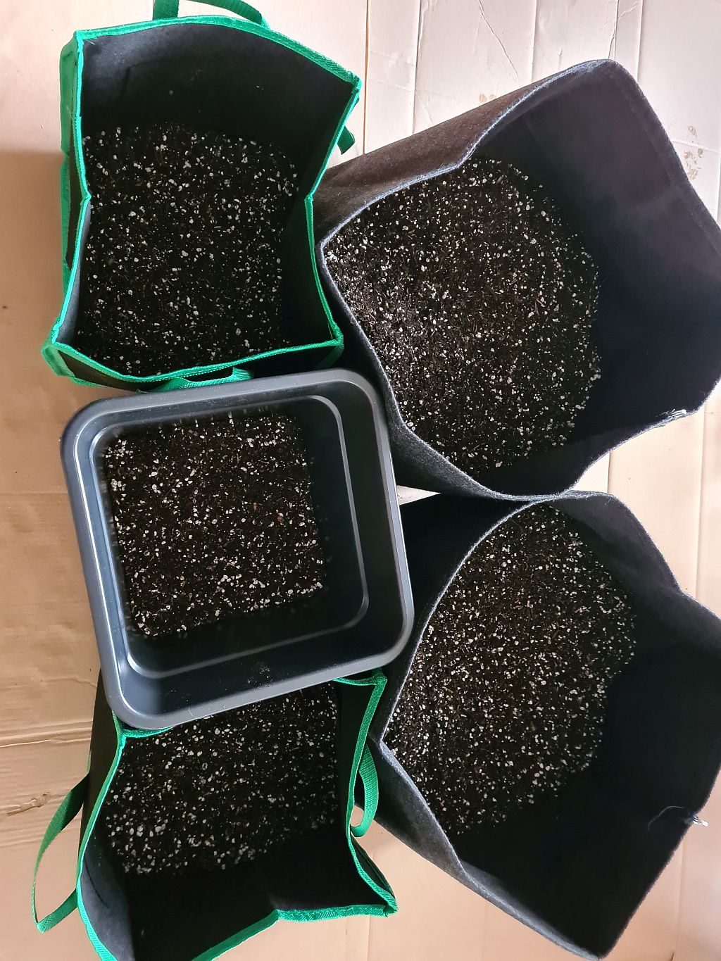 Dann habe ich die Pötte angefüllt, jetzt können die Würmli erstmal ihre Magie vorbereiten, bis die Pflanzen einziehen.