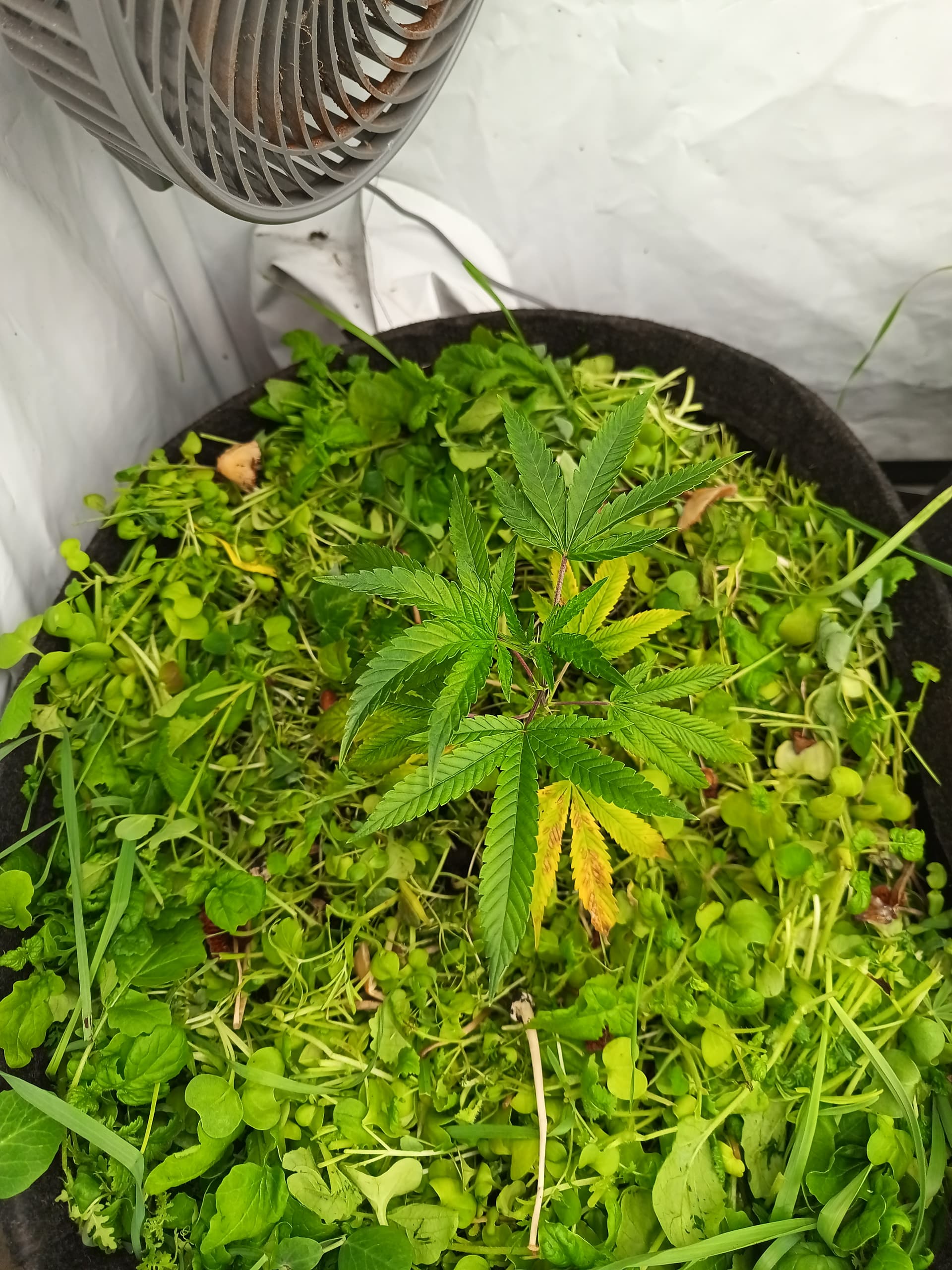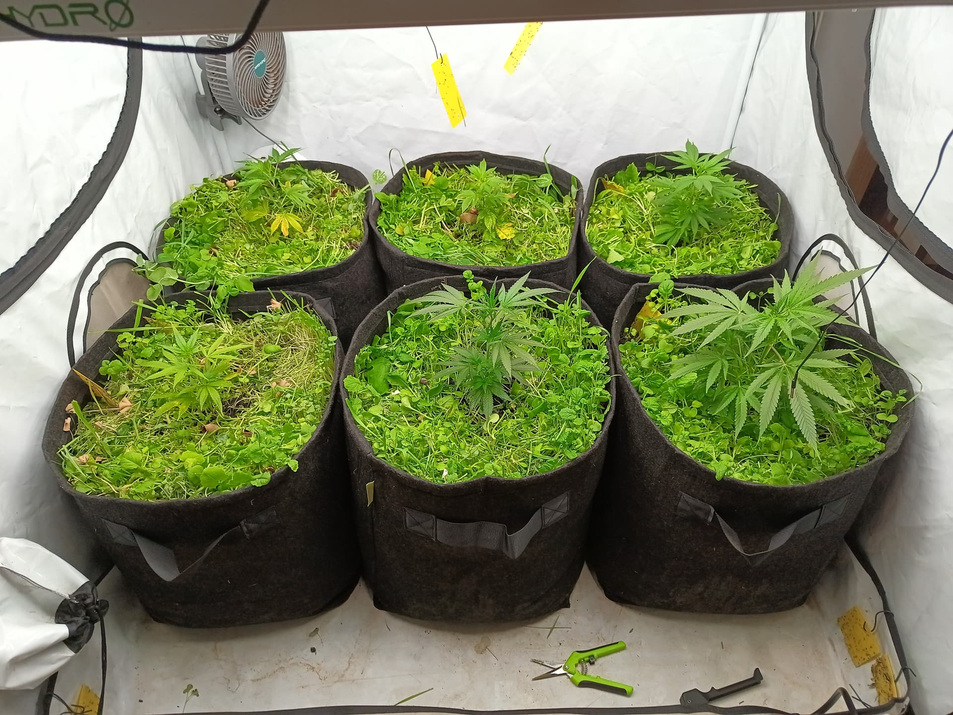 Habe die covercrop niedergemacht, ein paar äste runtergebogen, ein paar blätter abgeschnitten und eine Hand voll Luzerne draufgeschmissen.