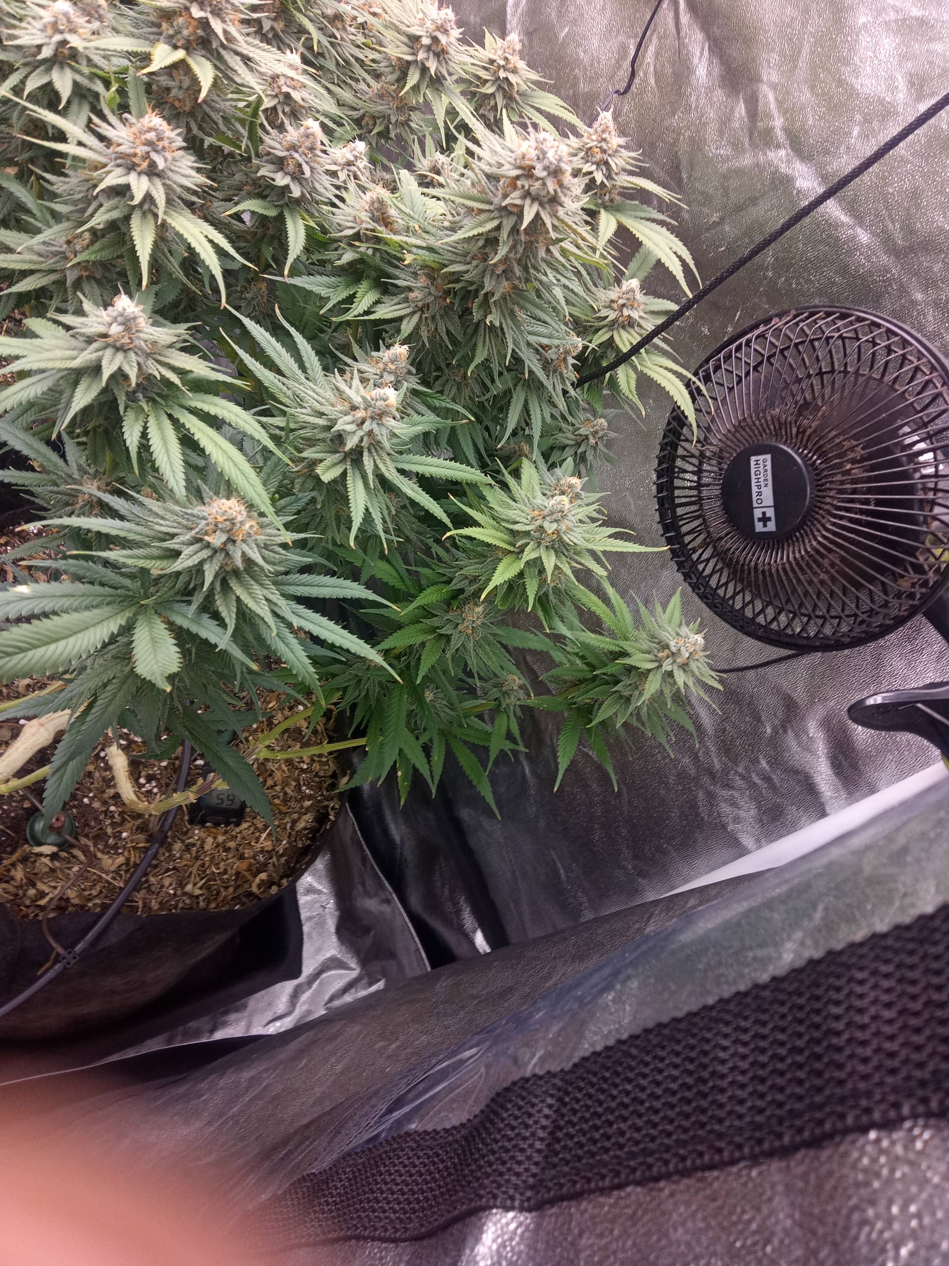 Jetzt nach genau 10 Tagen hab ich sie in die Blüte geschickt. Vorher hab ich sie schon Mal grob gelollipoppt. Das Zelt war zwischenzeitlich ein ganz schöner Urwald. Da musste die Schere dran. Trotzdem ist nach der Rasur immernoch die gesamte Fläche des Zelts vollständig ausgefüllt.