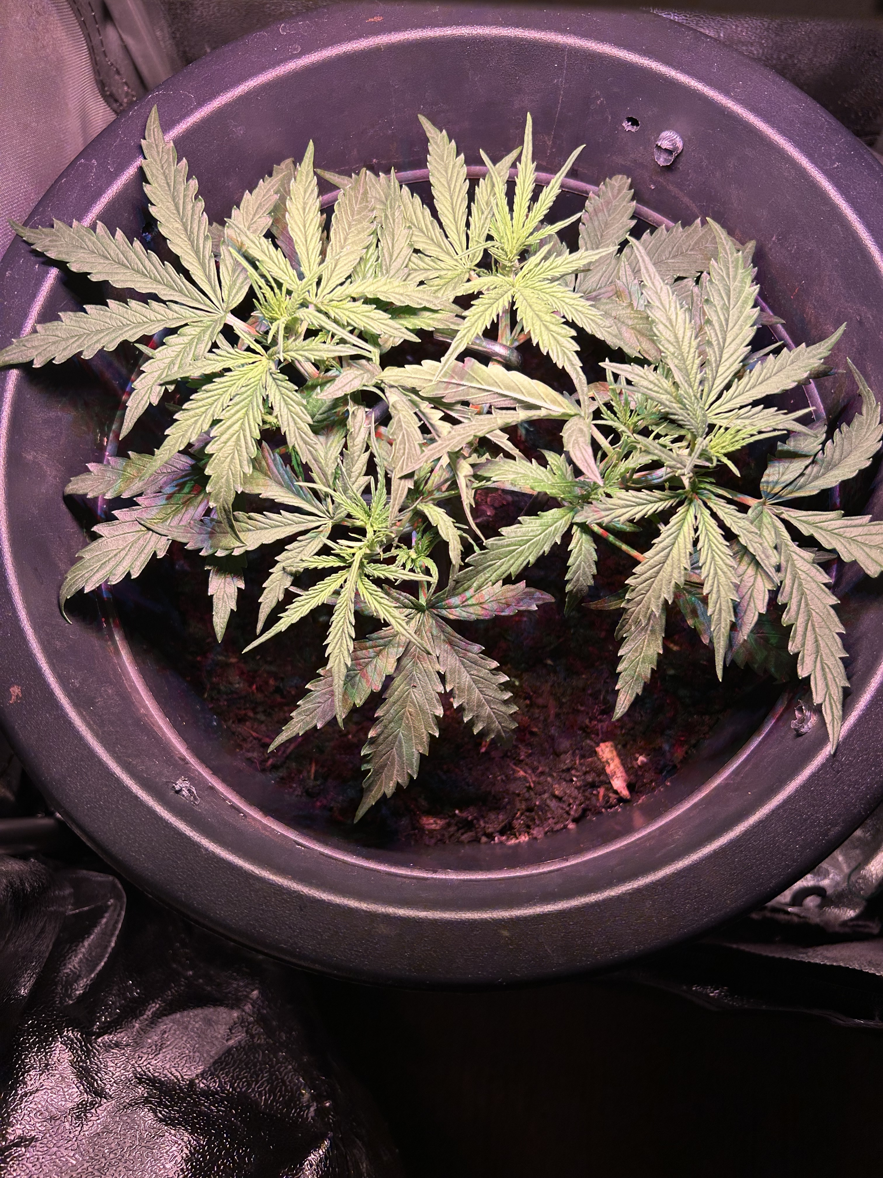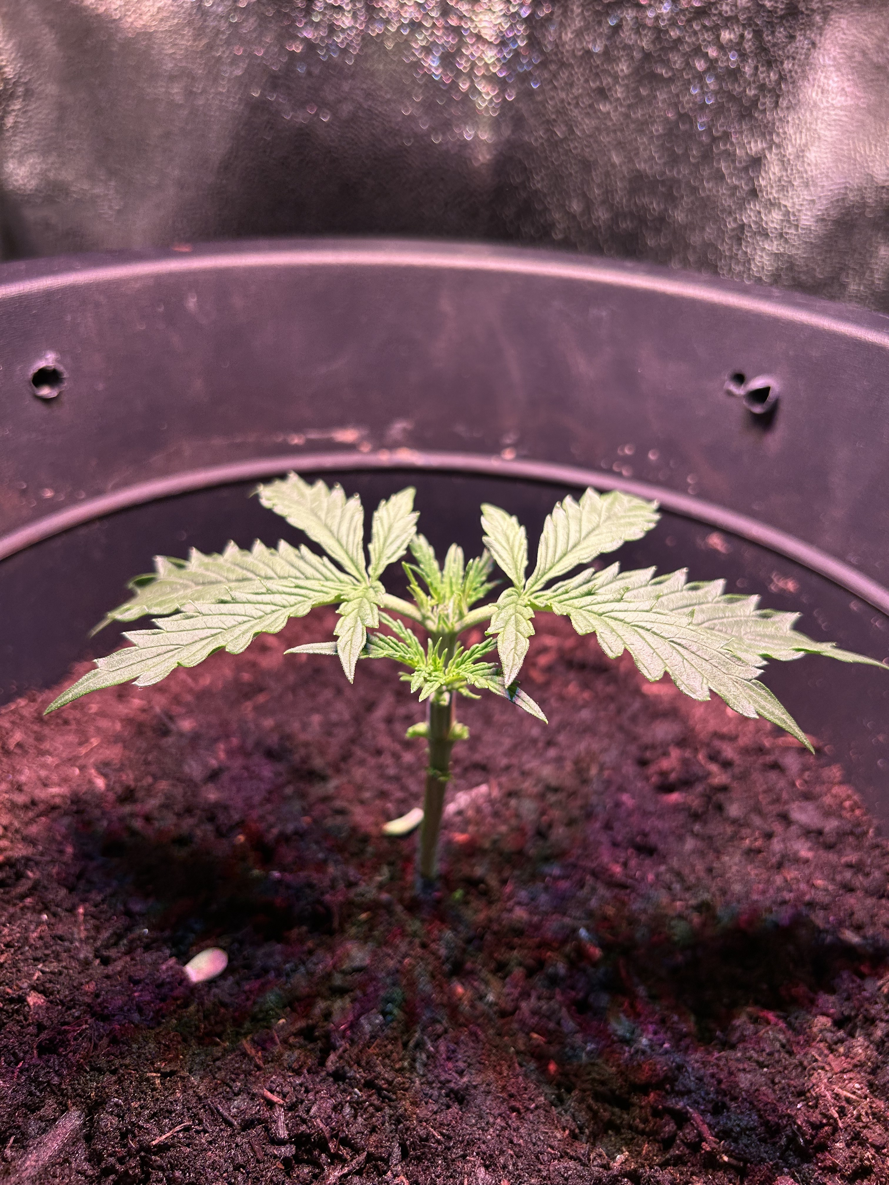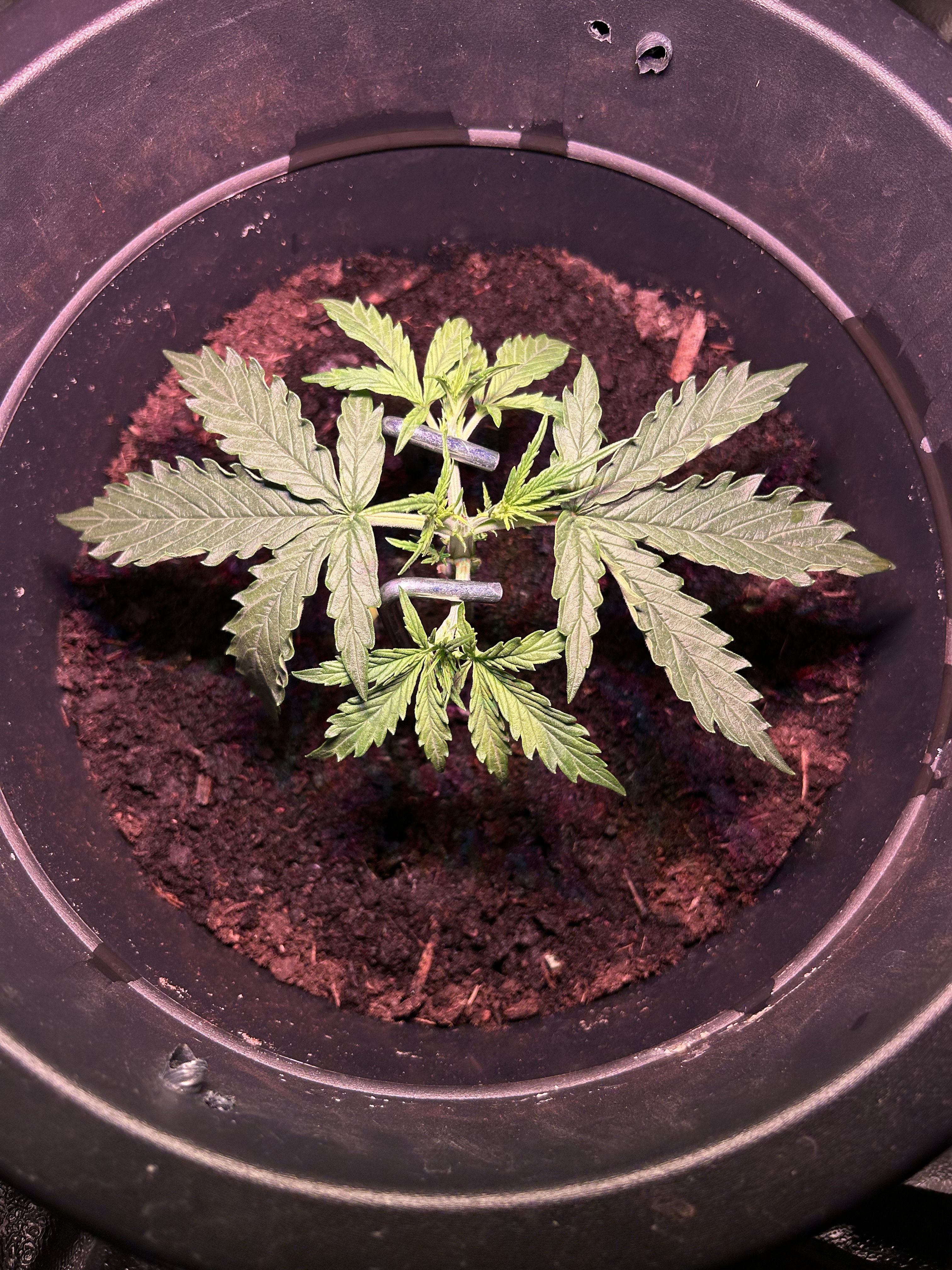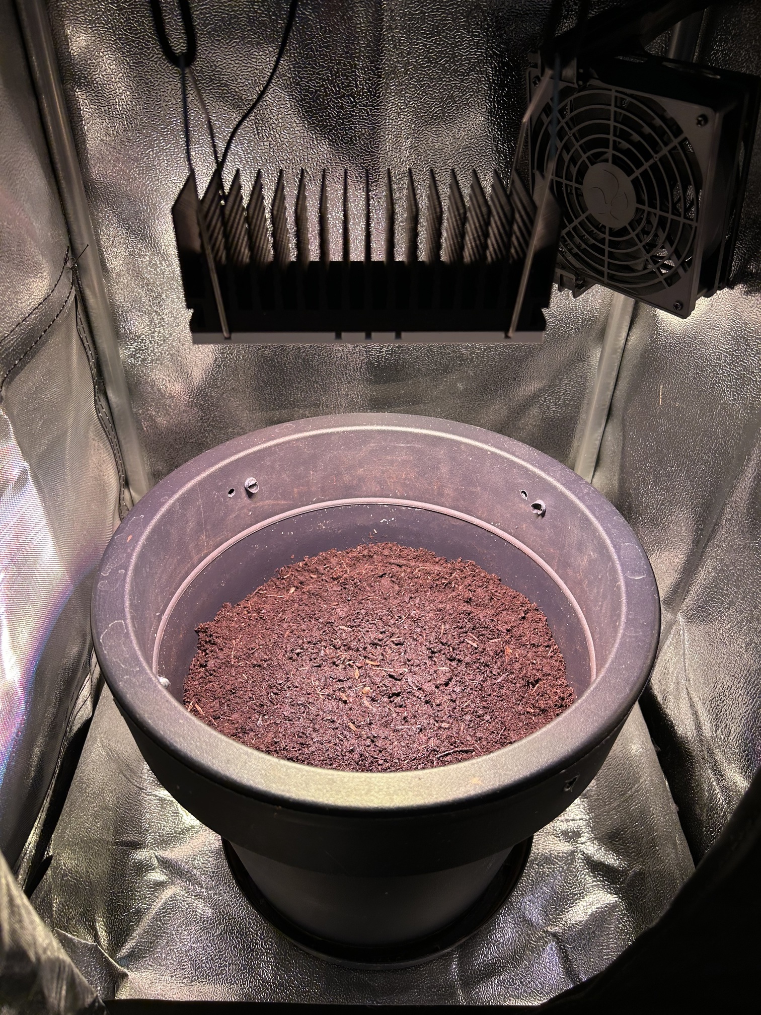 Diesmal werden nur 7,5 L Erde statt der üblichen 10 L genommen, da meine letzten beiden Pflanzen mit 10 L Erde und 30 Watt Lampenleistung zu weit nach oben gewachsen sind und zudem zu dünne Äste hatten. Ich hoffe das Höhenproblem mit der reduzierten Erdmenge etwas besser in den Griff zu bekommen. Natürlich schmälert die verminderte Menge an Erde mein Erwartung, was den Ertrag angeht, wodurch ich mit trockenen 20-30 g Blüten vollstens zufrieden wäre. Dass die geringe Lampenleistung das Spargeln begünstigt, ist mir bewusst, aber es soll vorerst bei dem geringen Vebrauch bleiben und deshalb der Versuch mit der Erde.