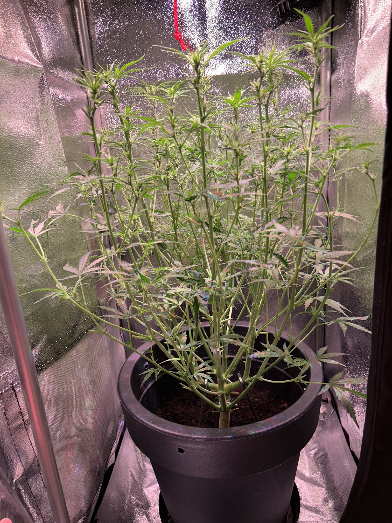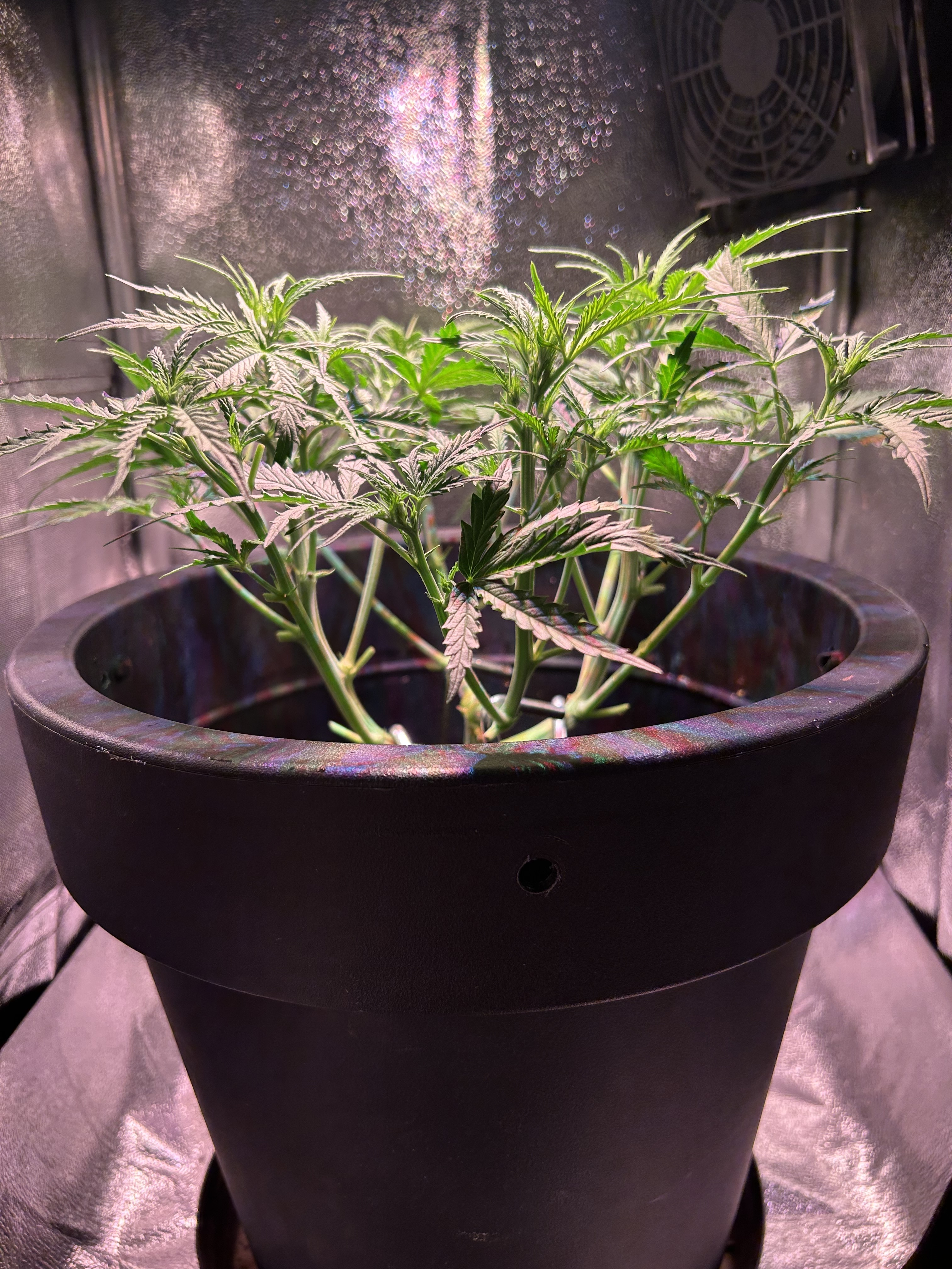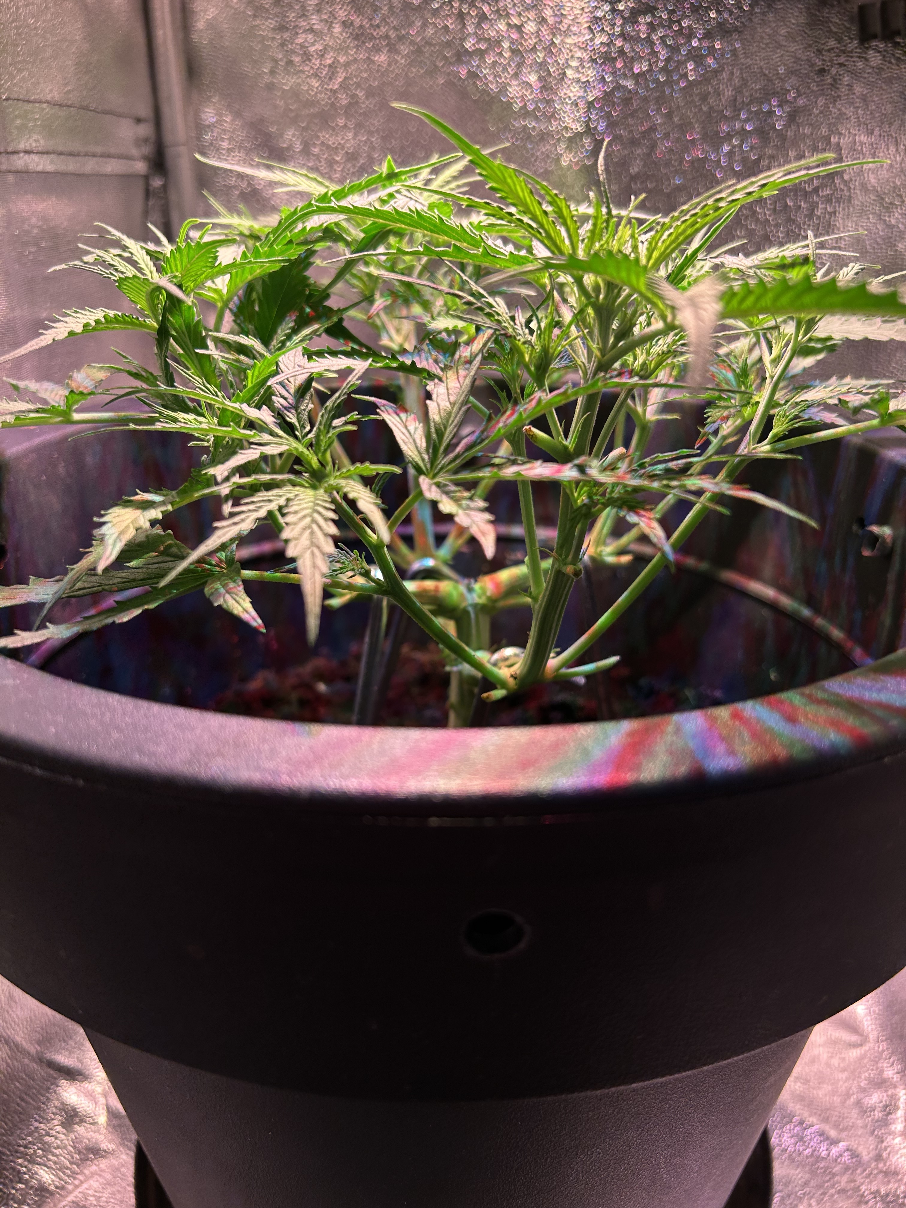 Diesmal werden nur 7,5 L Erde statt der üblichen 10 L genommen, da meine letzten beiden Pflanzen mit 10 L Erde und 30 Watt Lampenleistung zu weit nach oben gewachsen sind und zudem zu dünne Äste hatten. Ich hoffe das Höhenproblem mit der reduzierten Erdmenge etwas besser in den Griff zu bekommen. Natürlich schmälert die verminderte Menge an Erde mein Erwartung, was den Ertrag angeht, wodurch ich mit trockenen 20-30 g Blüten vollstens zufrieden wäre. Dass die geringe Lampenleistung das Spargeln begünstigt, ist mir bewusst, aber es soll vorerst bei dem geringen Vebrauch bleiben und deshalb der Versuch mit der Erde.