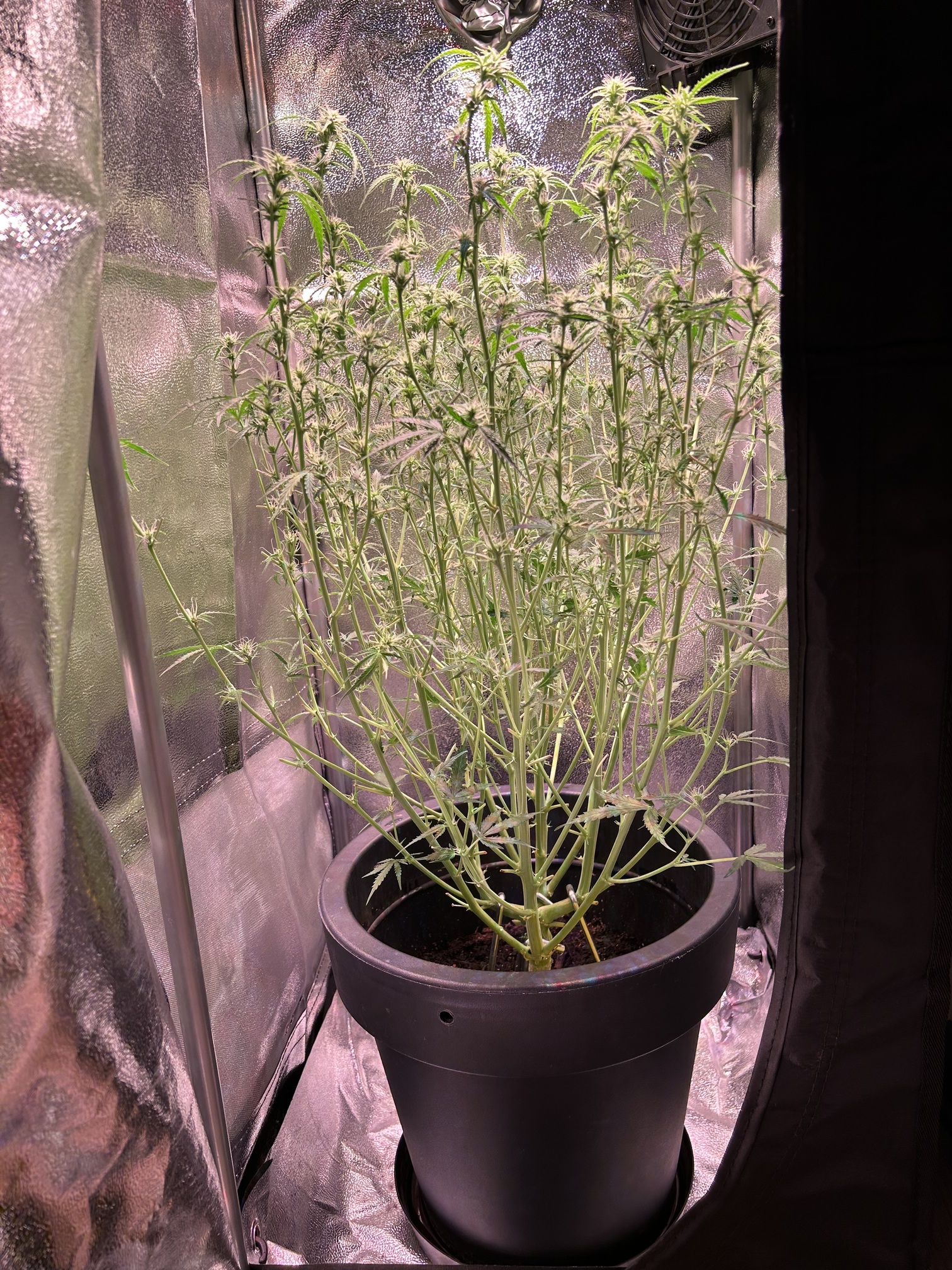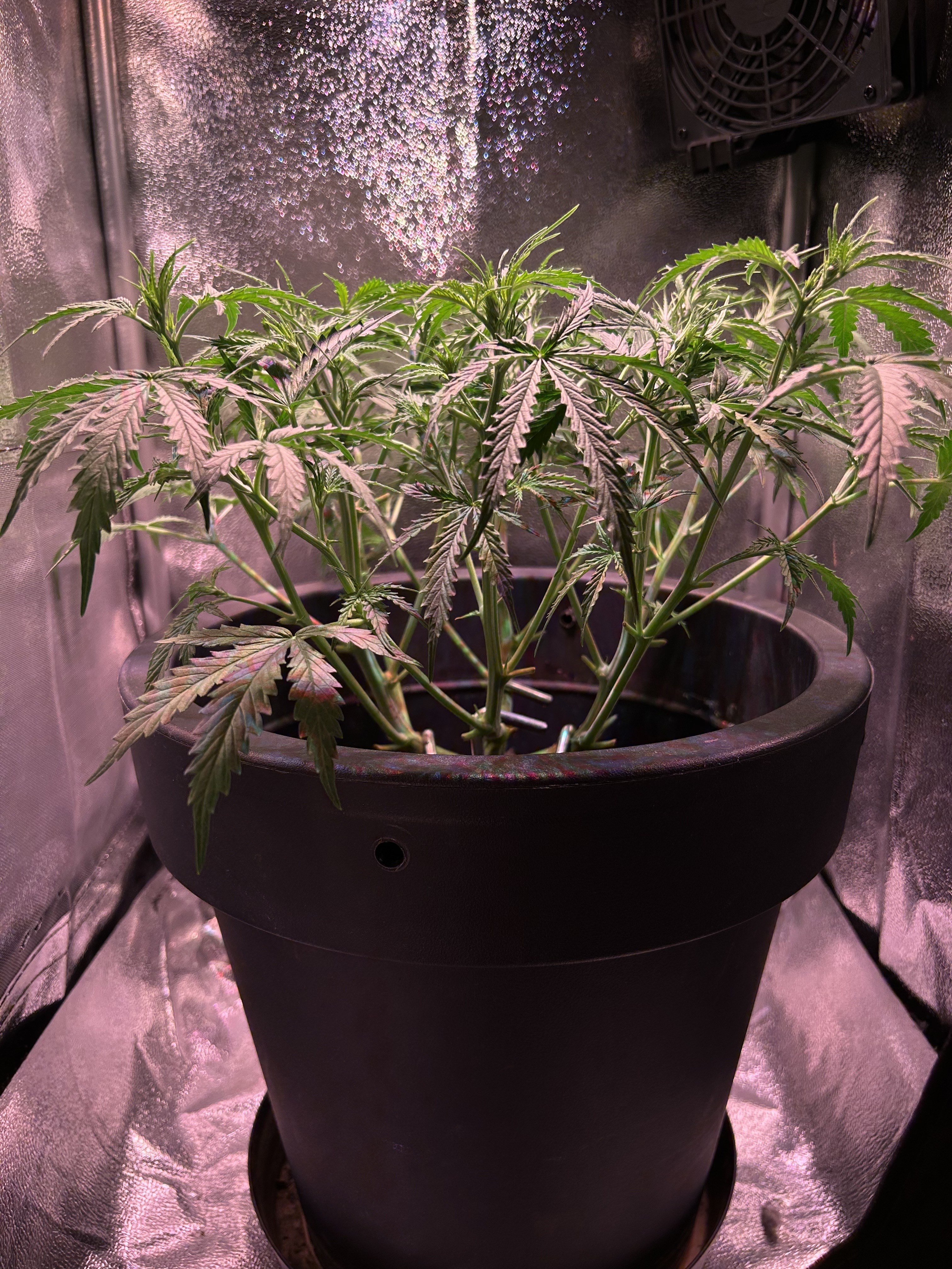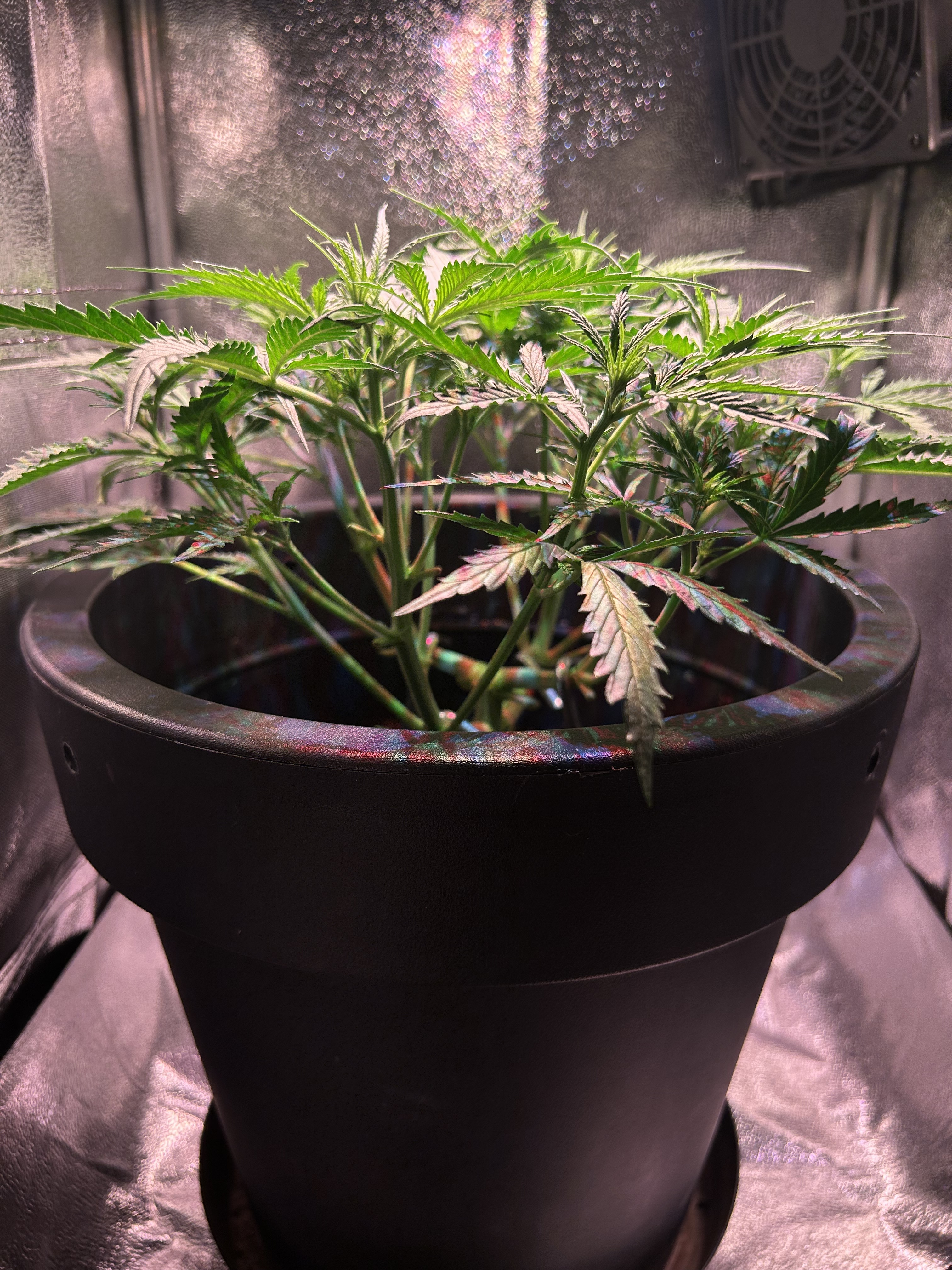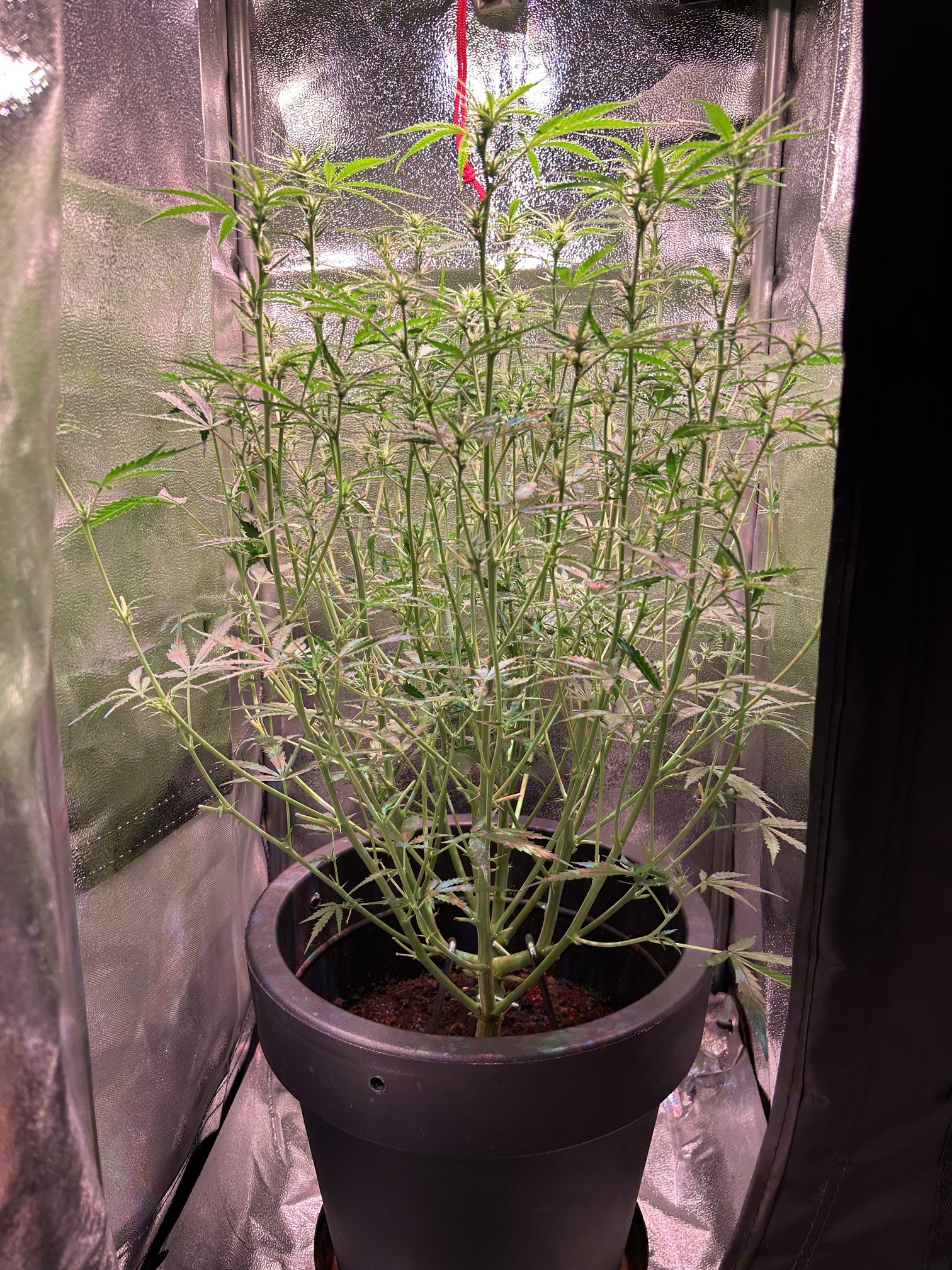 Diesmal werden nur 7,5 L Erde statt der üblichen 10 L genommen, da meine letzten beiden Pflanzen mit 10 L Erde und 30 Watt Lampenleistung zu weit nach oben gewachsen sind und zudem zu dünne Äste hatten. Ich hoffe das Höhenproblem mit der reduzierten Erdmenge etwas besser in den Griff zu bekommen. Natürlich schmälert die verminderte Menge an Erde mein Erwartung, was den Ertrag angeht, wodurch ich mit trockenen 20-30 g Blüten vollstens zufrieden wäre. Dass die geringe Lampenleistung das Spargeln begünstigt, ist mir bewusst, aber es soll vorerst bei dem geringen Vebrauch bleiben und deshalb der Versuch mit der Erde.