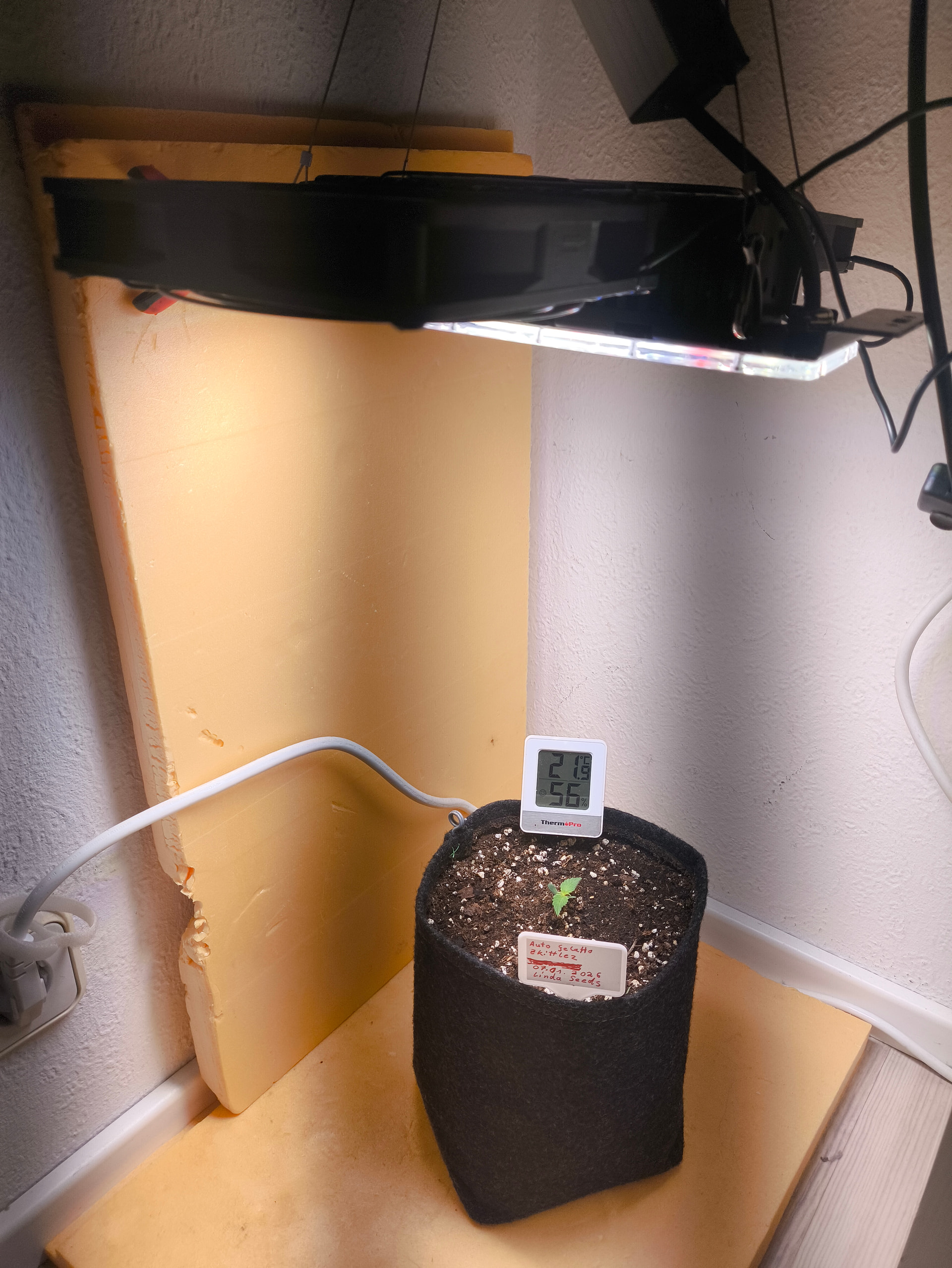 Ich lasse die jetzt noch einen Tag unter der Tasche und dann geht es ab in die Ecke. Da die Ecke eine Außenwand hat habe ich dort noch Styropor ins Eck und auf den Boden gelegt. Sieht nicht schön aus aber die Lady soll ja wenigstens keine kalten Füße bekommen wenn sie schon nicht ins Zelt darf. Eventuell bekommt sie ja Gesellschaft wenn der 2te Seed auch noch kommt aber das entscheide ich noch.
