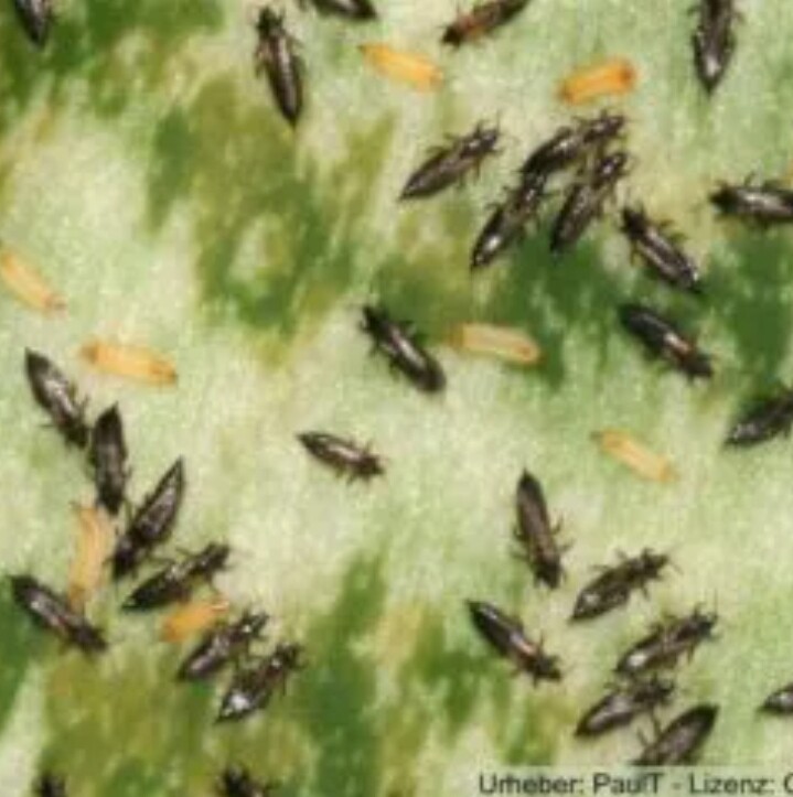 Chemie wäre in der Blüte tatsächlich blöd. Ich würde es eventuell mit Blautafeln als Klebefalle für die erwachsenen Viecher versuchen, da können die zumindest keinen Nachwuchs mehr erzeugen