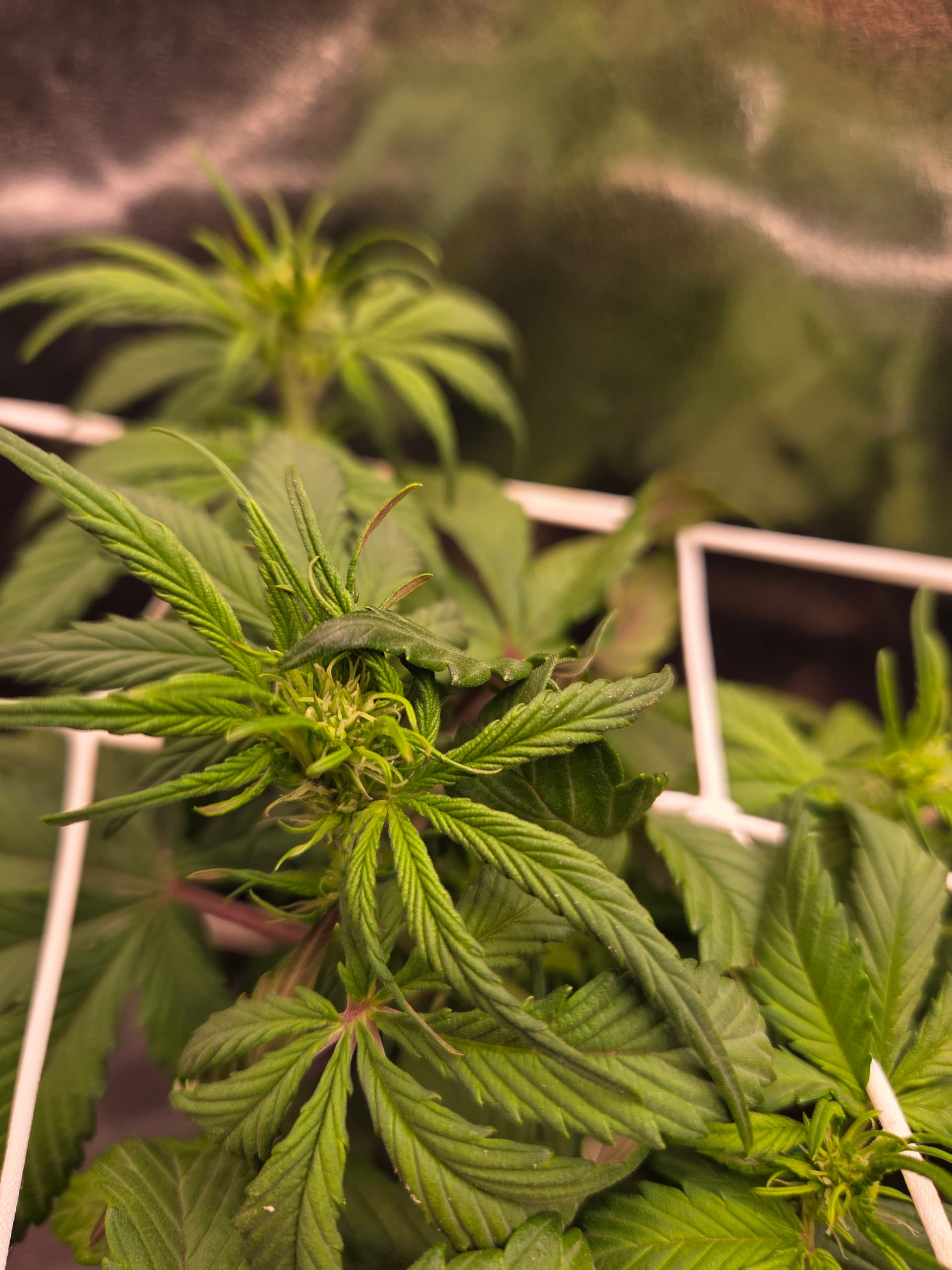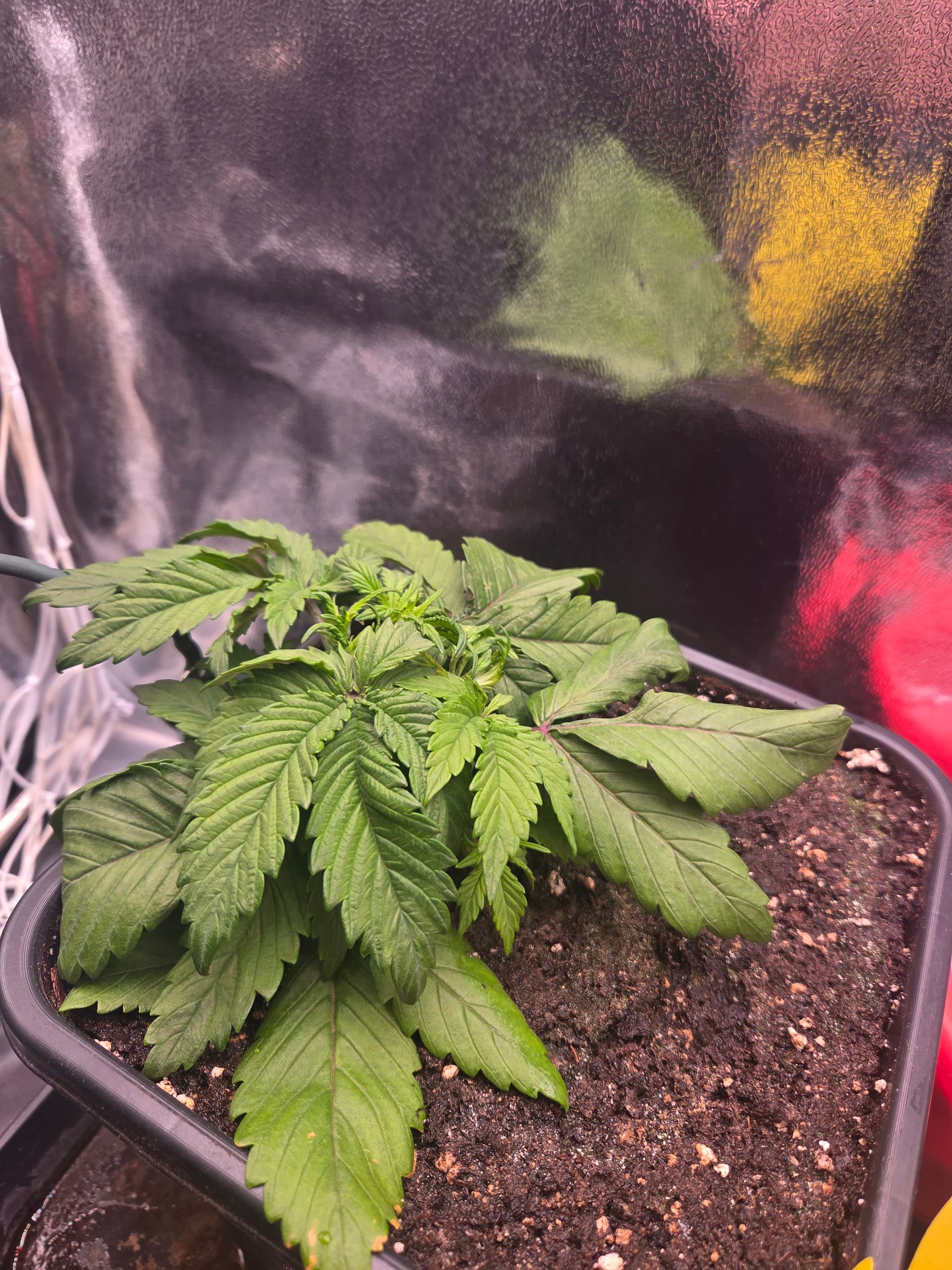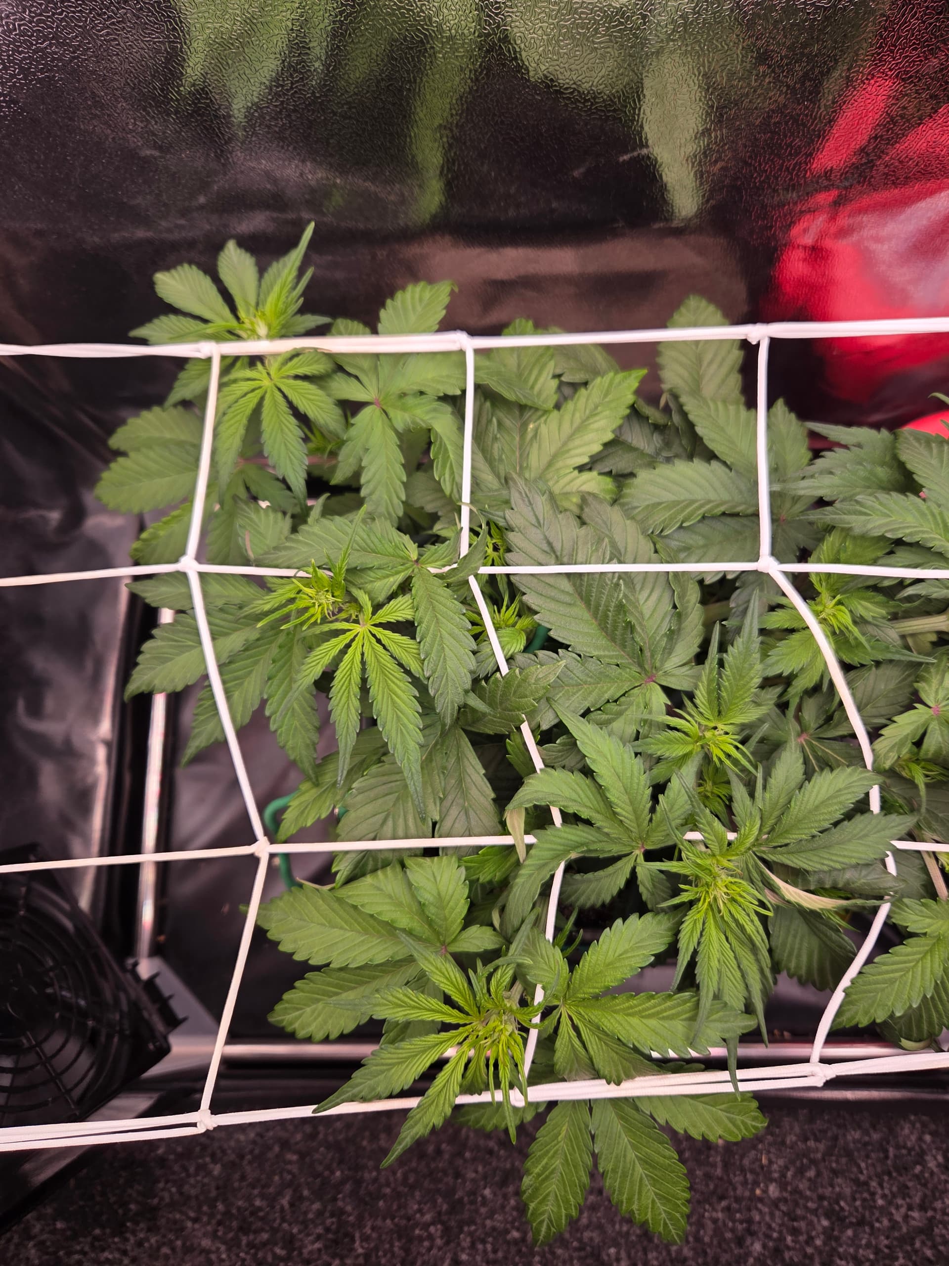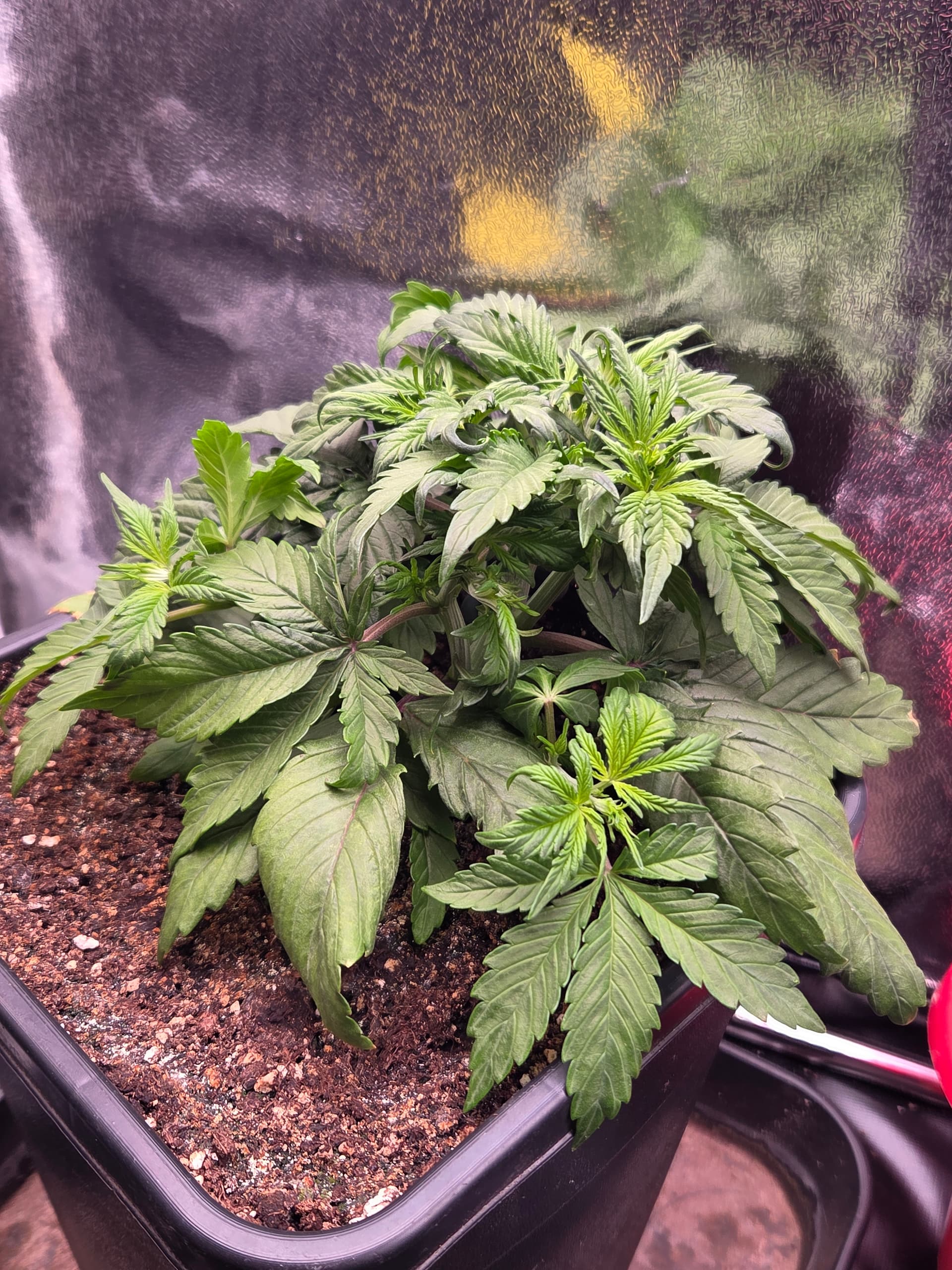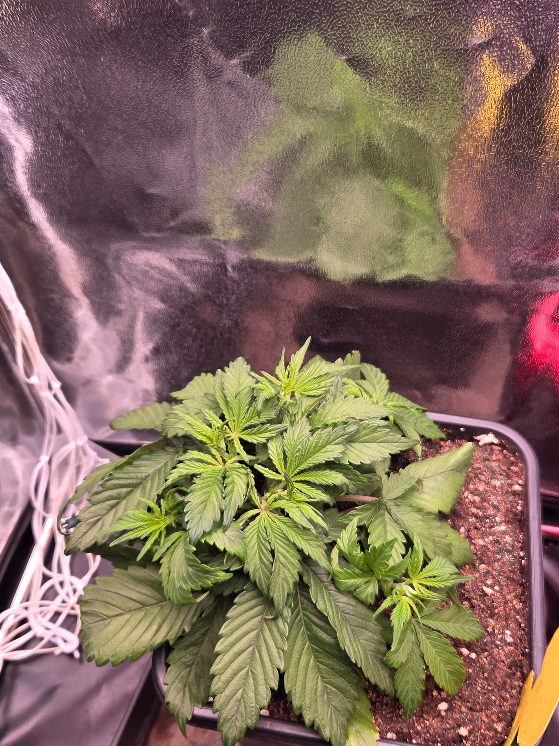 Ich hatte bisher noch nie 5 Finger BlĂ€tter bereits beim zweiten Blattpaar. Ansonsten keine weiteren AuffĂ€lligkeiten. BezĂŒglich des Toppens bin ich noch unschlĂŒssig, ggf. wird nur LST und das Netz angewendet.