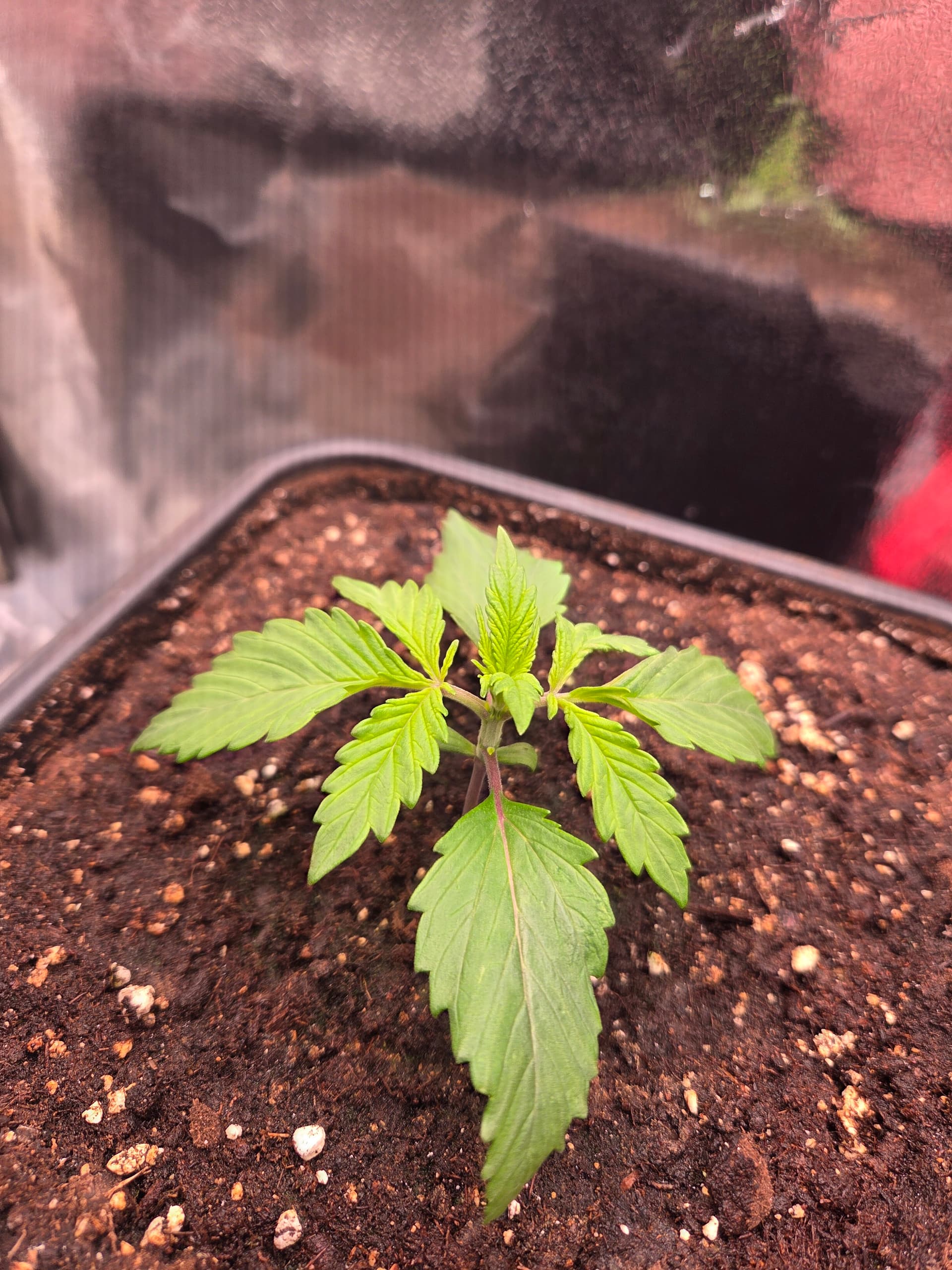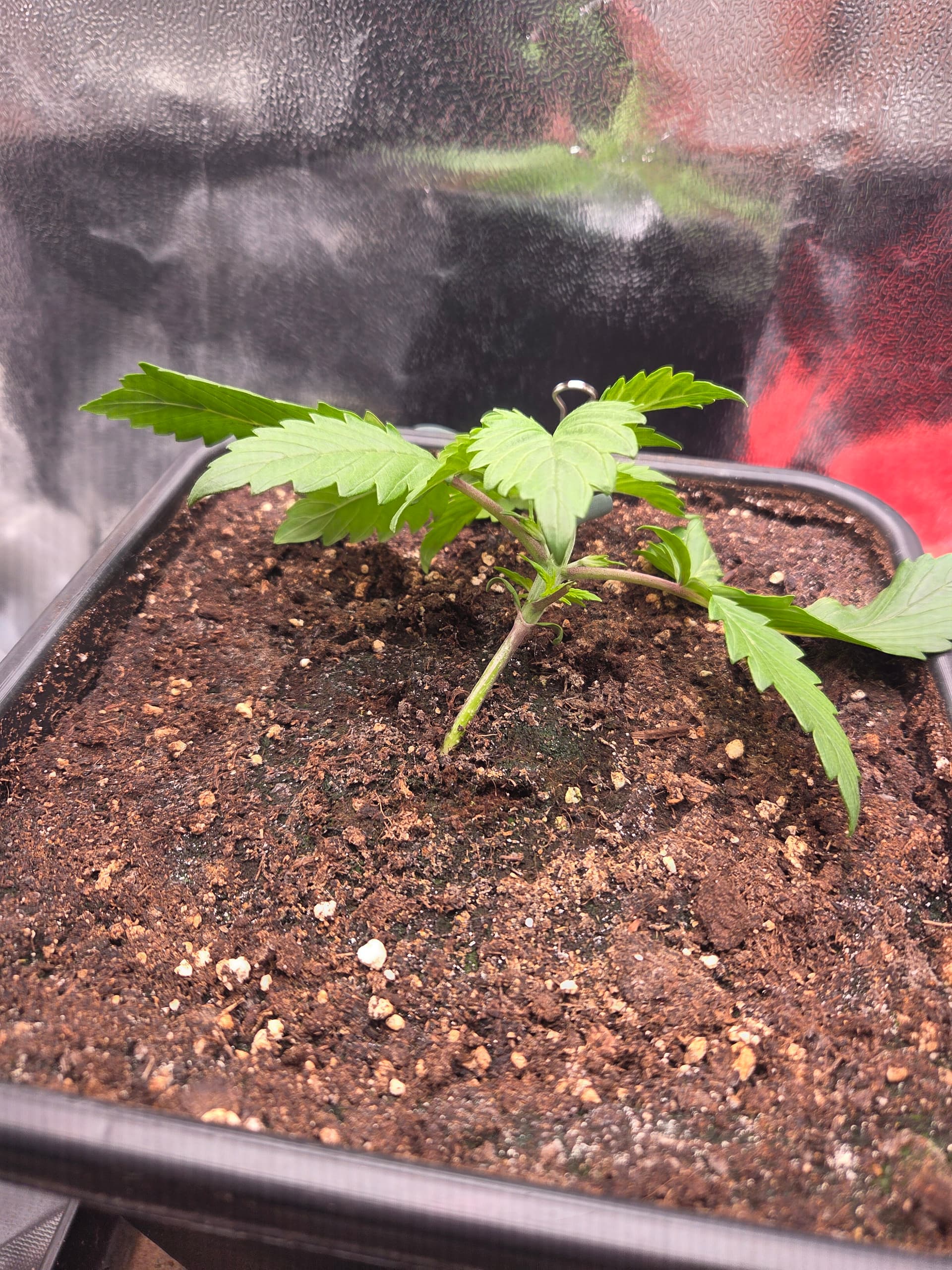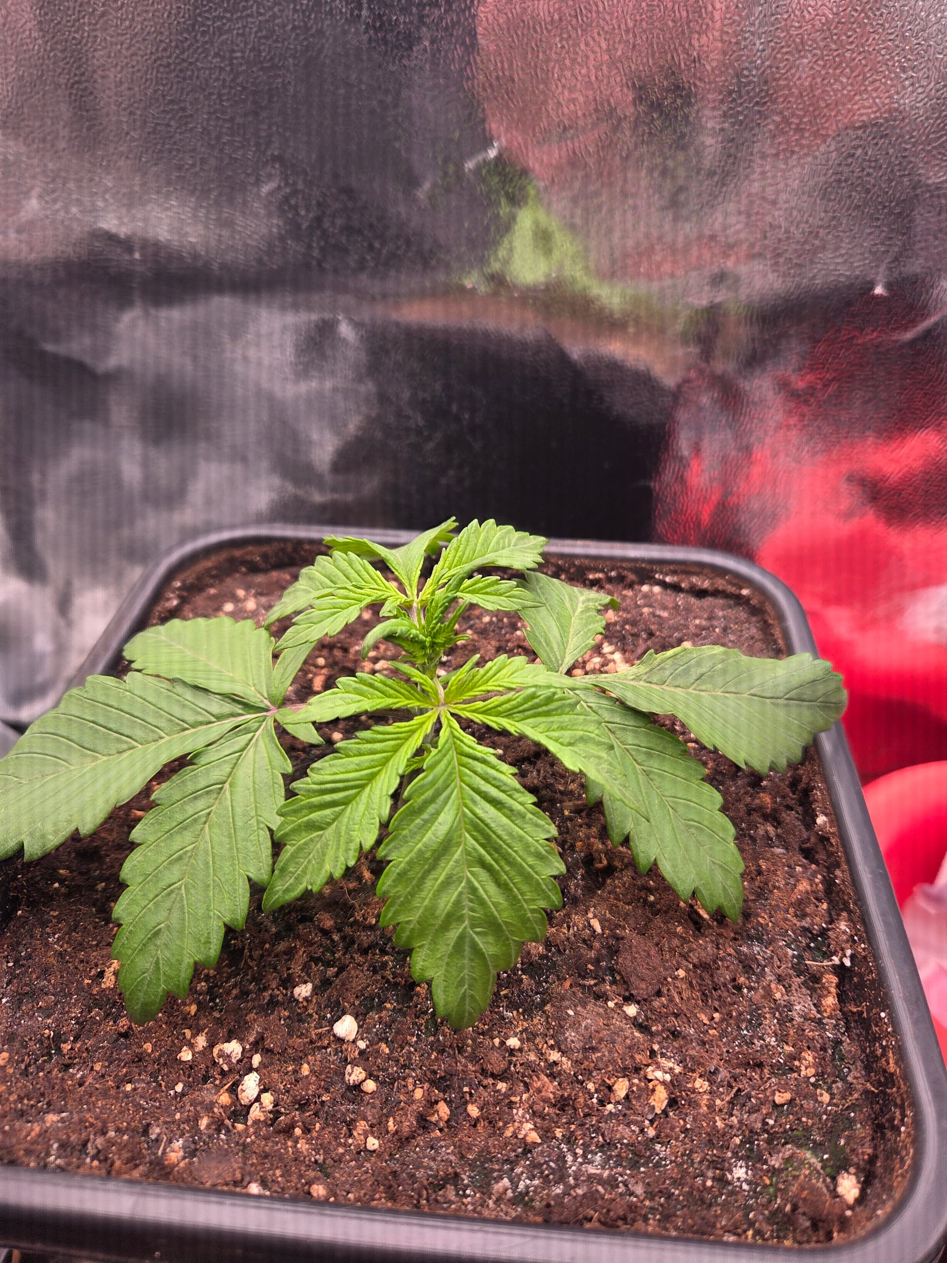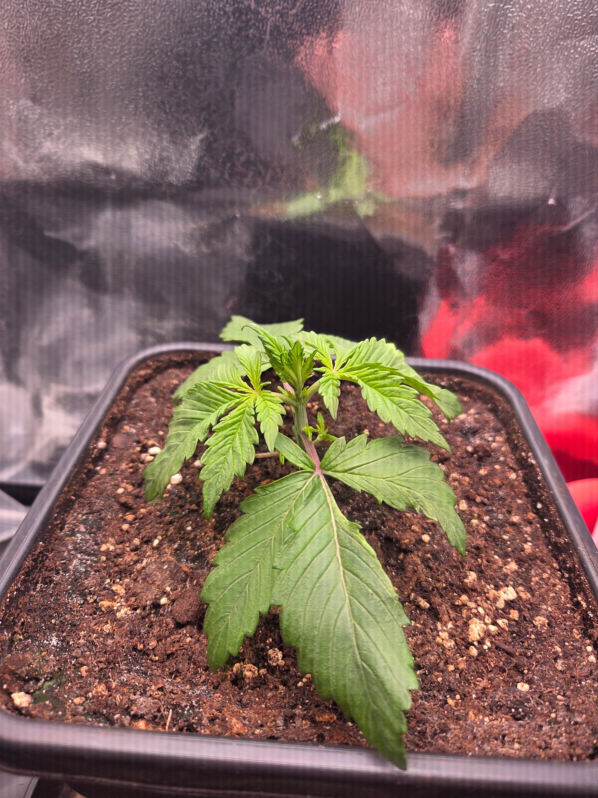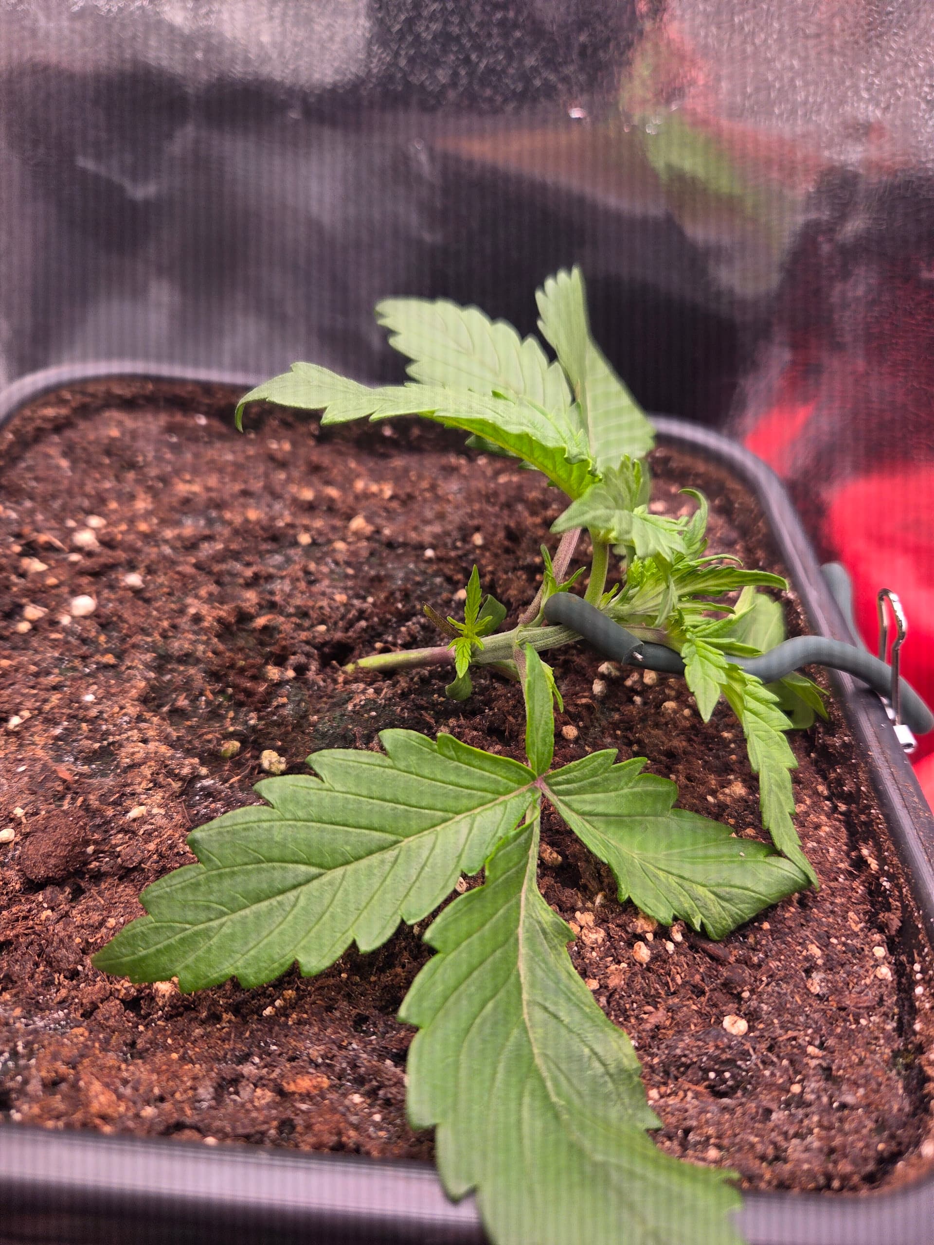 Ich hatte bisher noch nie 5 Finger BlĂ€tter bereits beim zweiten Blattpaar. Ansonsten keine weiteren AuffĂ€lligkeiten. BezĂŒglich des Toppens bin ich noch unschlĂŒssig, ggf. wird nur LST und das Netz angewendet.