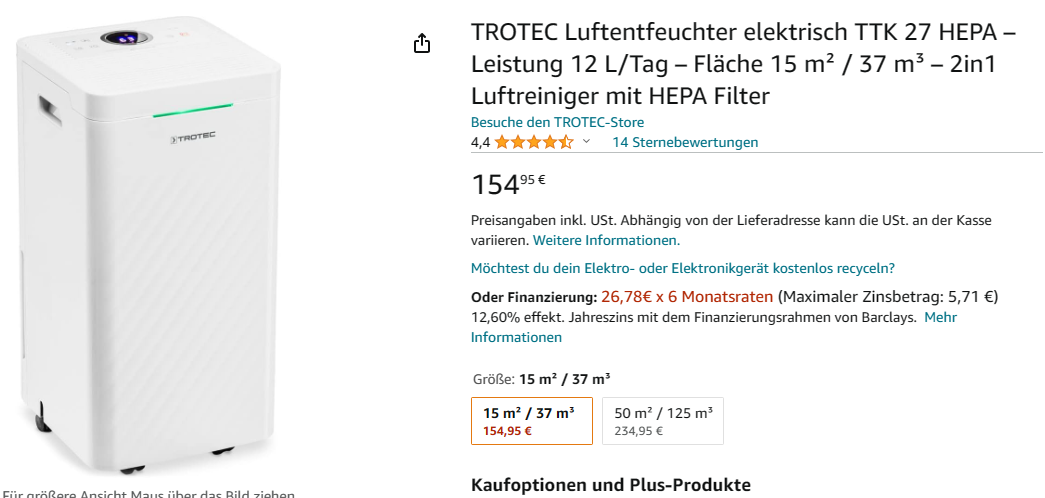 hier würde der entfeuchter wenigstens vernüftig arbeiten, und durch die umluft ventis hat man auch einige minuten bis die luft getauscht ist.