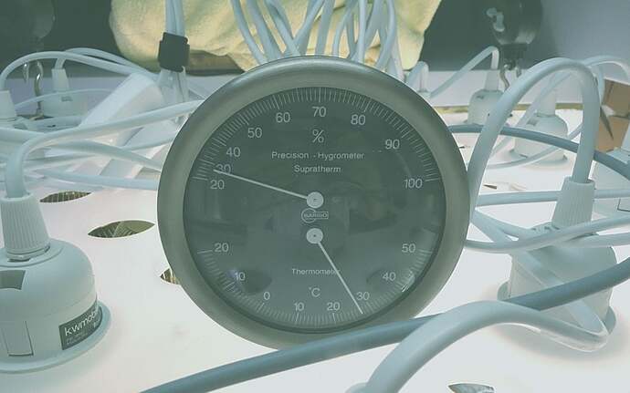 Für die Kontrolle in der Growbox empfehle ich zwei oder drei zuverlässige TFA Dostmann Moxx Kombigeräte. Es hat für ein digitales Modell eine sehr gute Messgenauigkeit. Dennoch sollte man es alle paar Wochen kalibrieren.