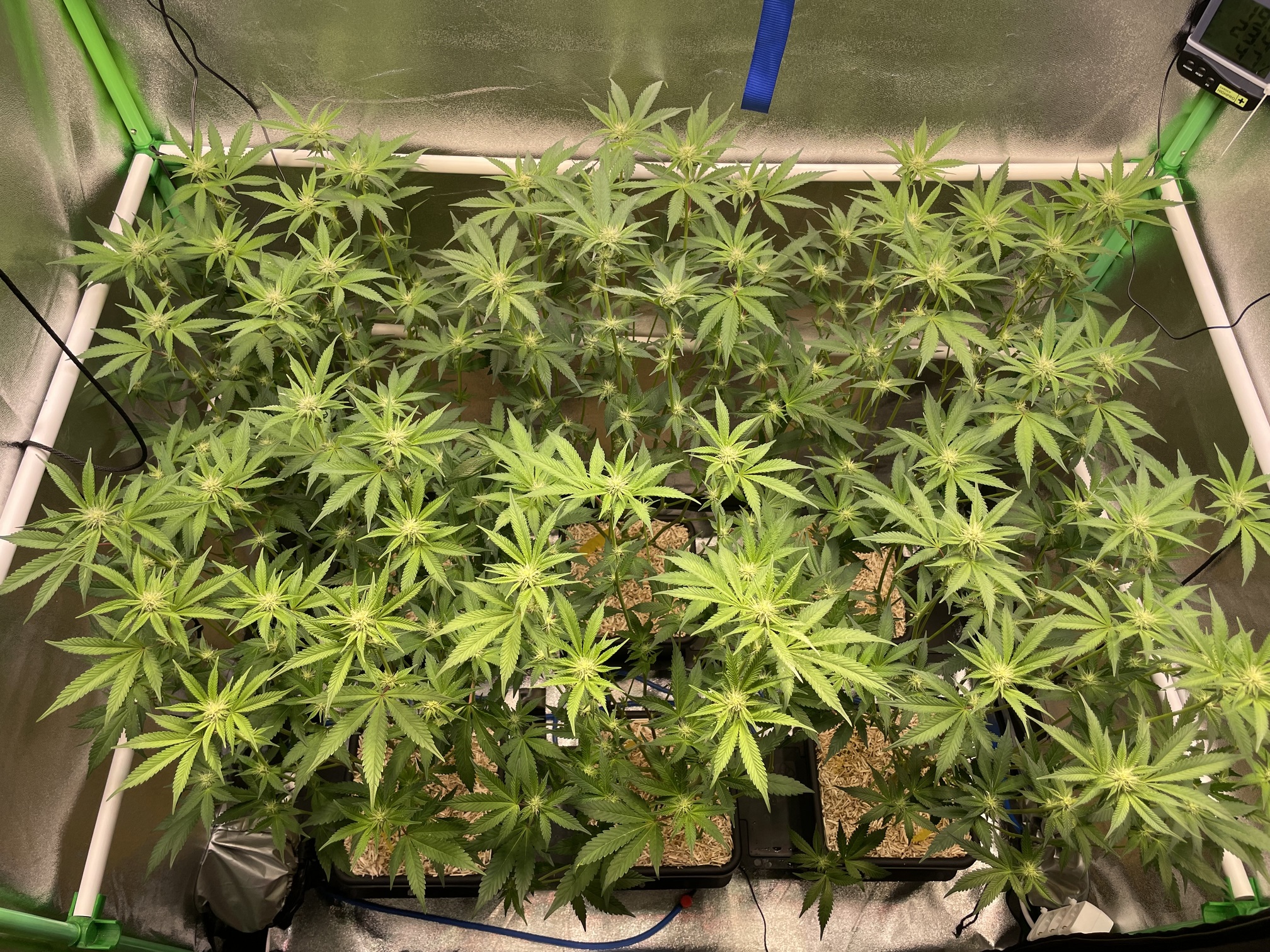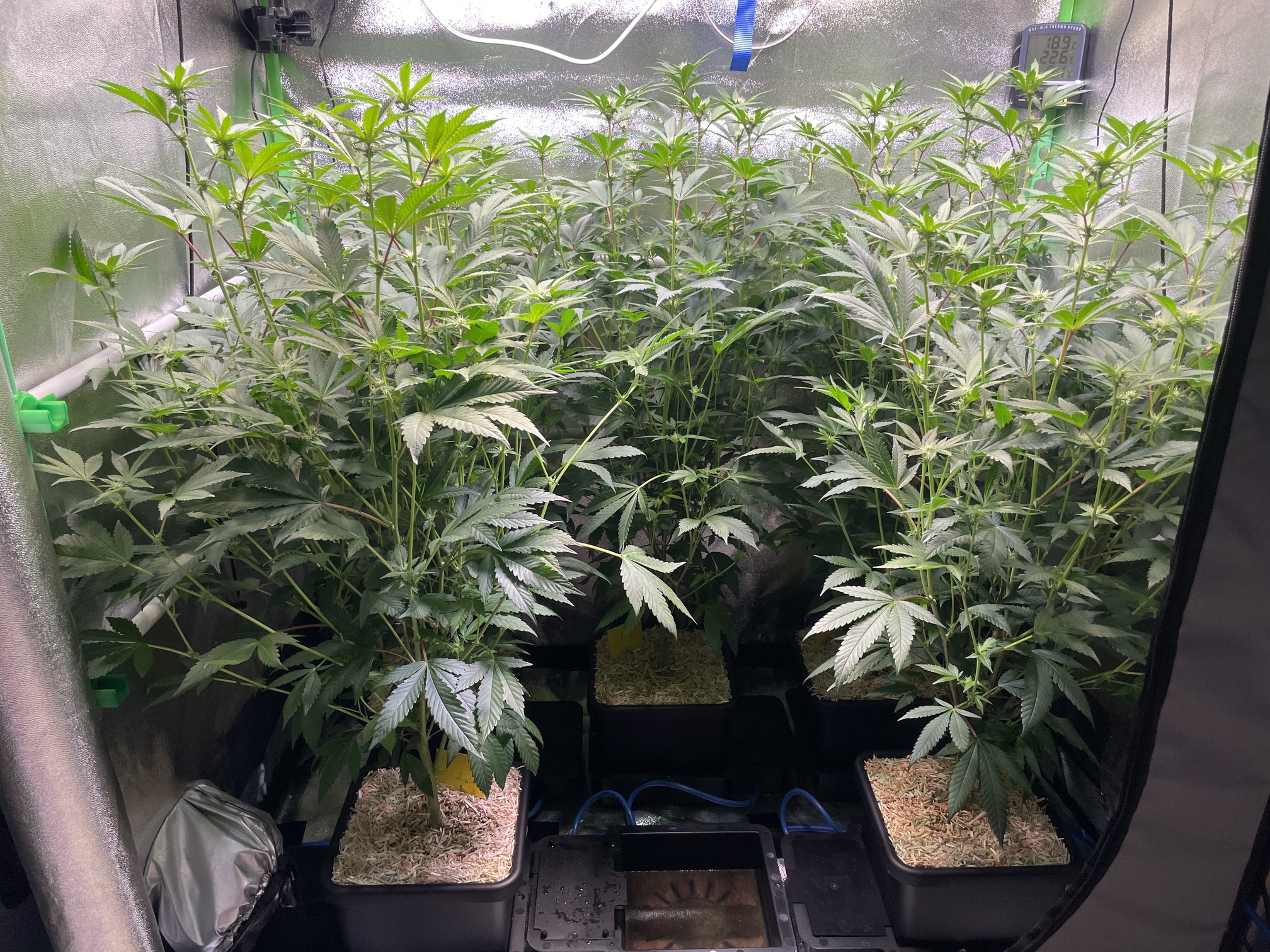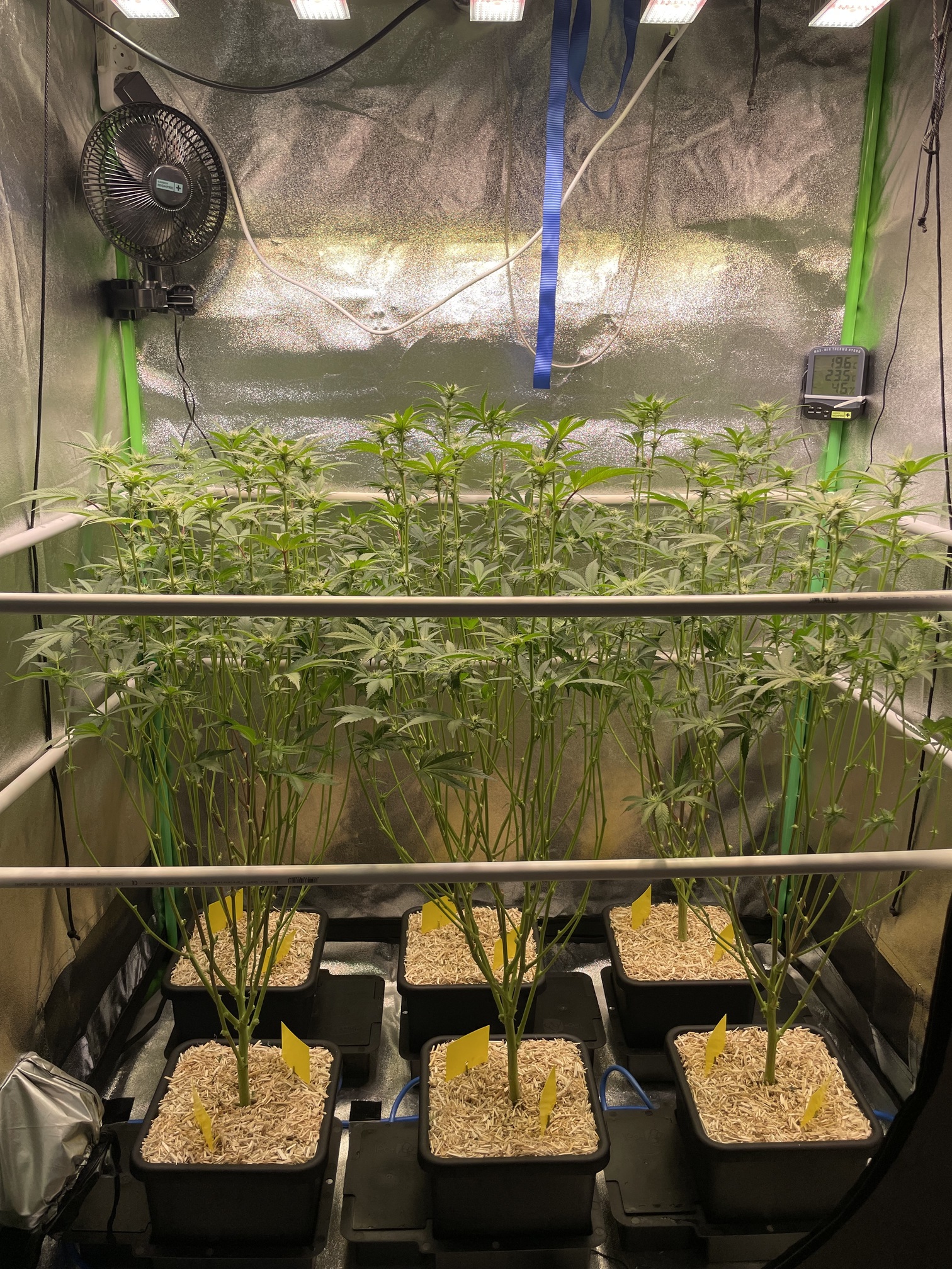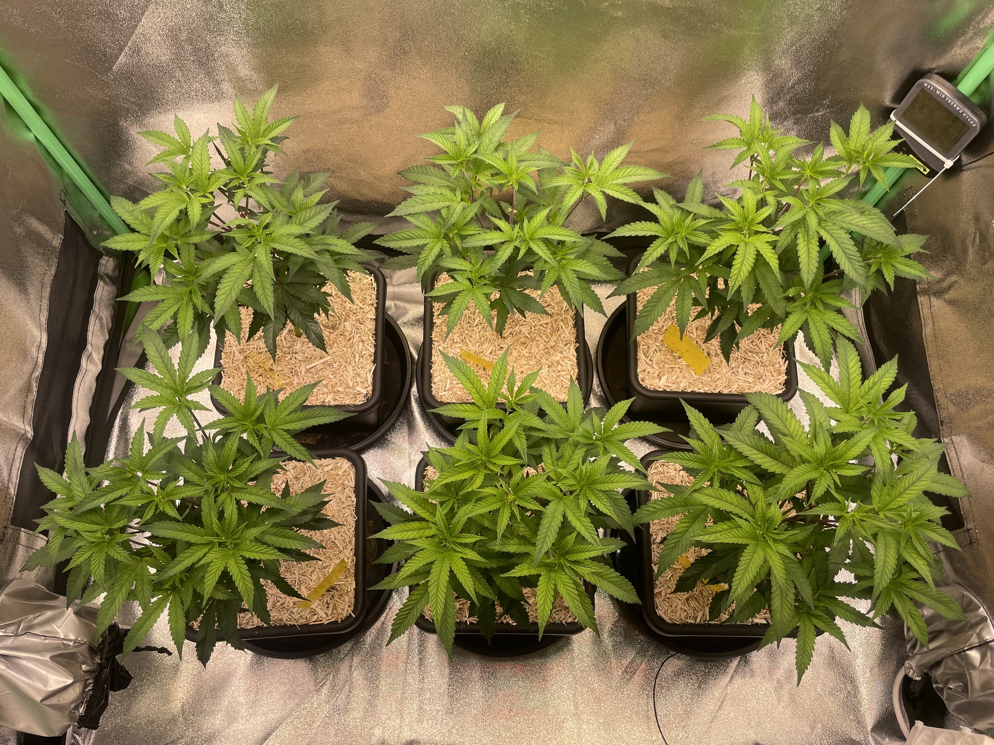 Ansonsten wird ein wenig LST betrieben, wie bei jedem Grow versucht weniger zu zupfen und disziplinierter zu schnibbeln. Geplant sind 2-3 Wochen Vegetation, meines Wissens nach ist der Phäno auf schnelles Wachstum selektiert.