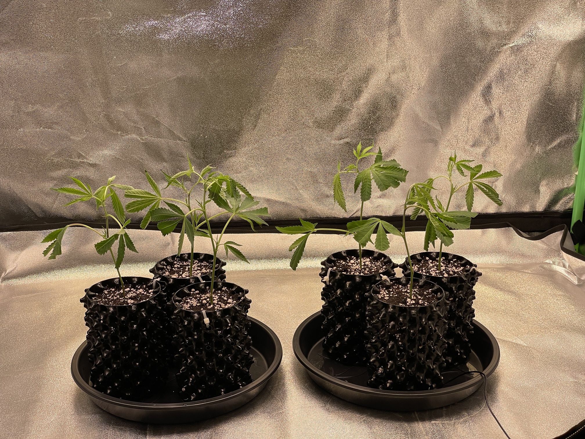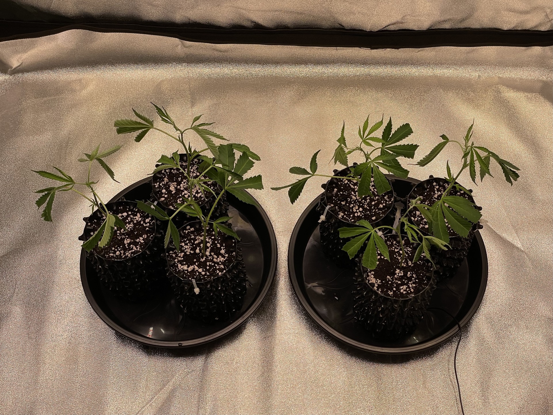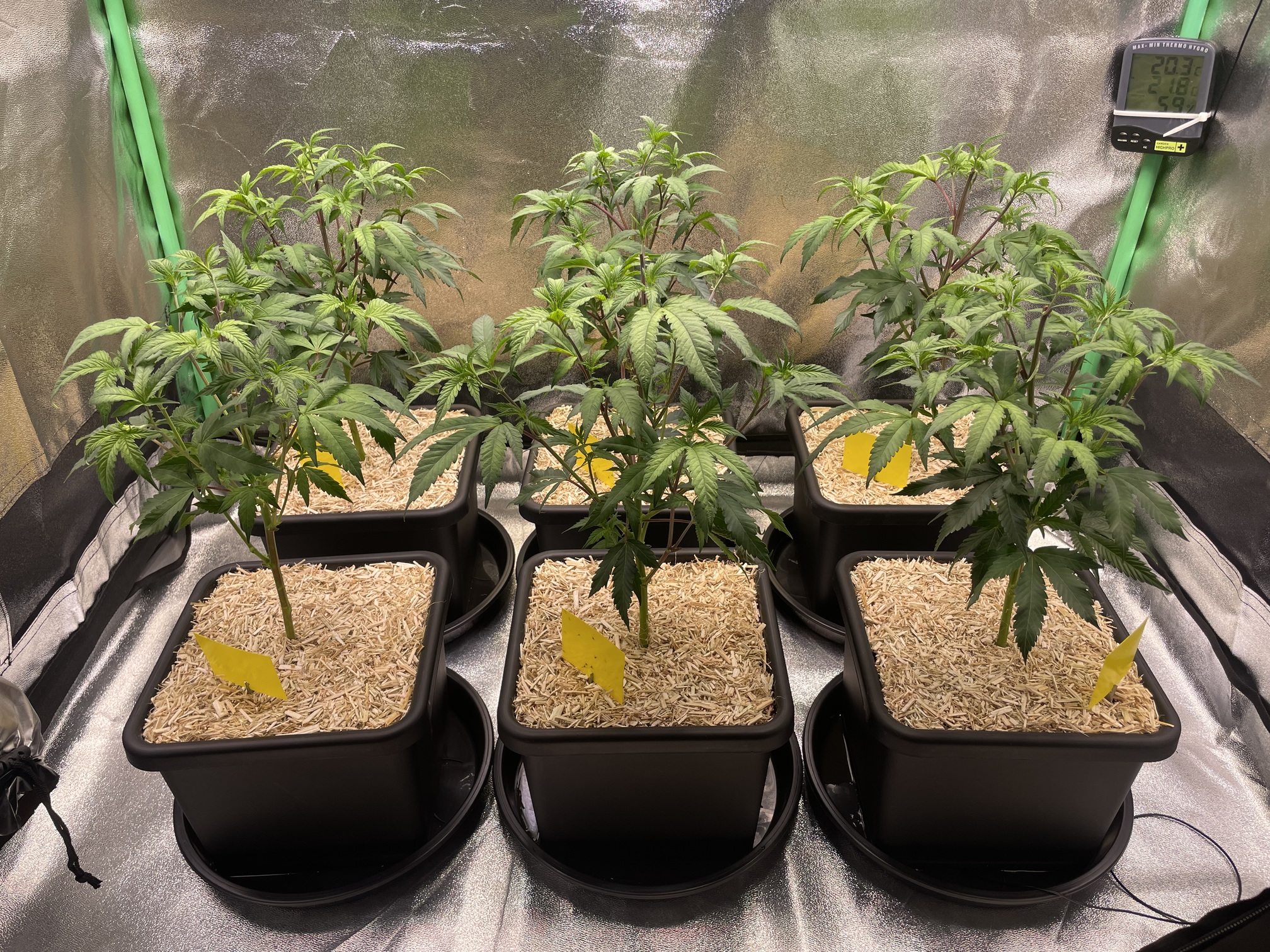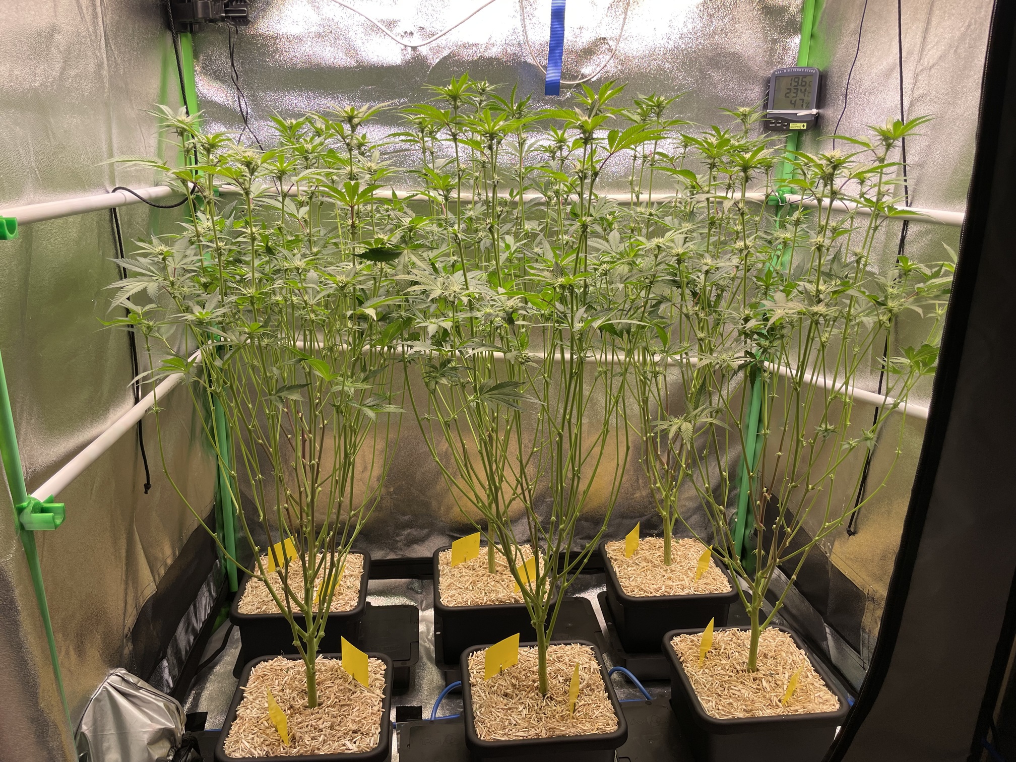 Ansonsten wird ein wenig LST betrieben, wie bei jedem Grow versucht weniger zu zupfen und disziplinierter zu schnibbeln. Geplant sind 2-3 Wochen Vegetation, meines Wissens nach ist der Phäno auf schnelles Wachstum selektiert.