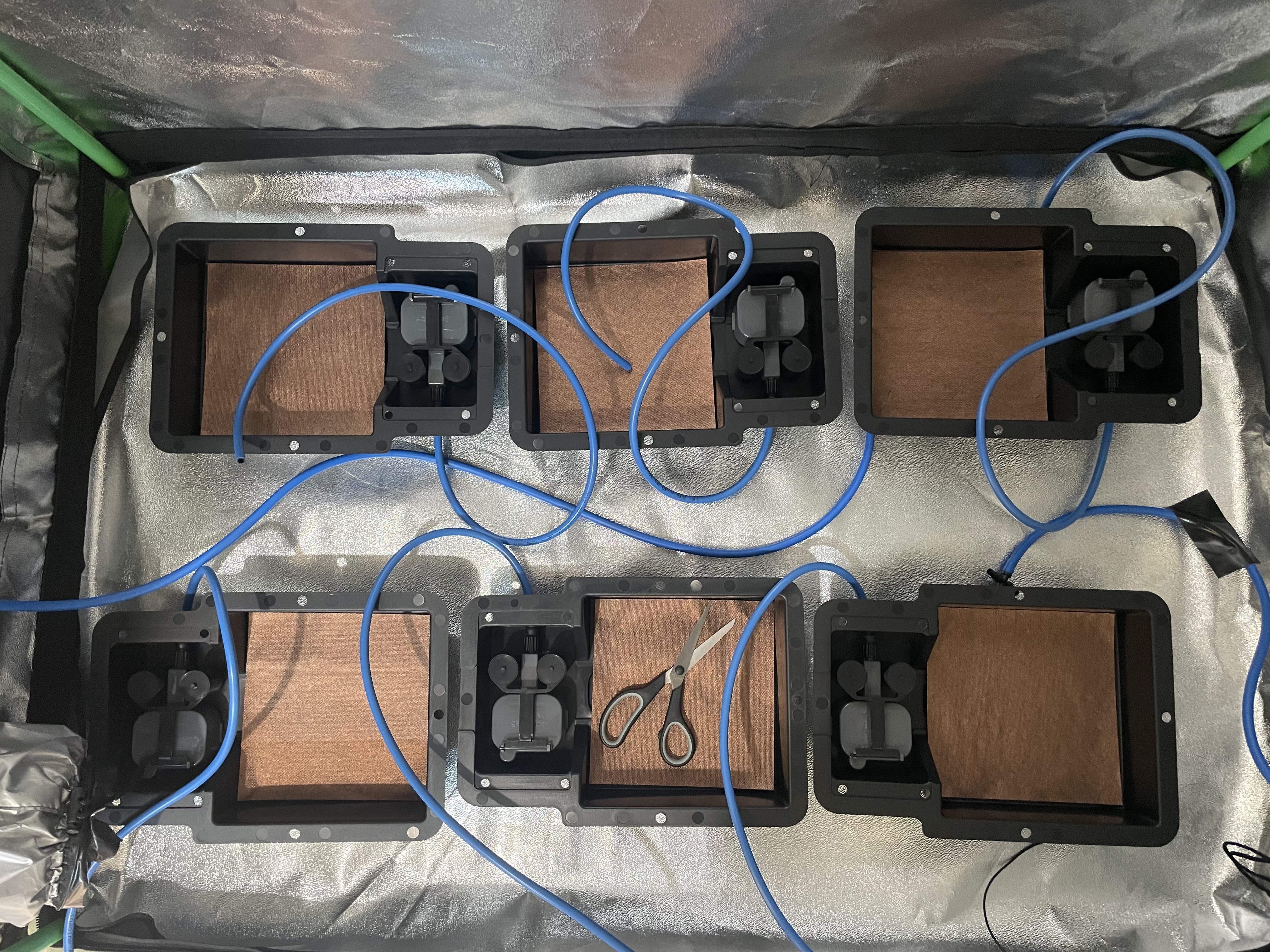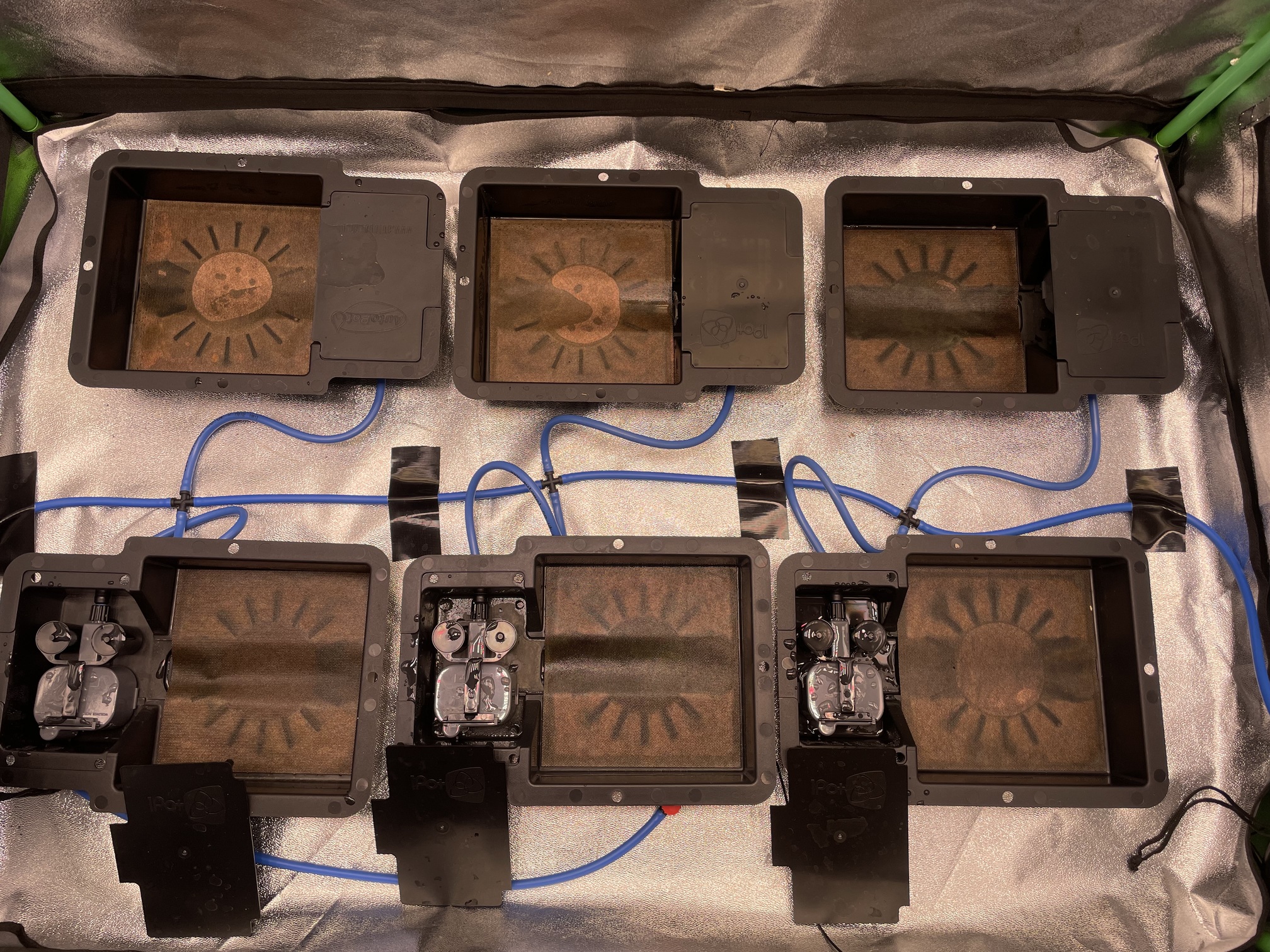 Der zweite Punkt ist die Bewässerung. Ich habe indoor ein tiefes Misstrauen gegenüber der Tröpfchenbewässerung und gieße inzwischen von unten. Das funktioniert grundsätzlich auch gut, nur habe ich durch die Technik nach wie vor Schwankungen der Bodenfeuchte beim gießen.