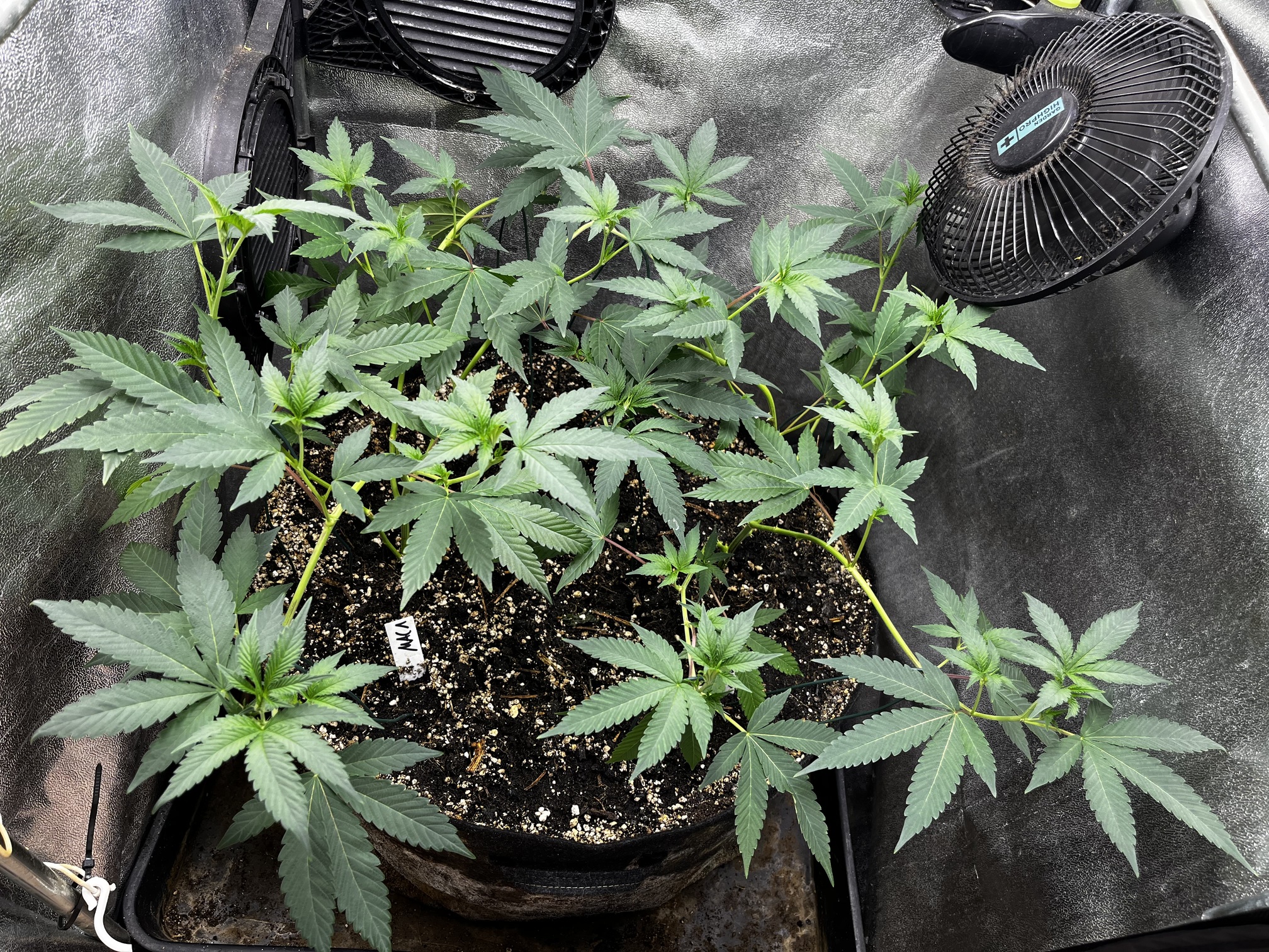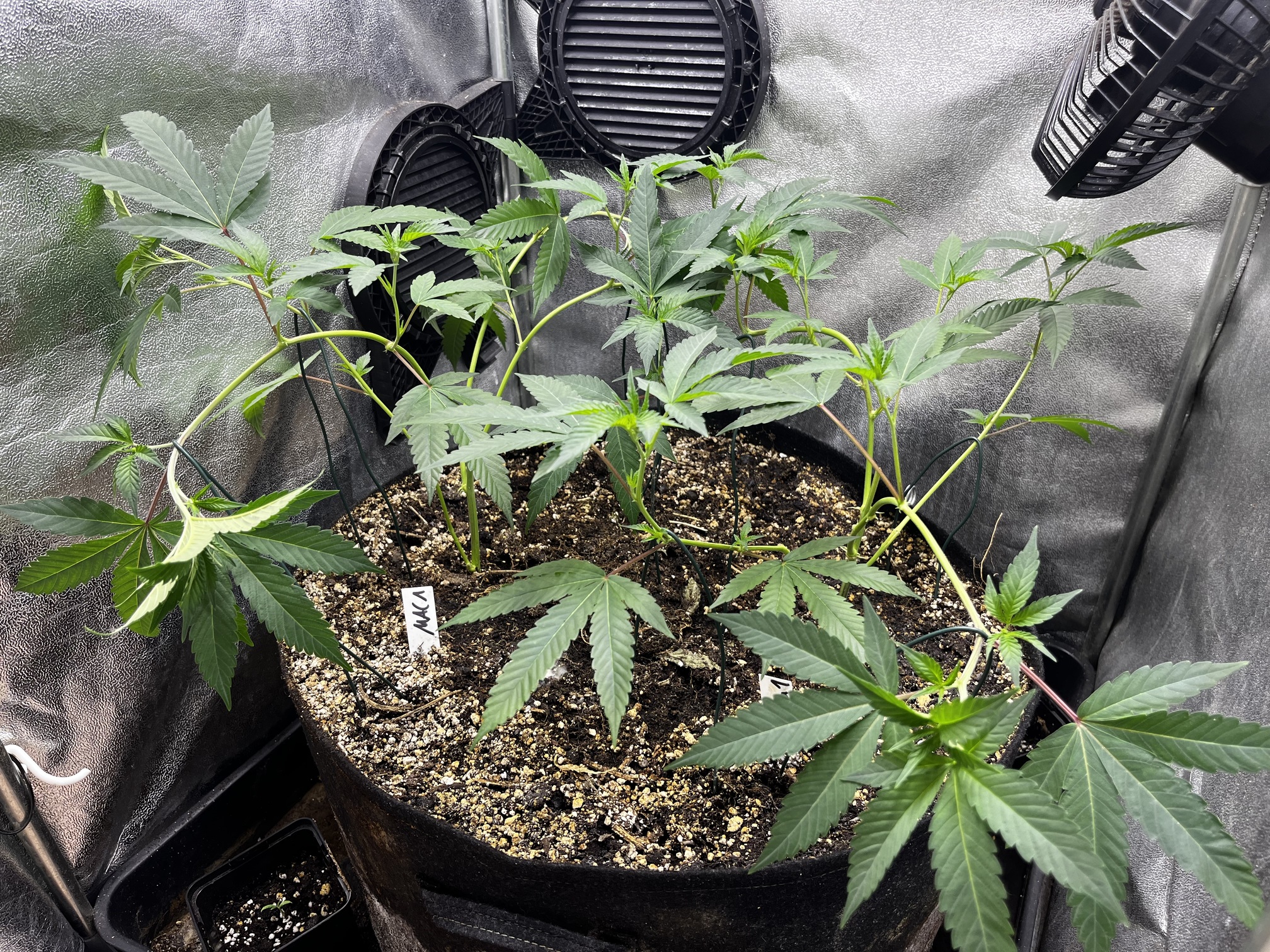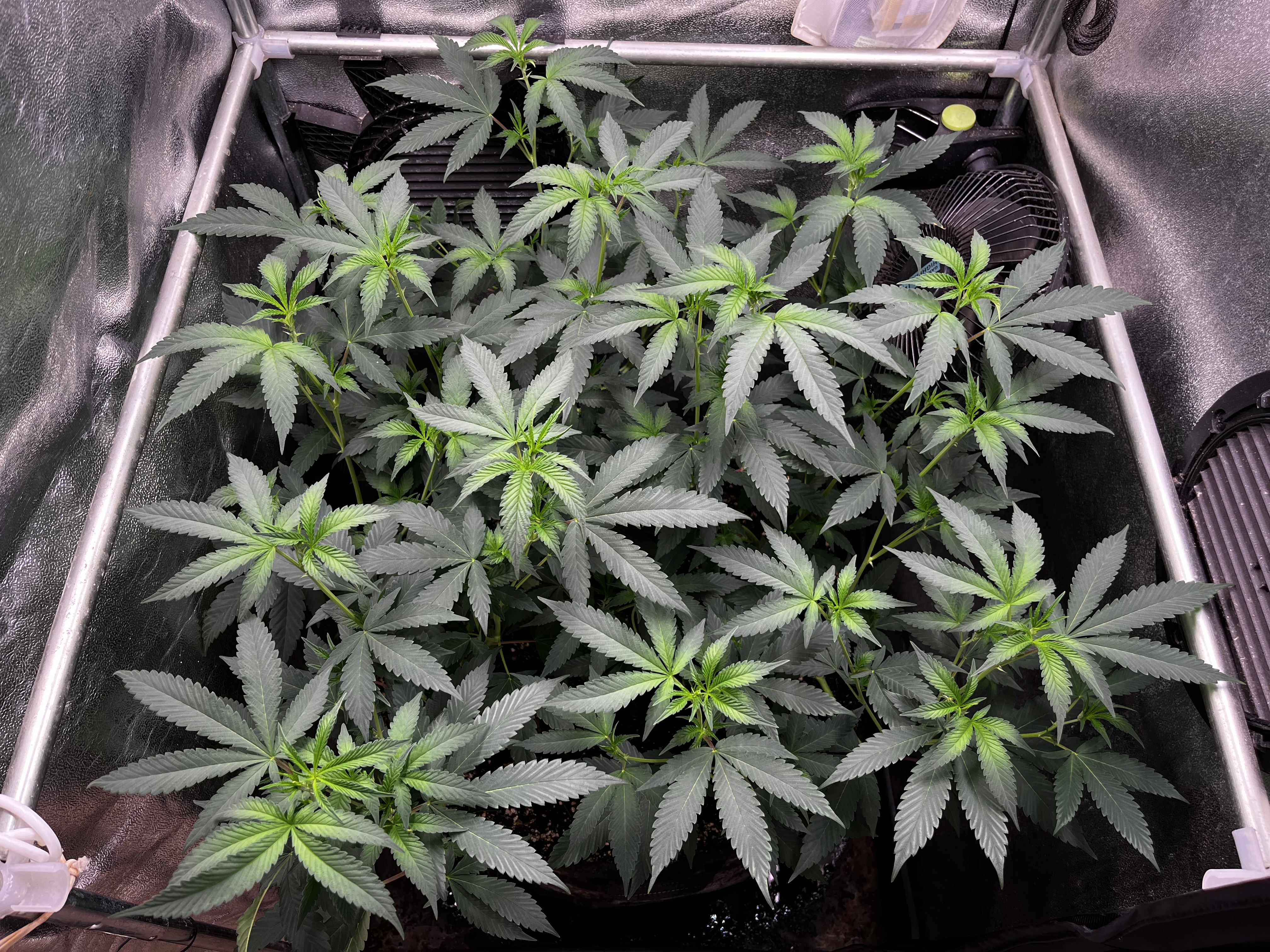 Hoffe das ihr Platz zum Blühen bald frei wird und sie in ihren Endtopf umziehen können. Wird aber noch etwas dauern und sie müssen weiter in der Anzuchtbox verharren. Stehen bissl eng, dadurch eher Höhen- wie Breitenwachstum. Denke ich werde sie eh nochmal toppen und mir eine Kopie aufheben, falls die Blüten (wie erwartet) gut werden. Freu mich besonders auf die MAC, da ich sie schon mal in Spanien probiert hab