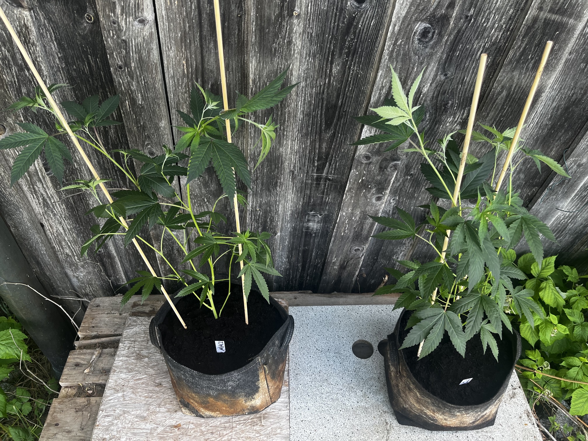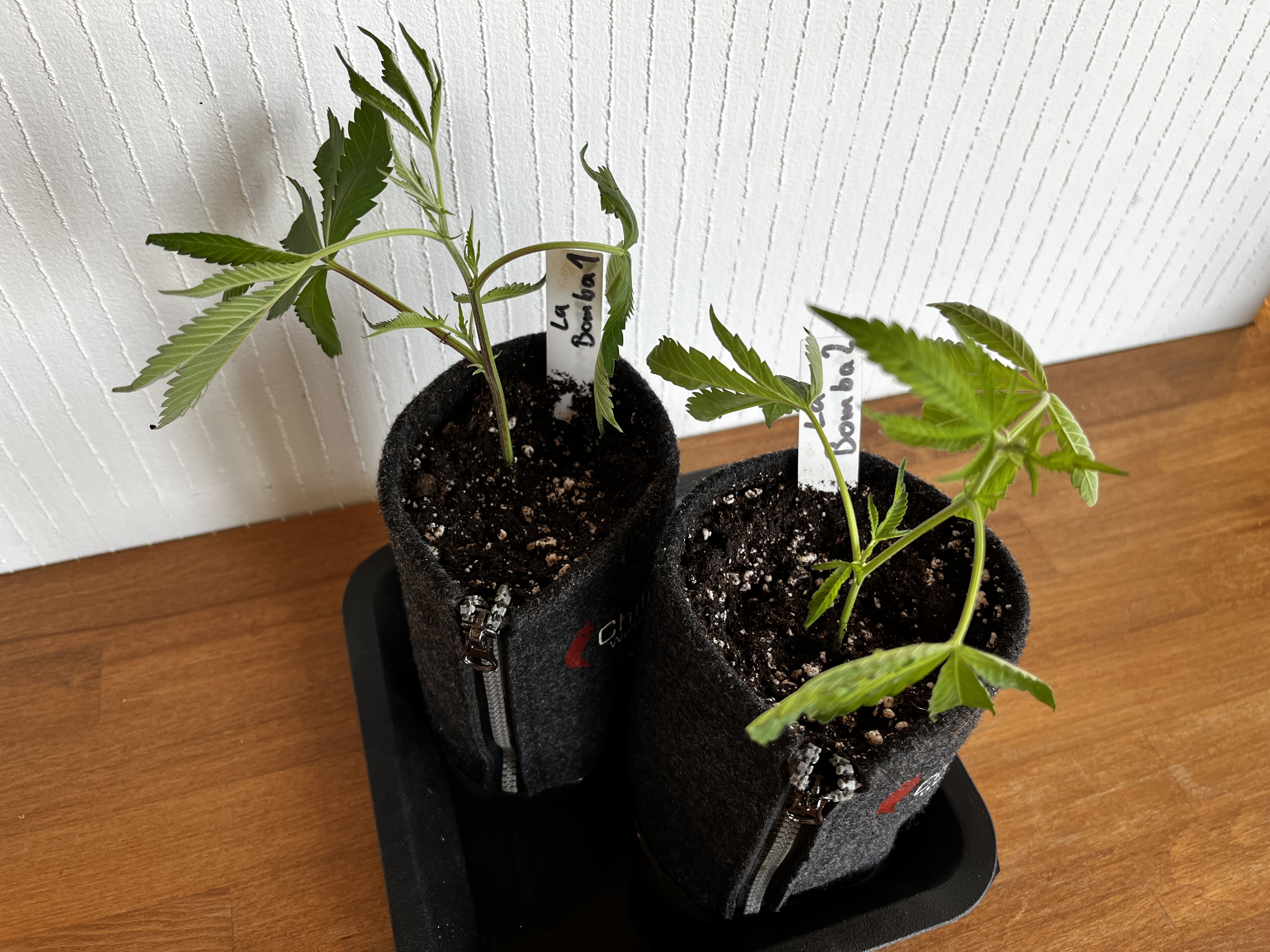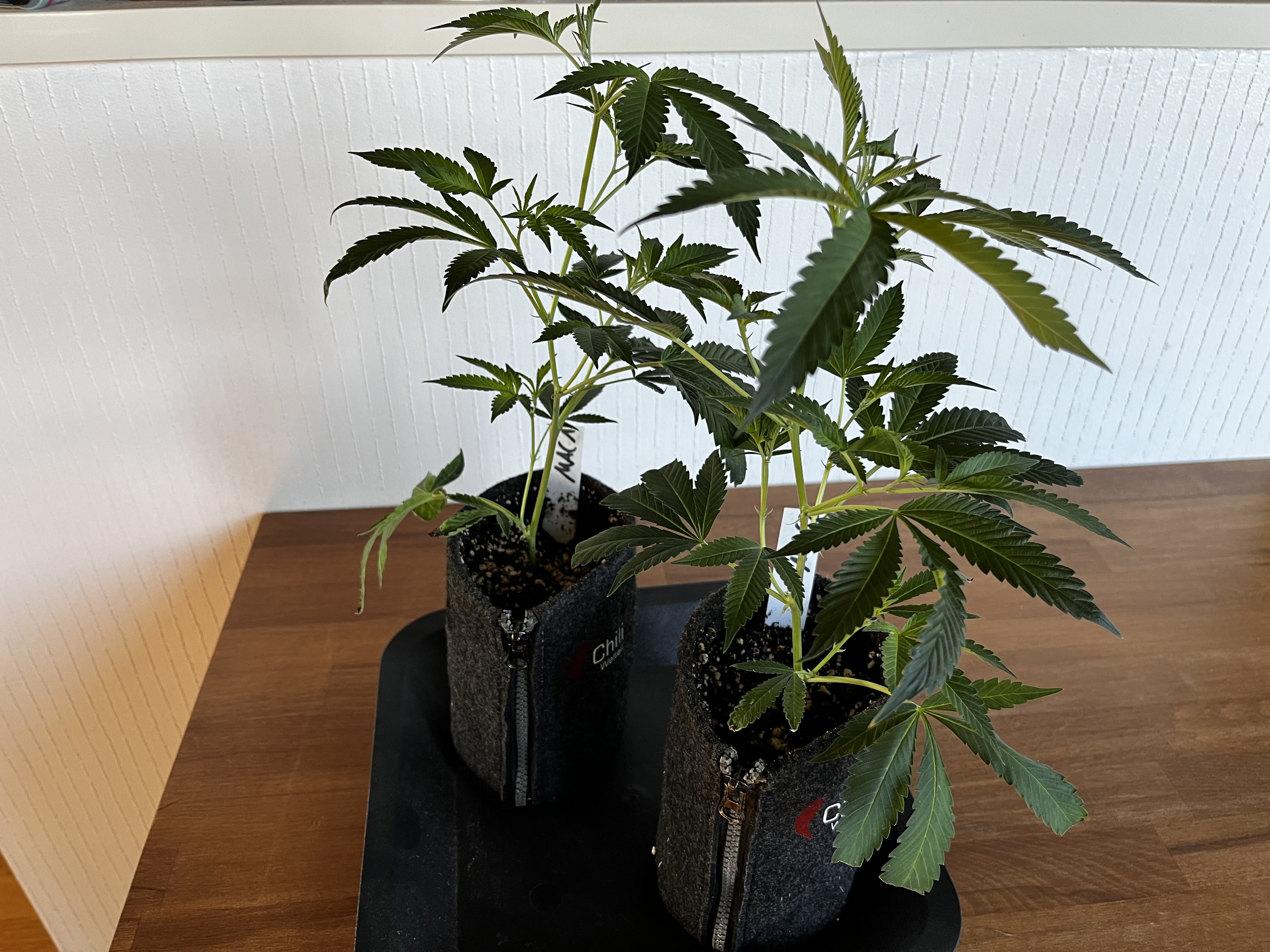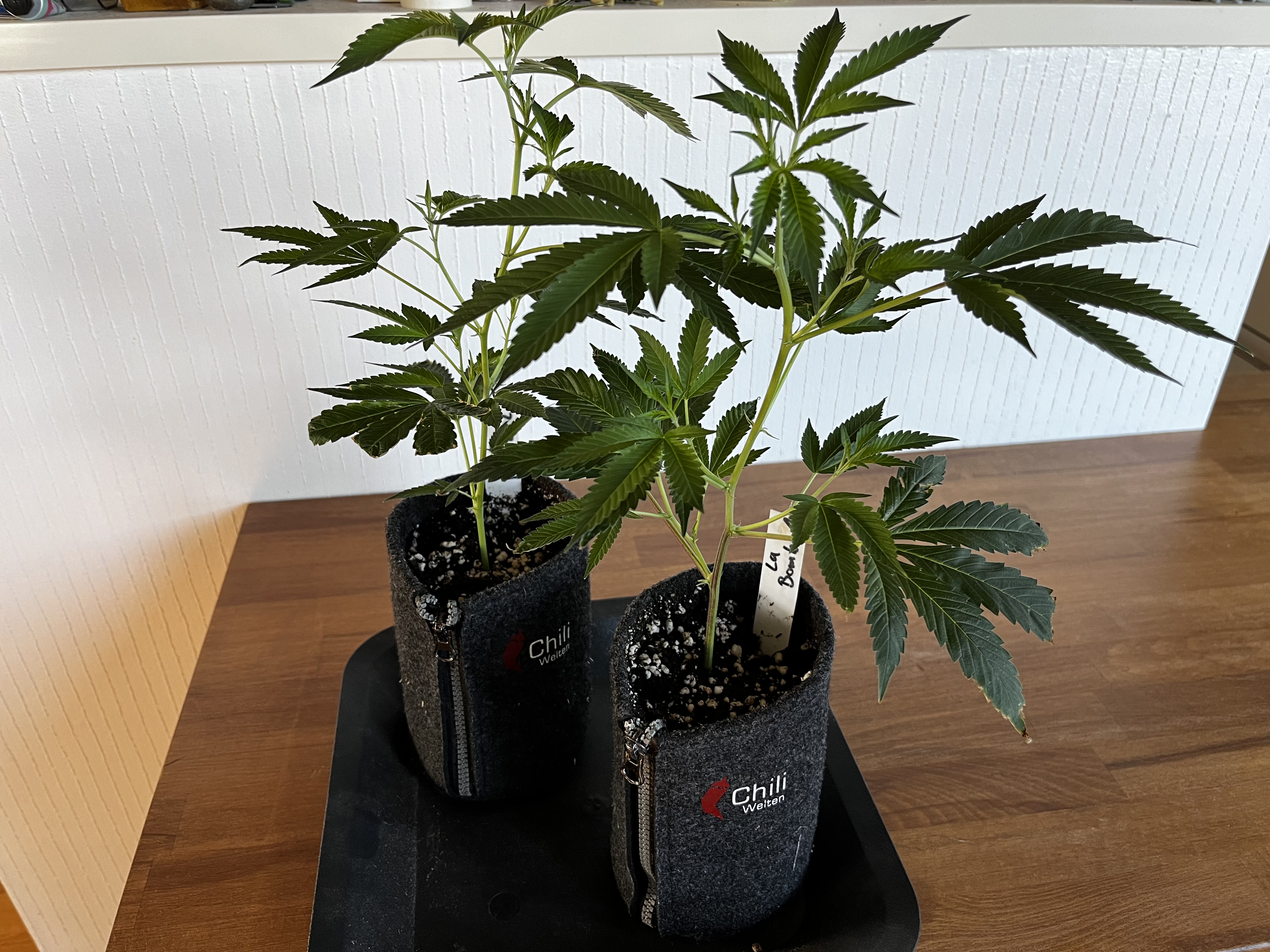 Die kleinen wurden mal in 1L Stofftöpfe eingetopft und werden gehalten bis der erste Testjoint von beiden Sorten brennt.