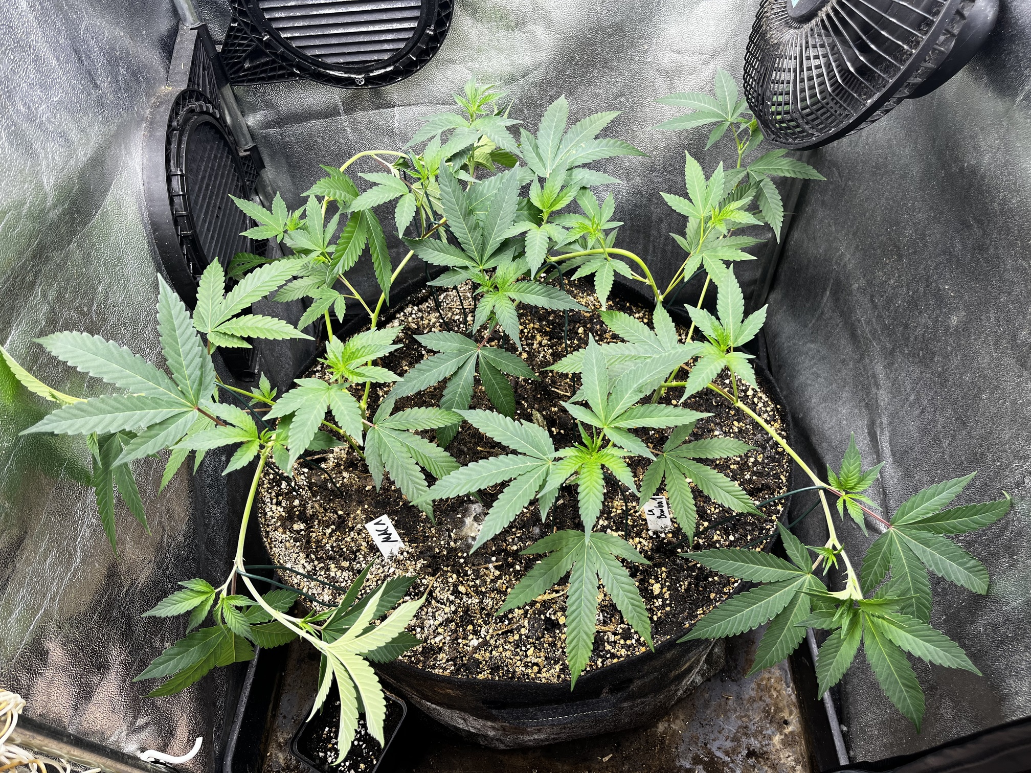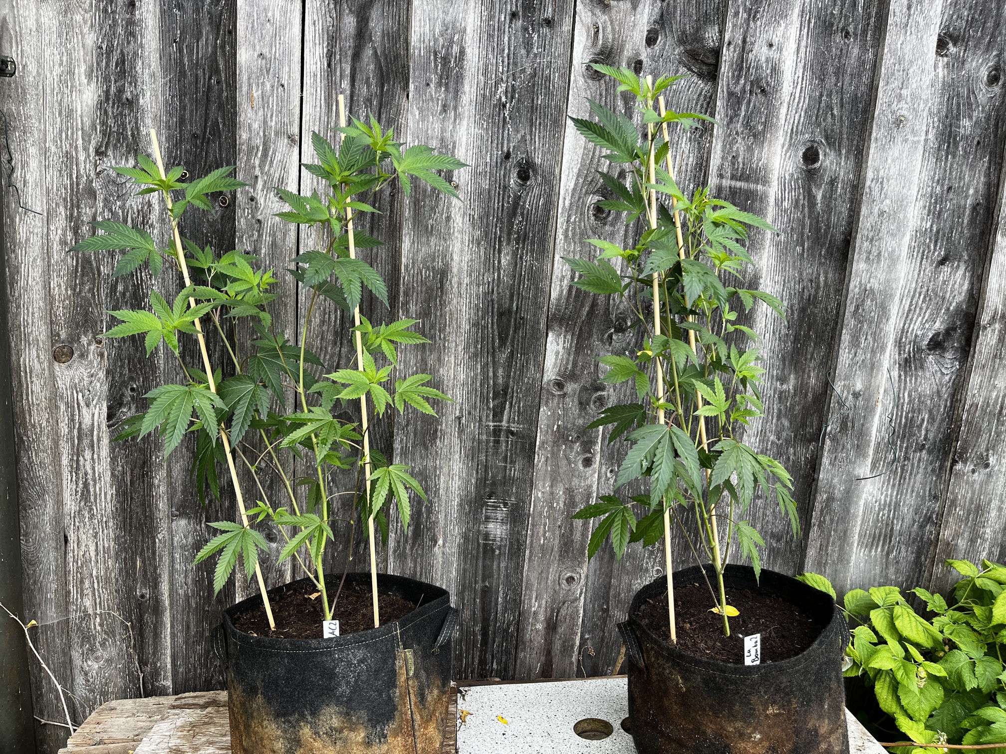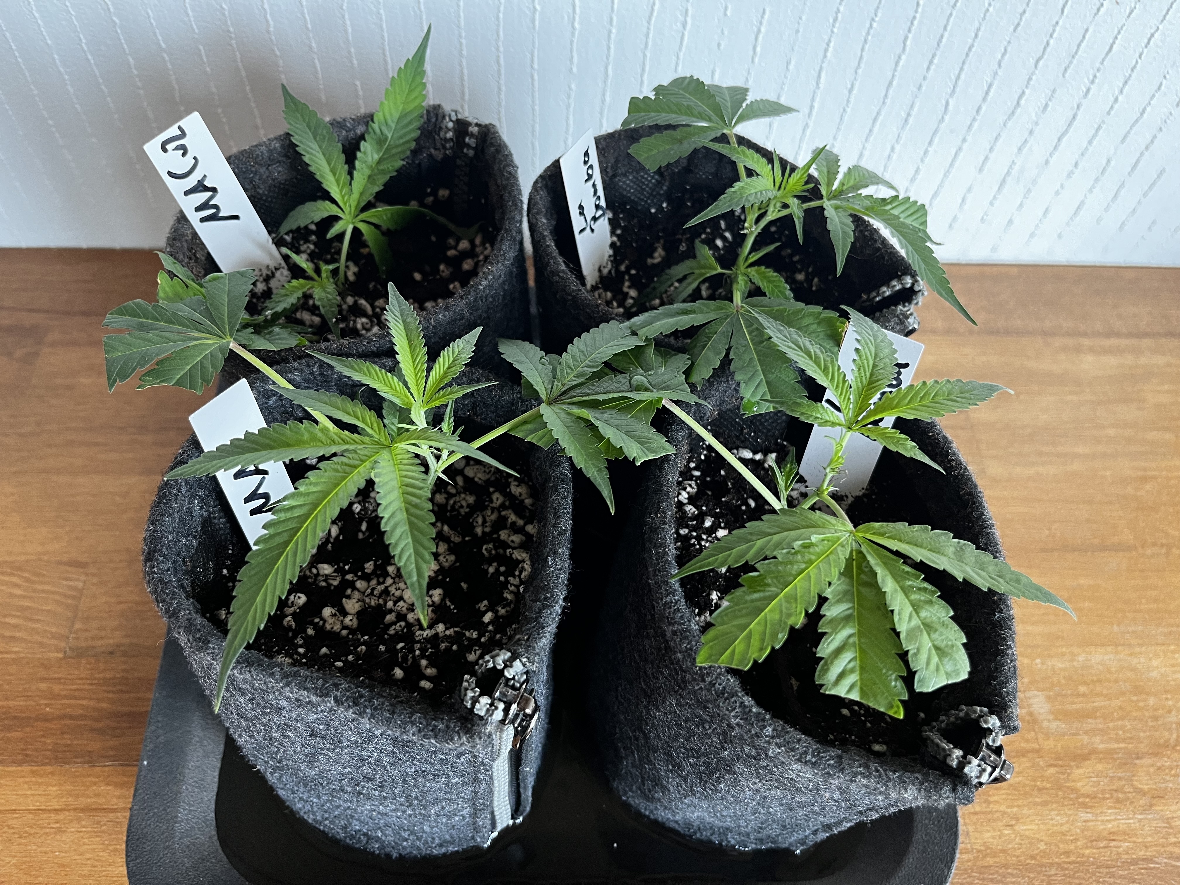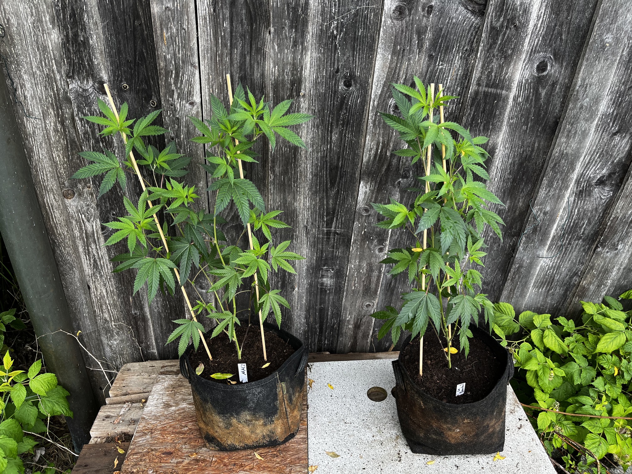 Die kleinen wurden mal in 1L Stofftöpfe eingetopft und werden gehalten bis der erste Testjoint von beiden Sorten brennt.
