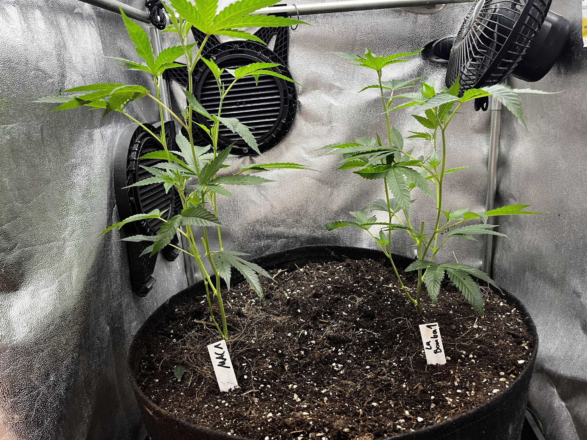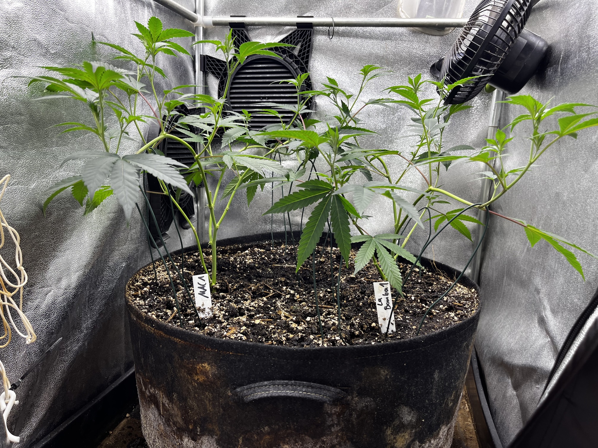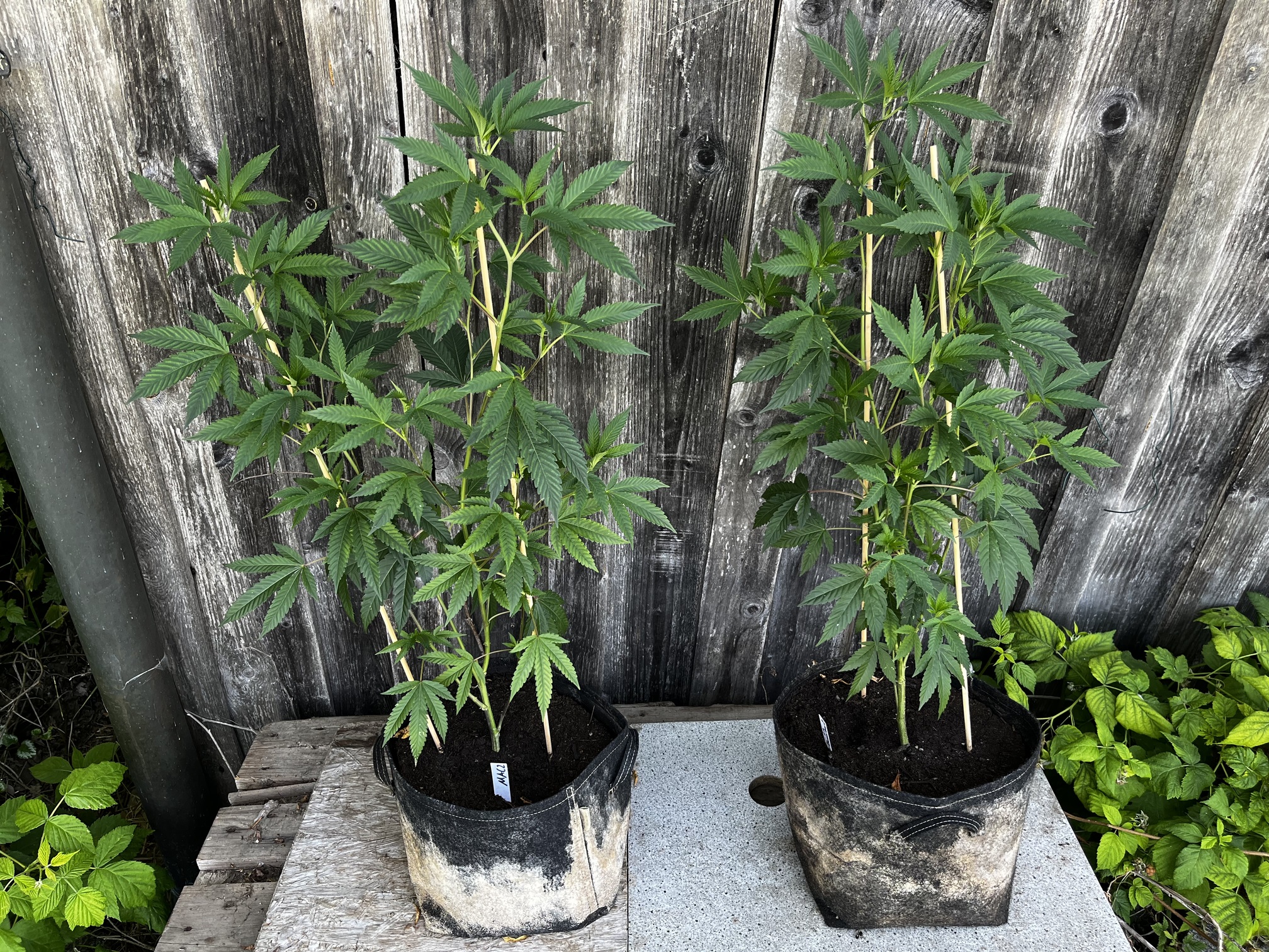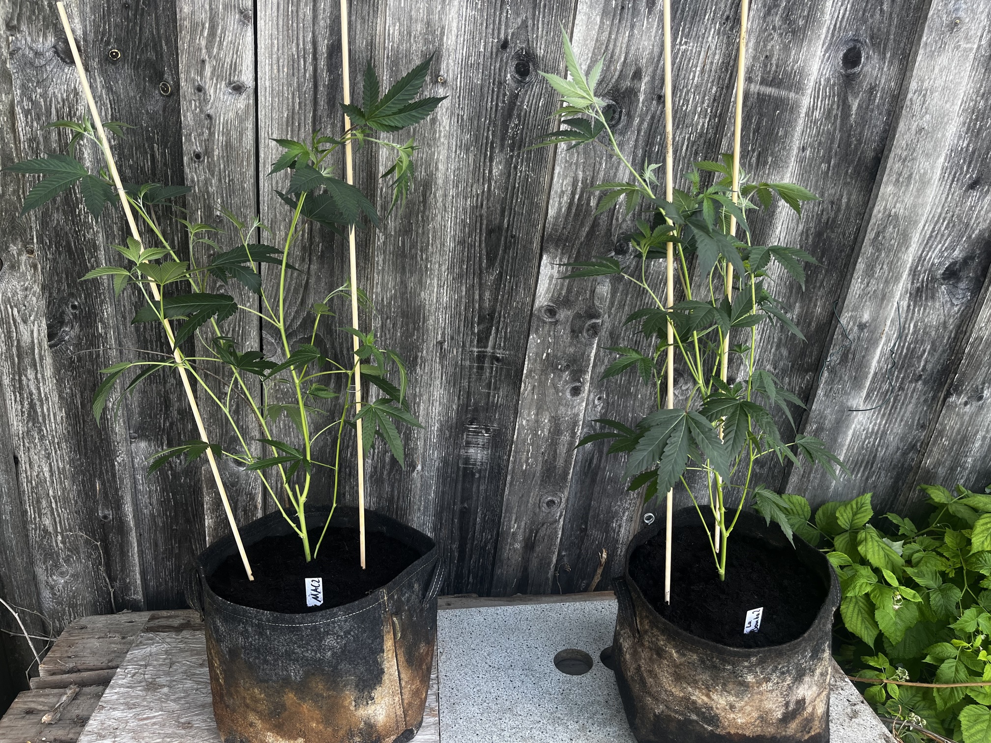 Die kleinen wurden mal in 1L Stofftöpfe eingetopft und werden gehalten bis der erste Testjoint von beiden Sorten brennt.