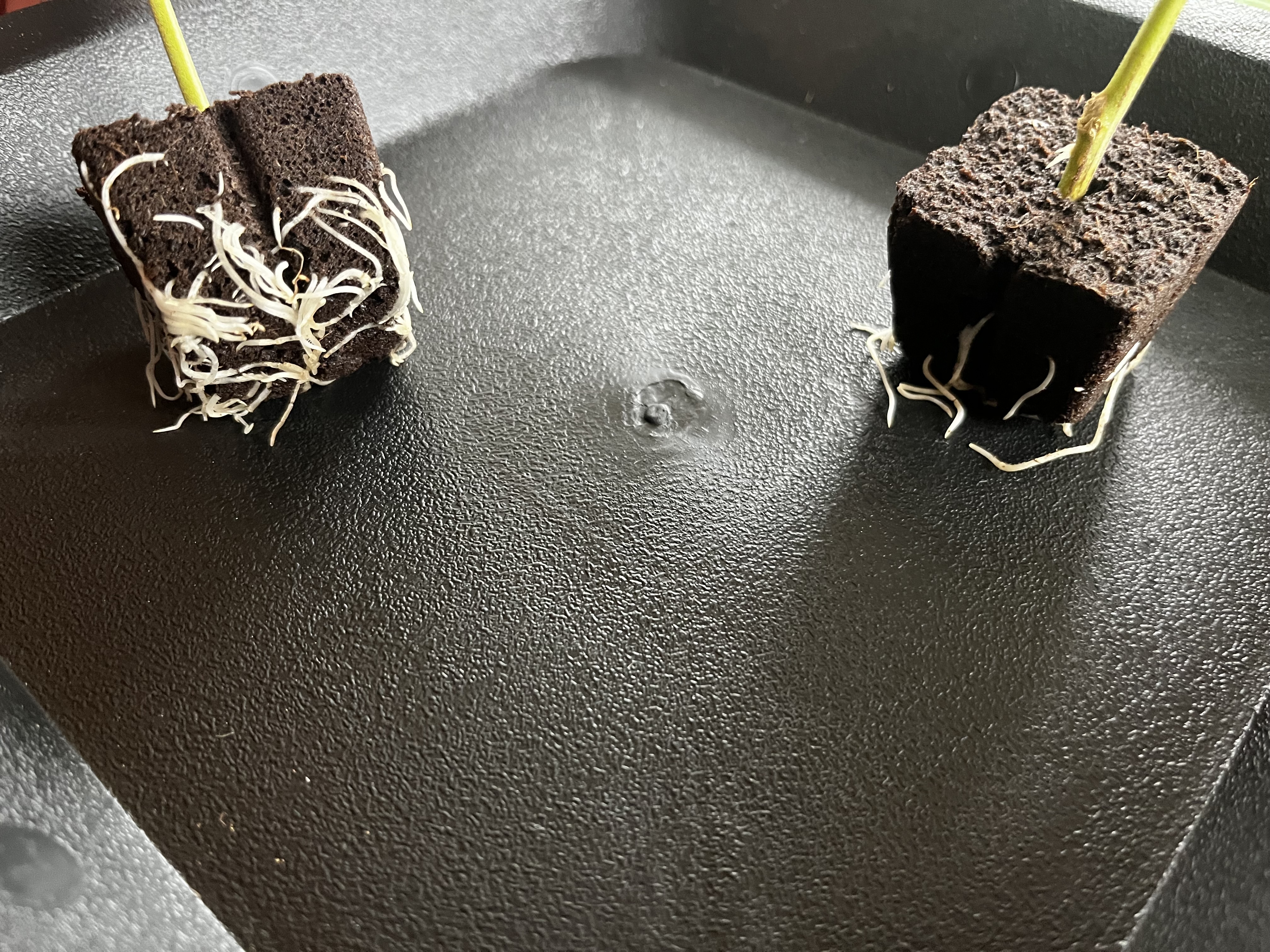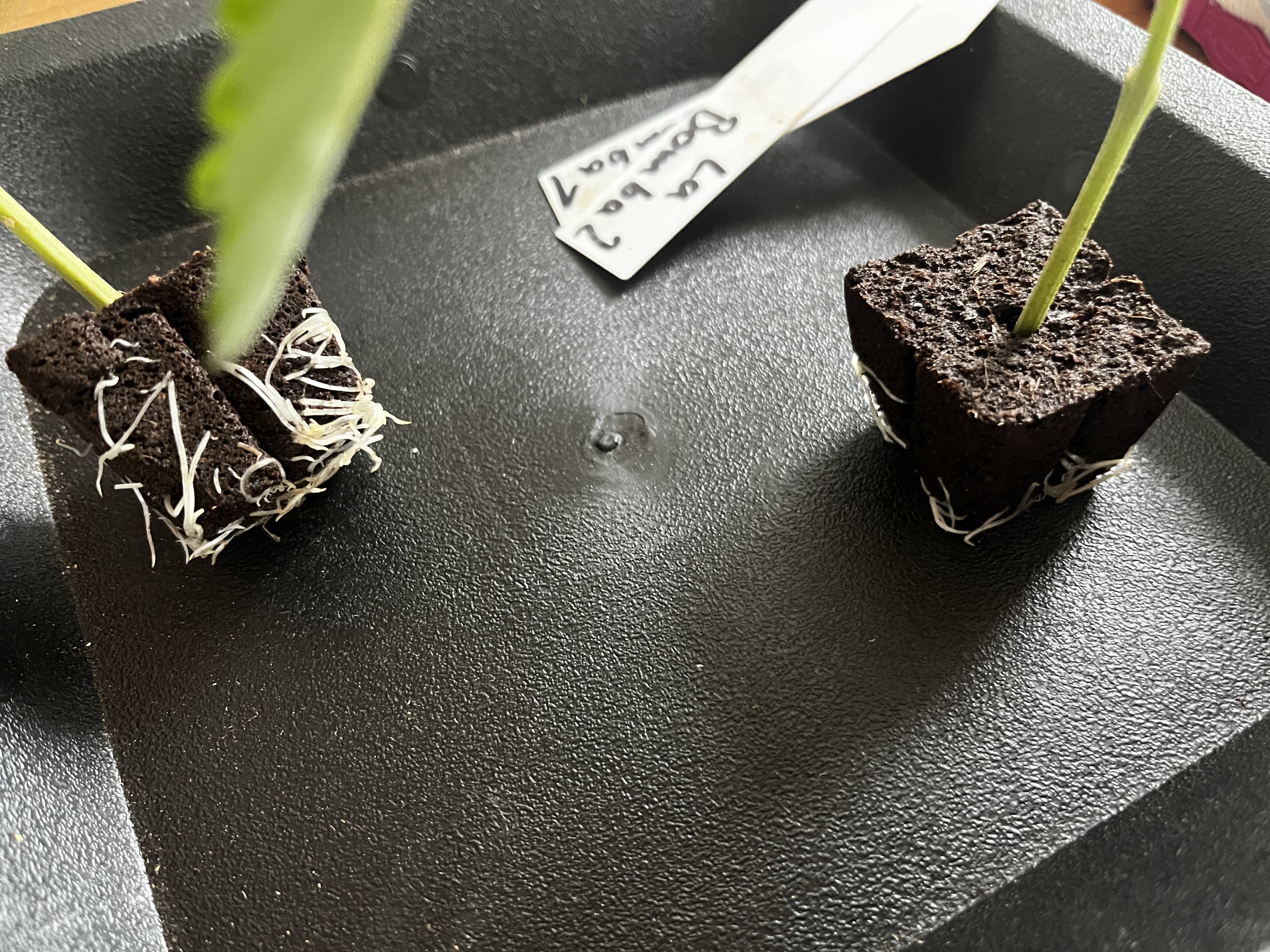 Warum die Sorten Stecklingssorten sind, hat sich beim Clonen sofort gezeigt. Die wurzeln an wie nichts und scheinen das gar nicht gemerkt zu haben abgeschnitten worden zu sein… Hatte aber noch 3 andere Steckies geschnitten und diesmal eine 100% Wurzel Quote auf 7 Steckies, also eh ne gute Runde für Fensterbanksteckies!