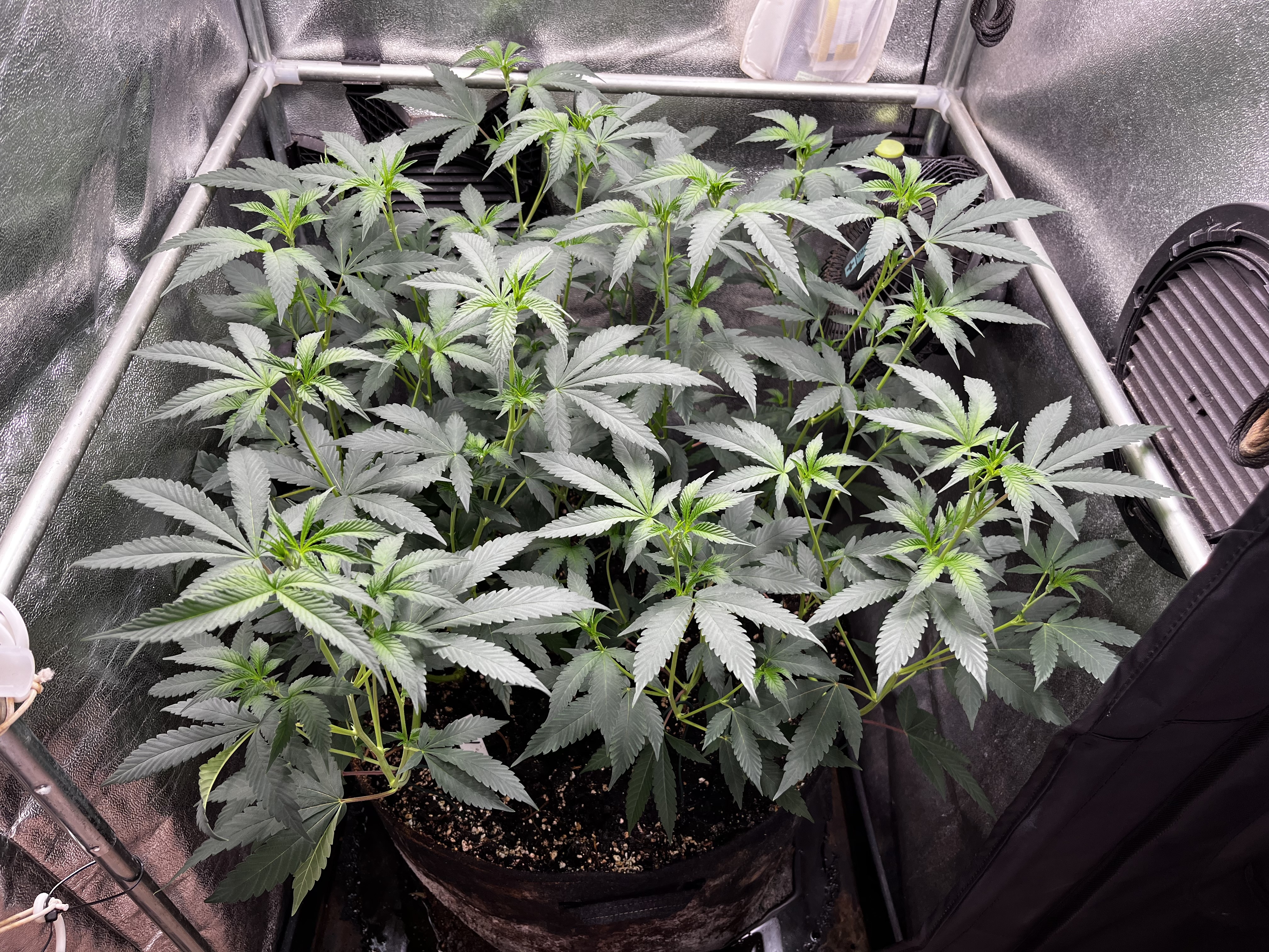 Habe Indoor einen kleinen Fehler beim Bedienen der App gemacht und doch erst 2 Tage später auf die Blütebeleuchtung umgestellt. Naja auch nicht weiter schlimm, der Stretch hält sich eh in Grenzen, was ich bei den Growlegen gesehen habe. Far Red wurde etwas hochgedreht ~60%. Immer noch nur Wasser zum Gießen, heute mal mit ~5ml EMa