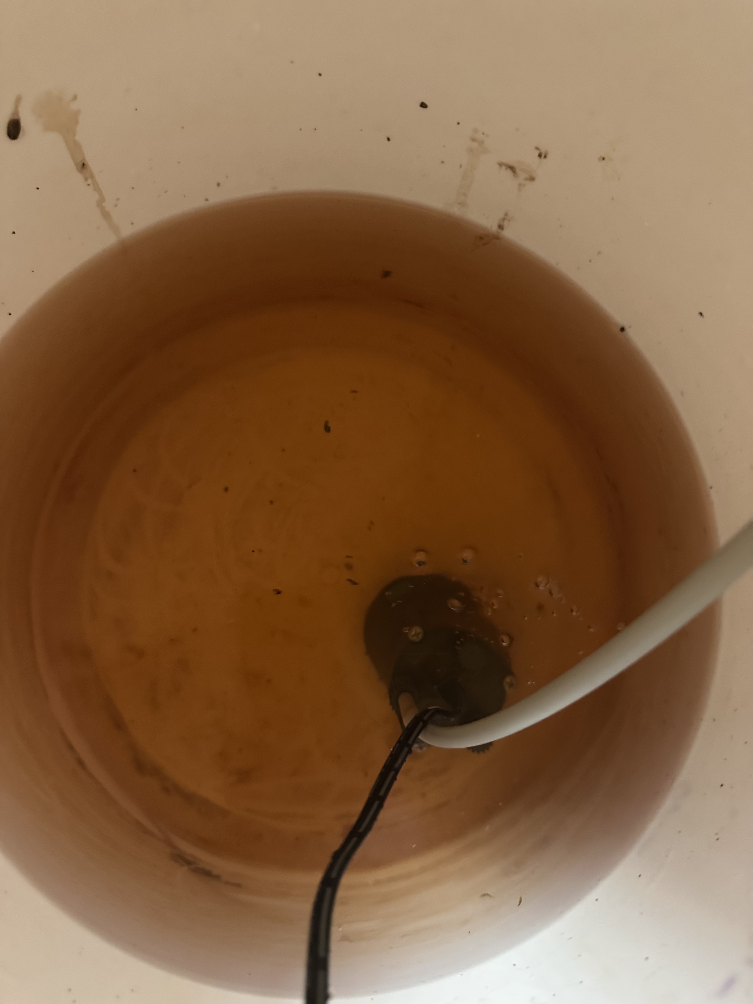 Hier liegt die Pumpe noch in einem 20 Liter Eimer.