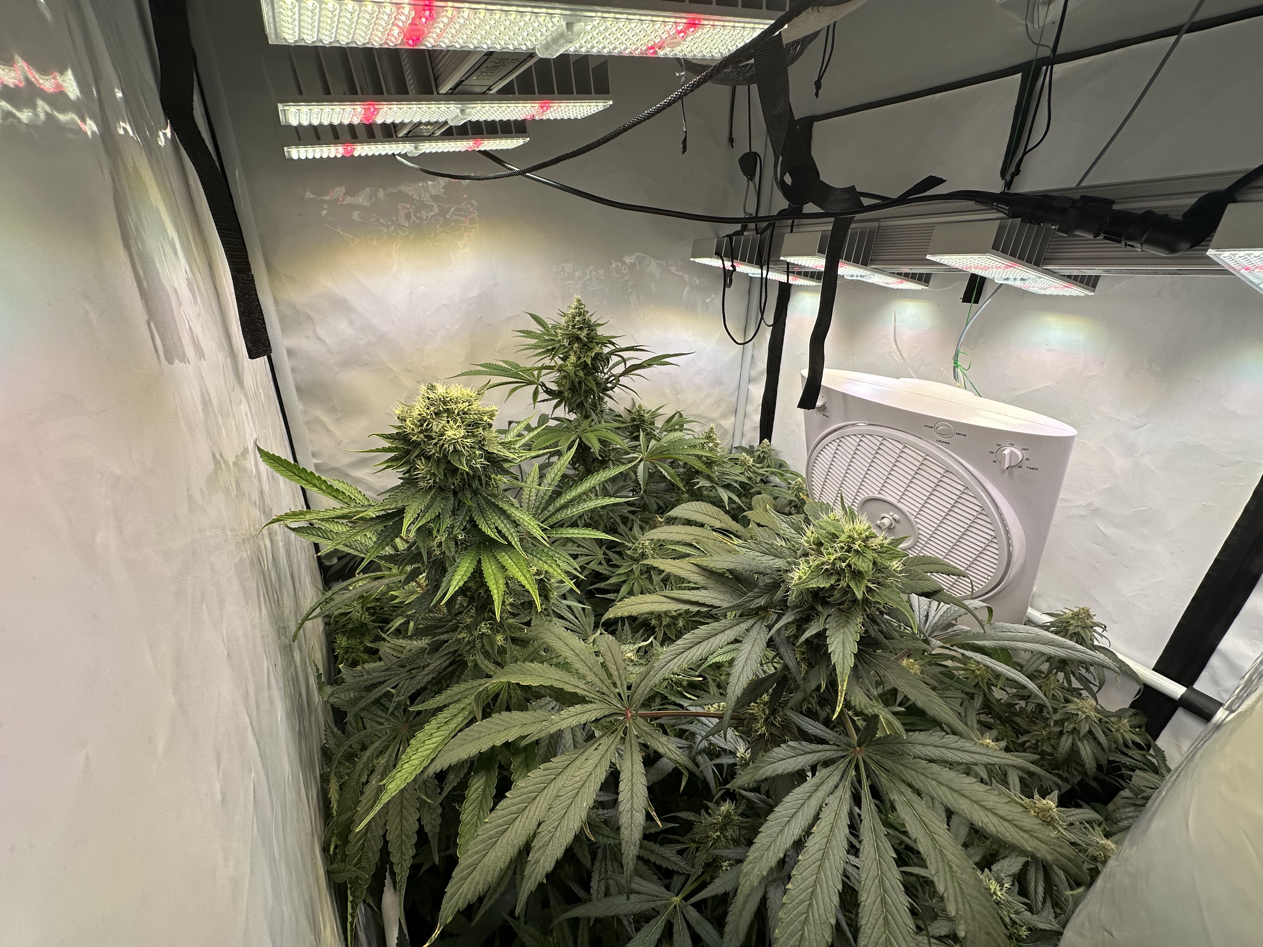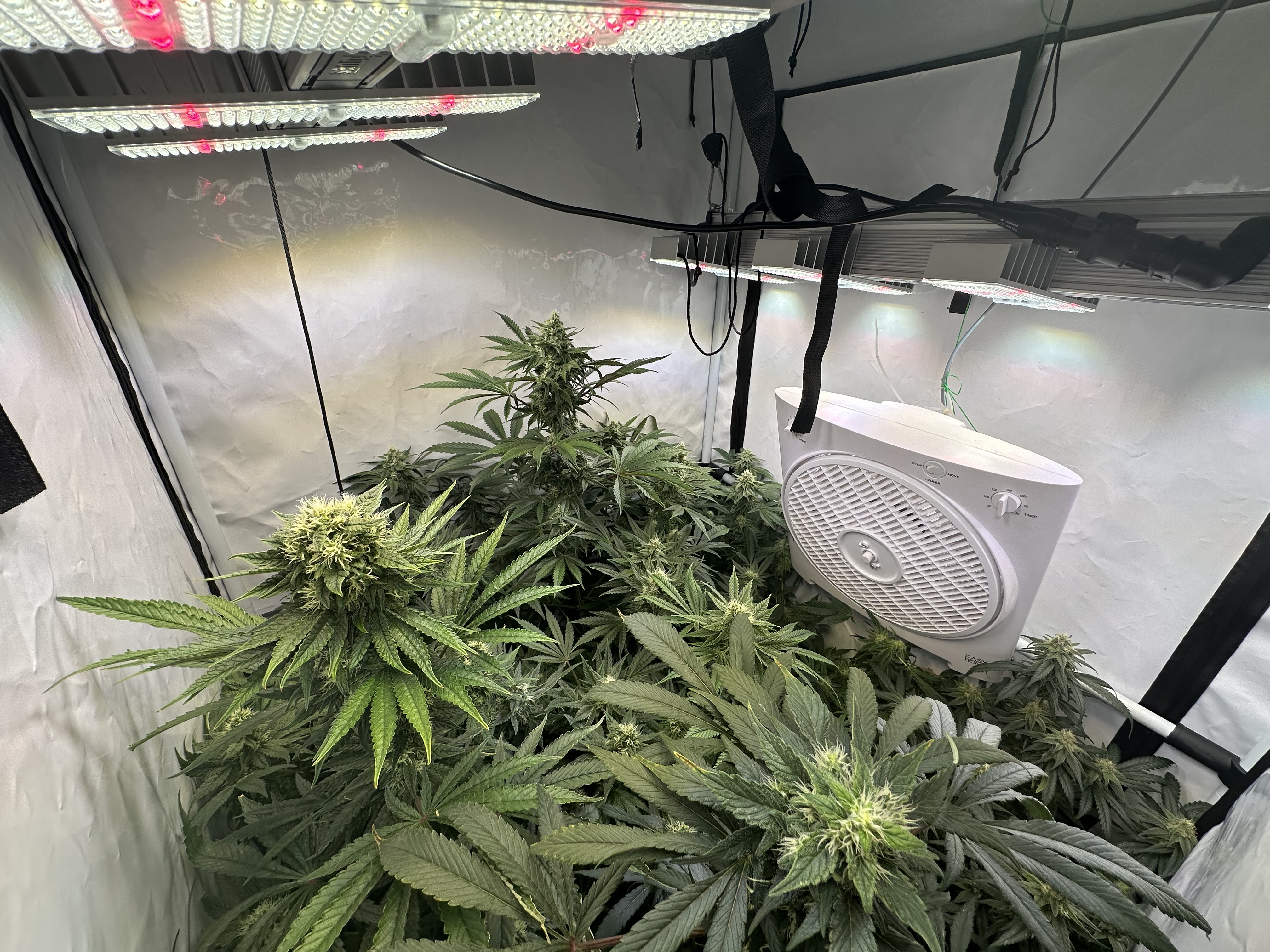 Die Mädels stehen noch gut da. Immer noch hab ich die Moonshines noch nicht ganz unter Kontrolle. Zumindest links rollt stark die Blätter ein. Aber ihr Leben ist auch nicht leicht unter der Sanlight🤣