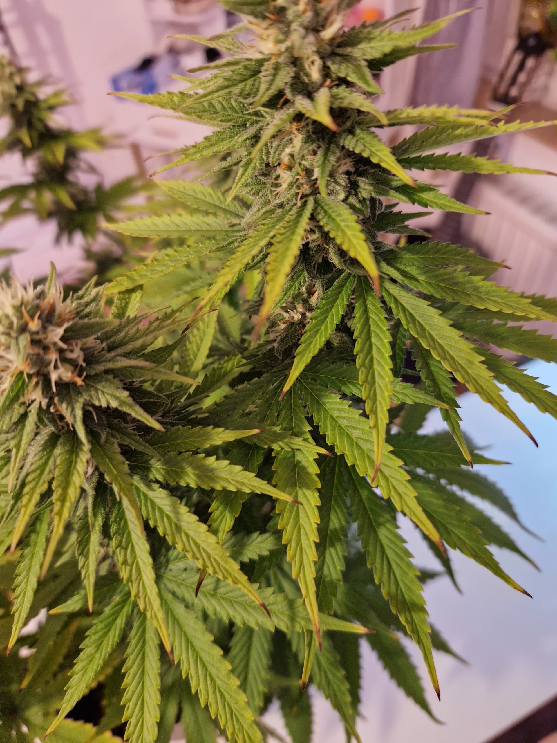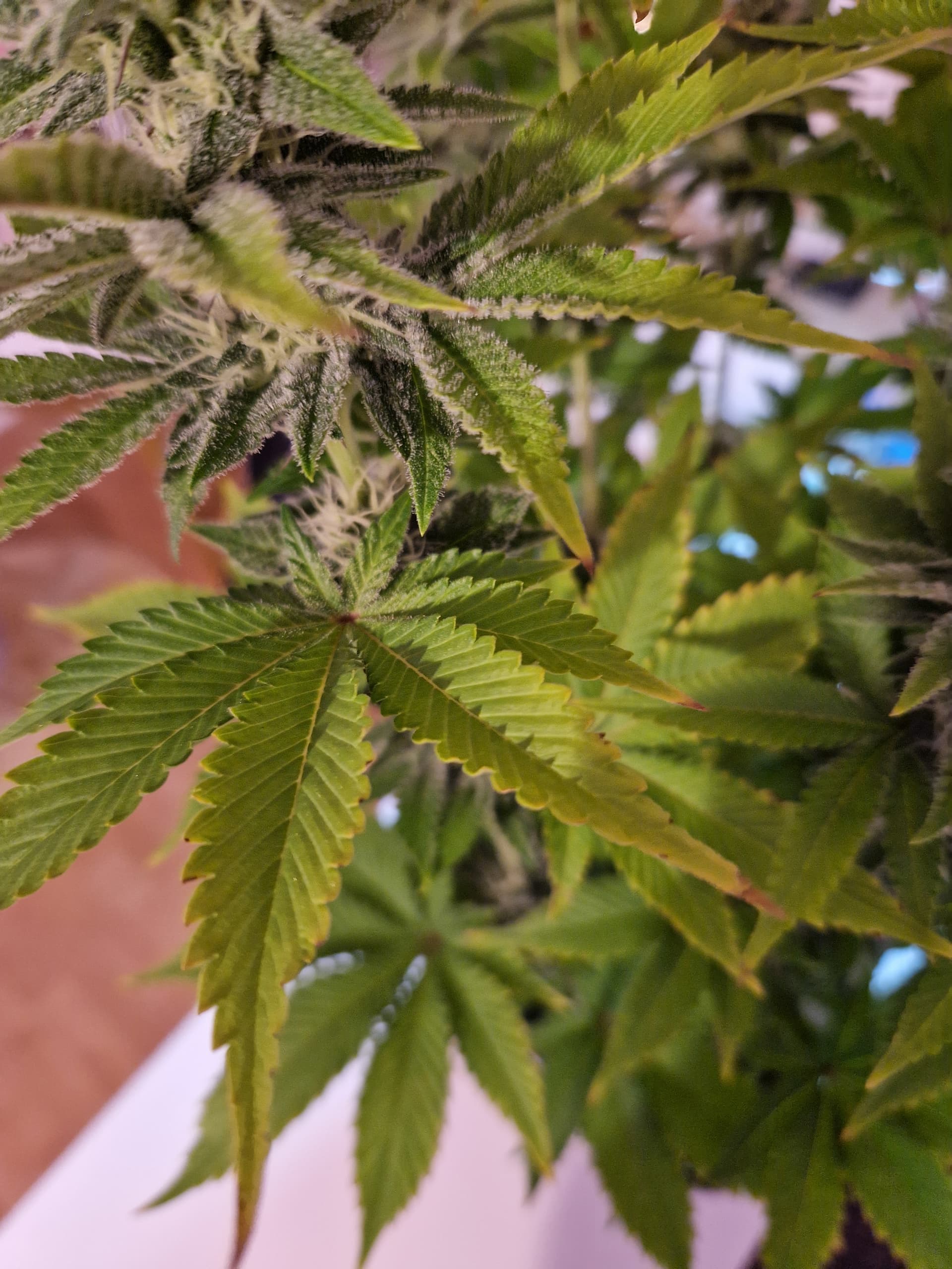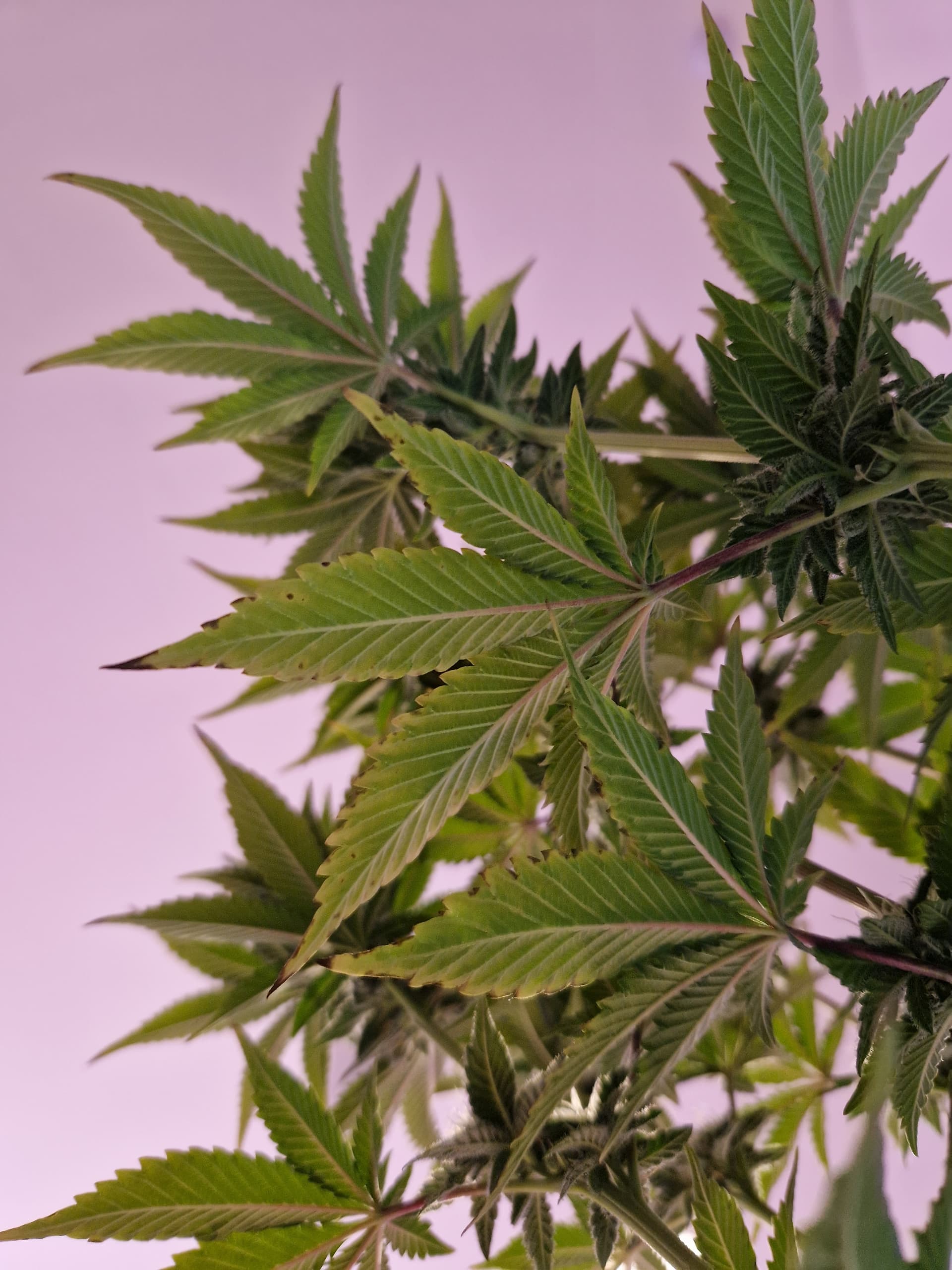 Hoffe, dass sie sich die Tage wieder fangen und der Mangel Geschichte ist. Aufgefallen sind einige Blattspitzen die verbrannt zu seien scheinen. Der Abstand zur Lampe beträgt ca. 40 cm auf 100 % Leistung.