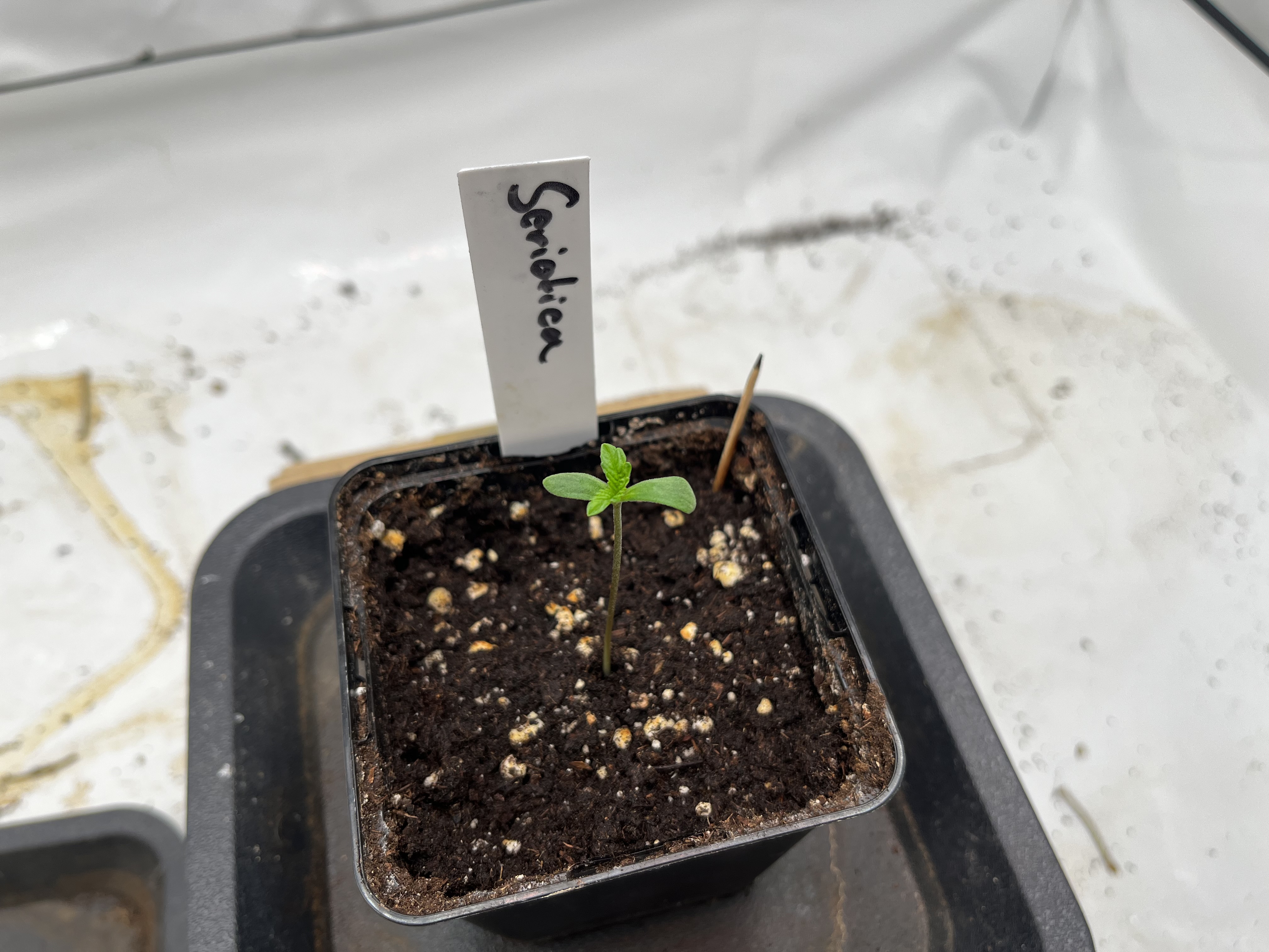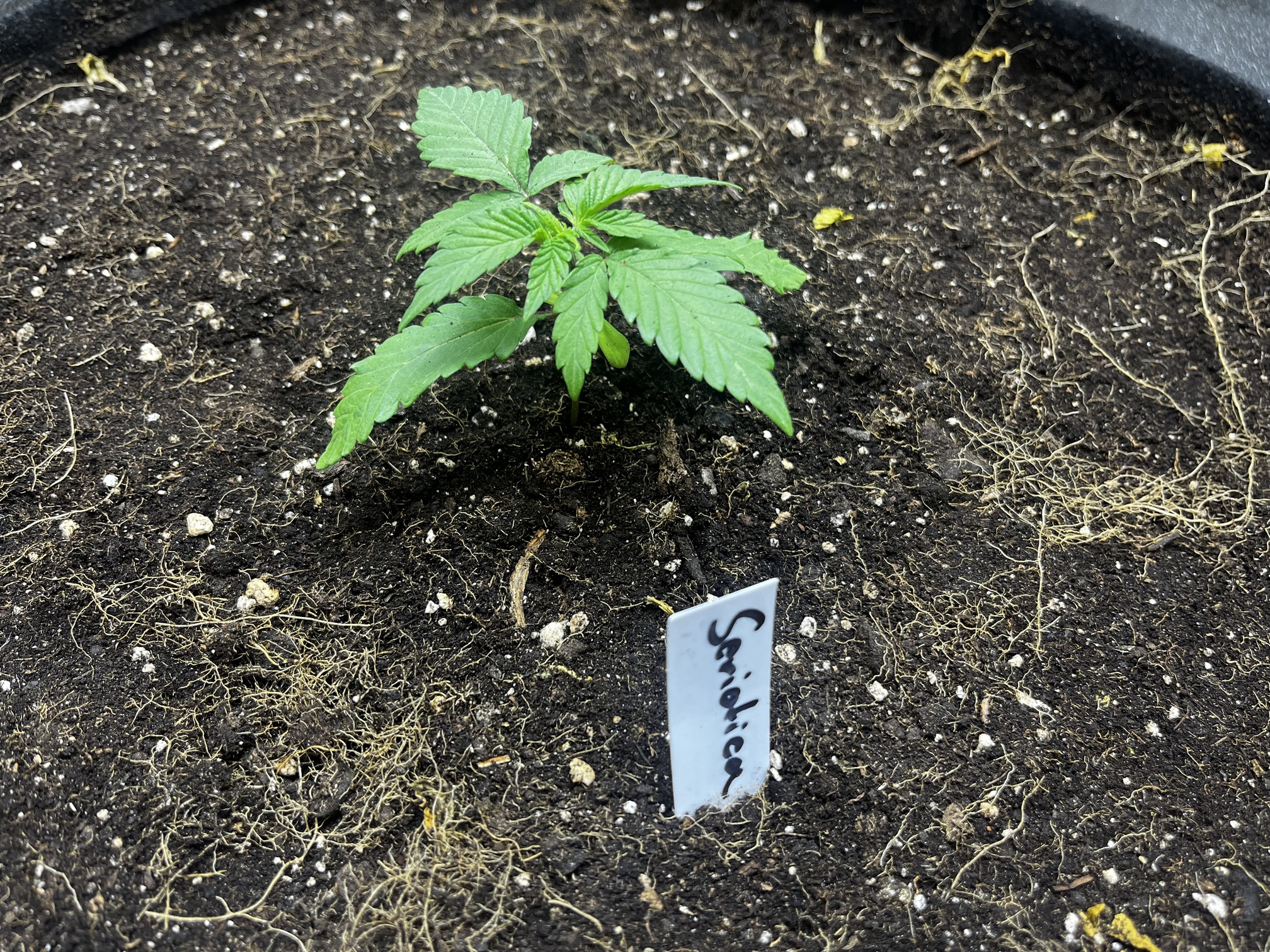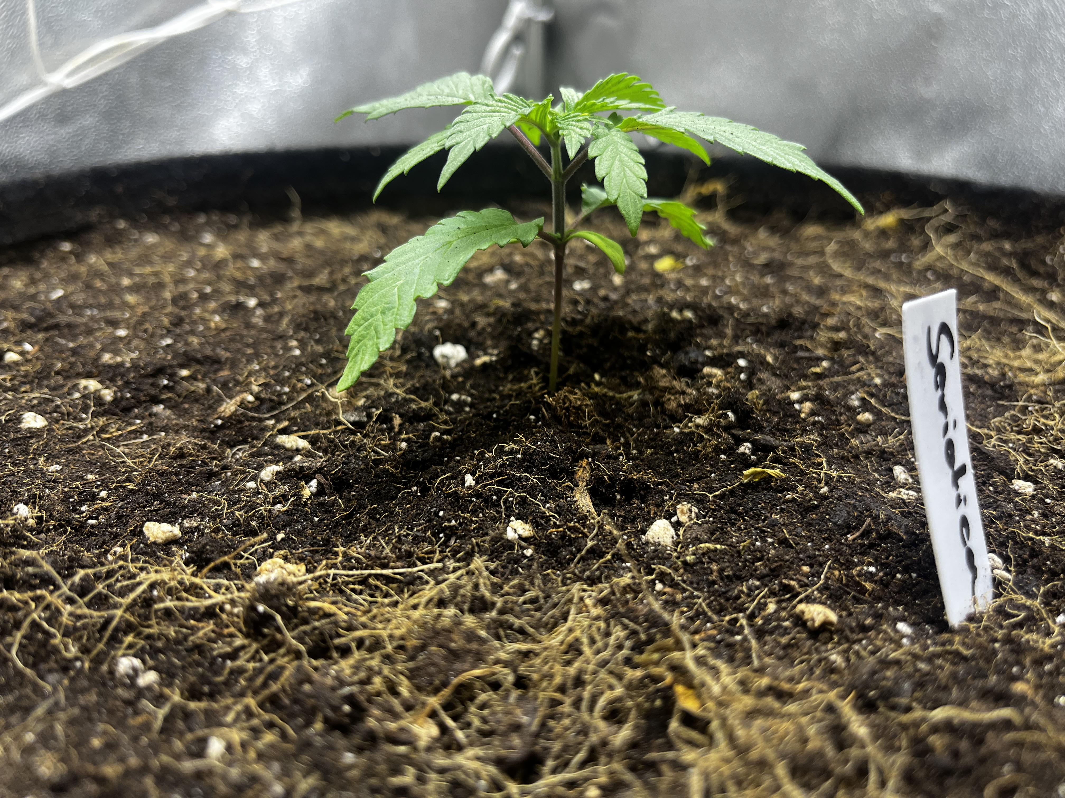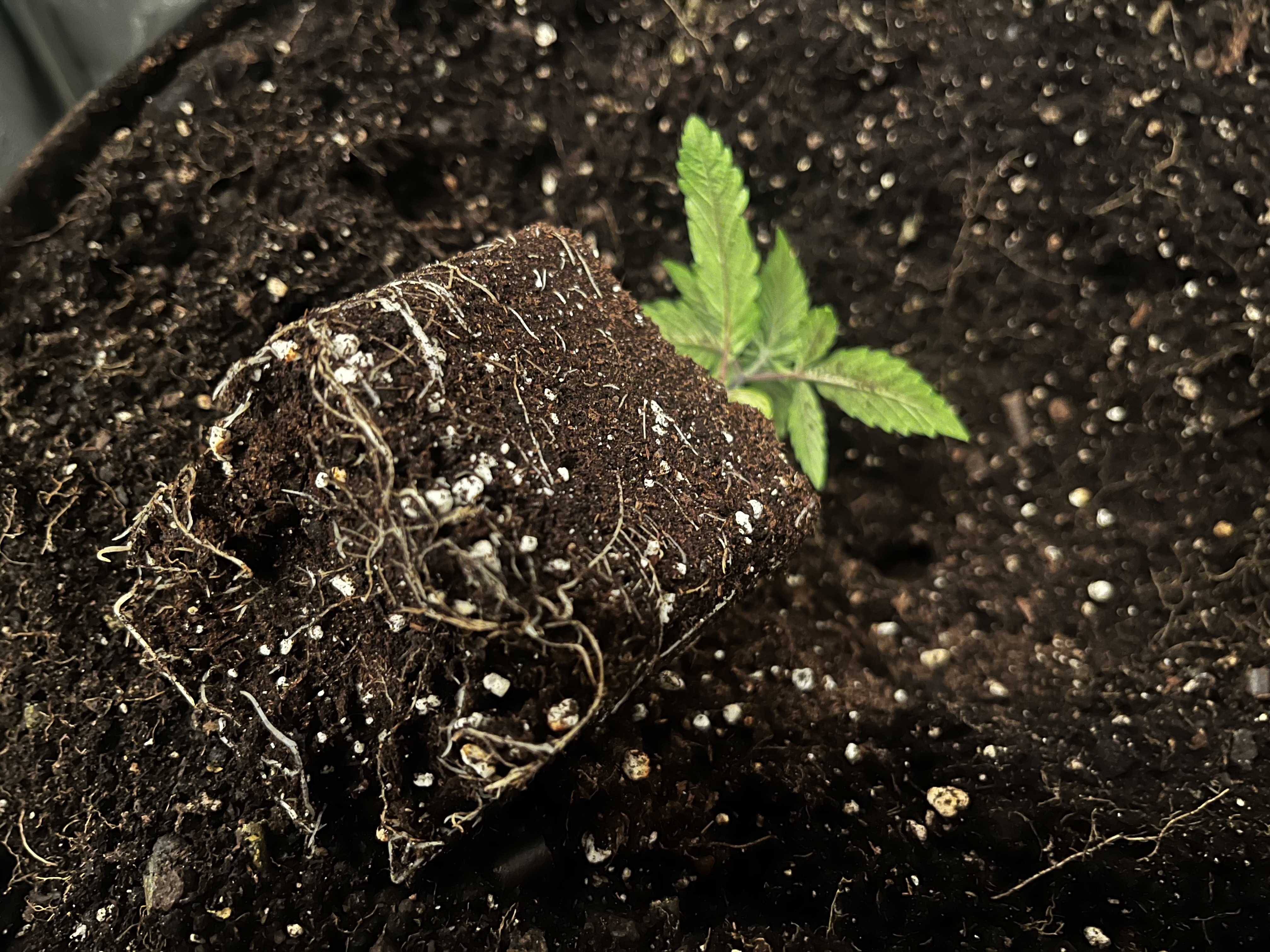 Direkt in Erde gekeimt wurde eine Seriotica von Serious Seeds und spargelt der Lampe schon ein wenig entgegen. Stand nun die ersten Tage auf 14 Stunden Licht unter 2 Flex 10 ohne Um-/Abluft, also kein Wunder und wird heute umgezogen unter eine ~70W Lampe 18/6 mit bewegtem Lüftchen. Muss es noch etwas im Teku aushalten und kommt dann direkt in ihren 39L Endtopf aus Recyclingerde, der aktuell bis zum Abernten noch belegt ist. Rechne mit 1,5-2 Wochen, sollte sich also recht gut ausgehen. ![]()