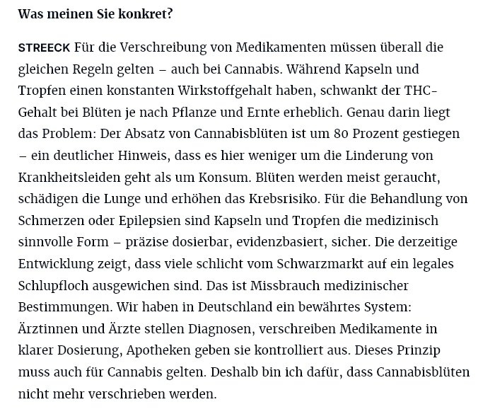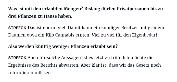 Ebenso sieht er beim legalen privaten Eigenanbau die Menge von 3 Pflanzen kritisch (dass man nur 50 g behalten darf, weiß er hoffentlich…):