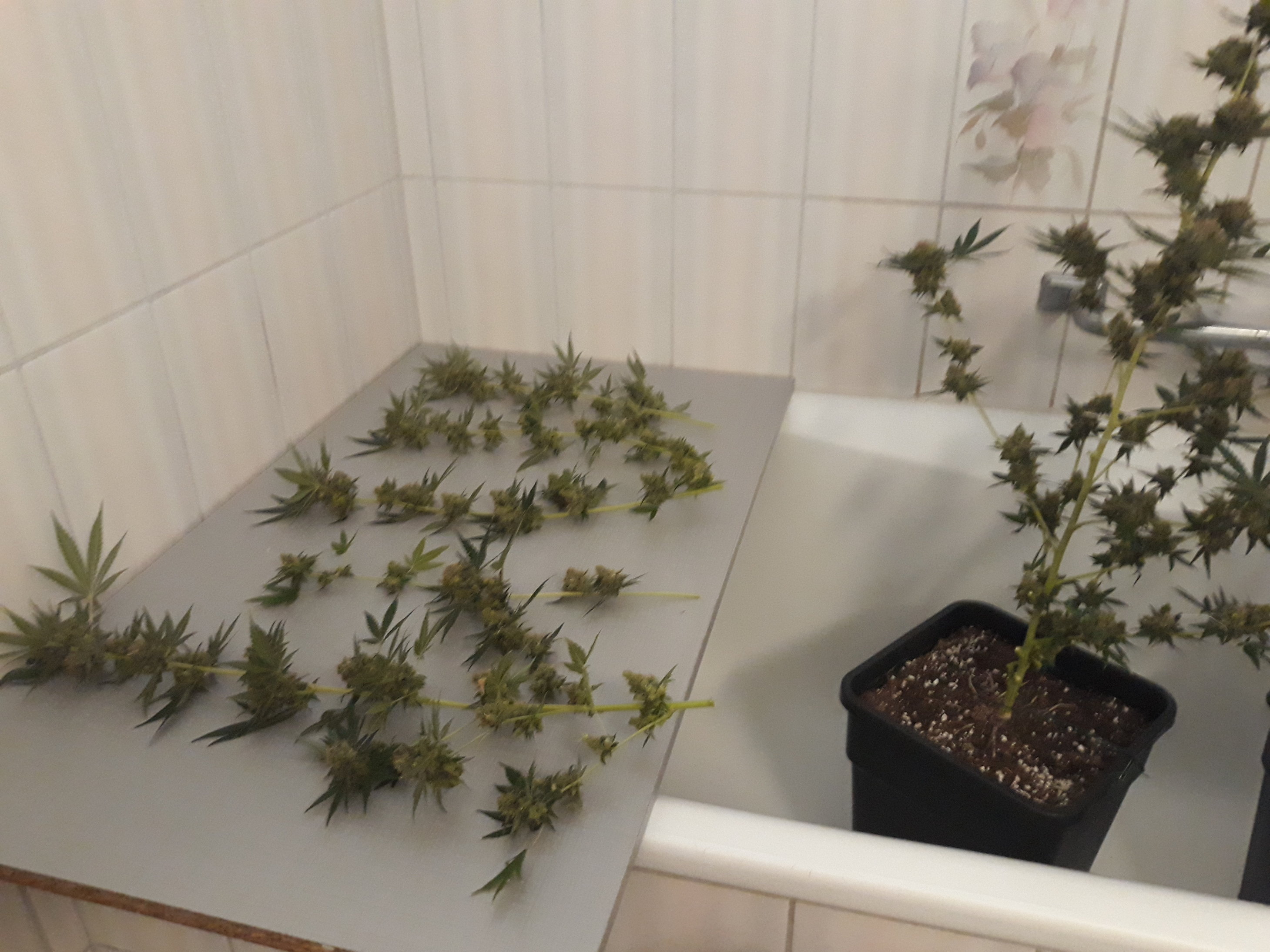 Bei zu trockener Pflanze hat man echt Probleme beim Maniküren, am besten ist meiner Meinung nach die Pflanze 2 Tage nach dem letzten gießen zu ernten da die Blätter in den Blüten noch nicht schlaff sind… ist dann einfacher zu maniküren…
