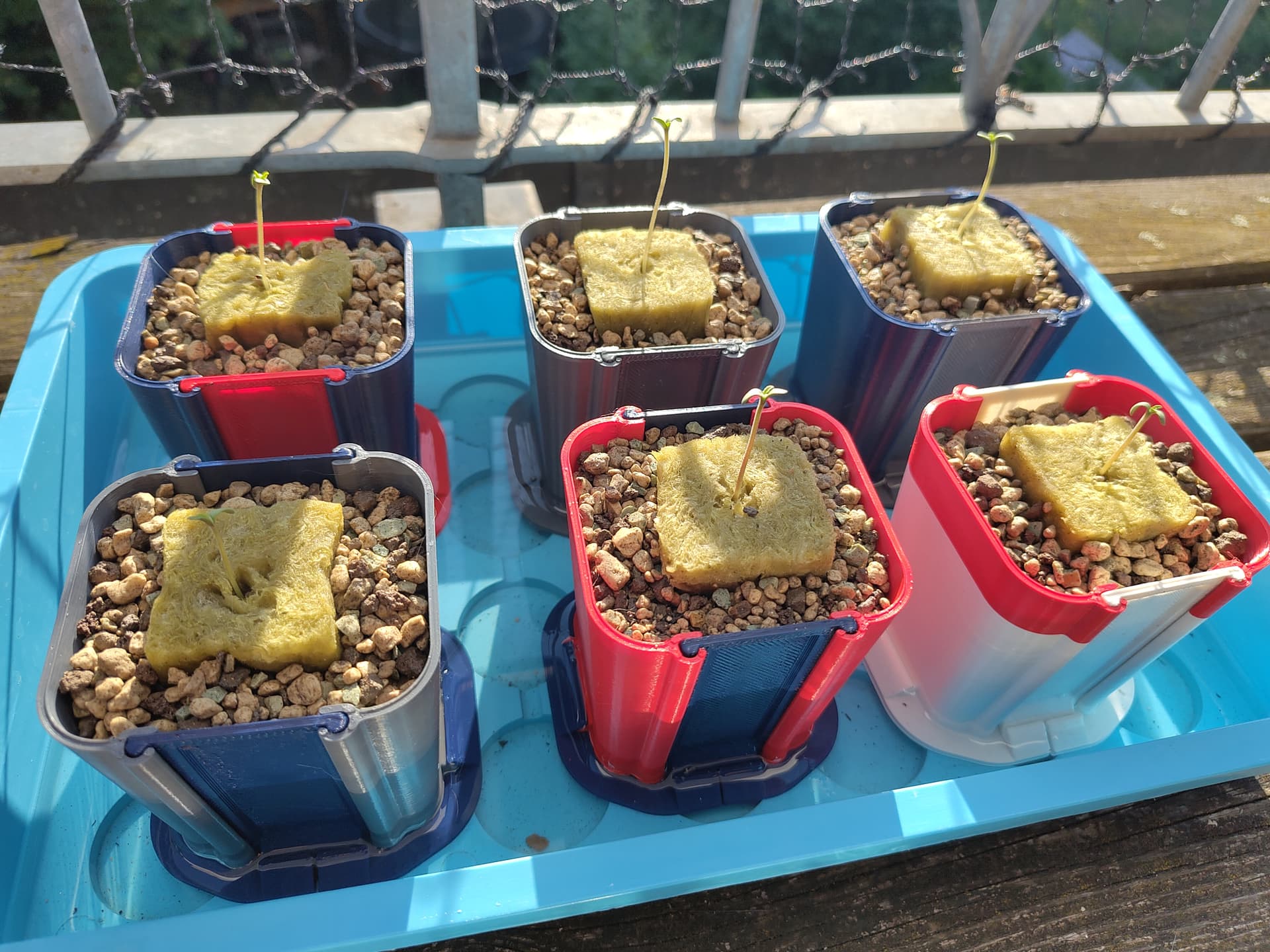 Mineralisches Granulat ist doof zum umtopfen da man keinen Ballen hat sondern alles einfach auseinander fällt. Habe Anzuchttöpfchen für Granulat gedruckt. Nach der Anzucht stellt man sie in den teilgefüllten finalen Topf und zieht den Boden seitlich raus. Danach füllt man den Topf außen rum komplett und zieht die Seitenteile nacheinander raus. Hoffe das könnte ich gut erklären. Wenn es dann so weit ist dokumentiere ich es ausführlich.