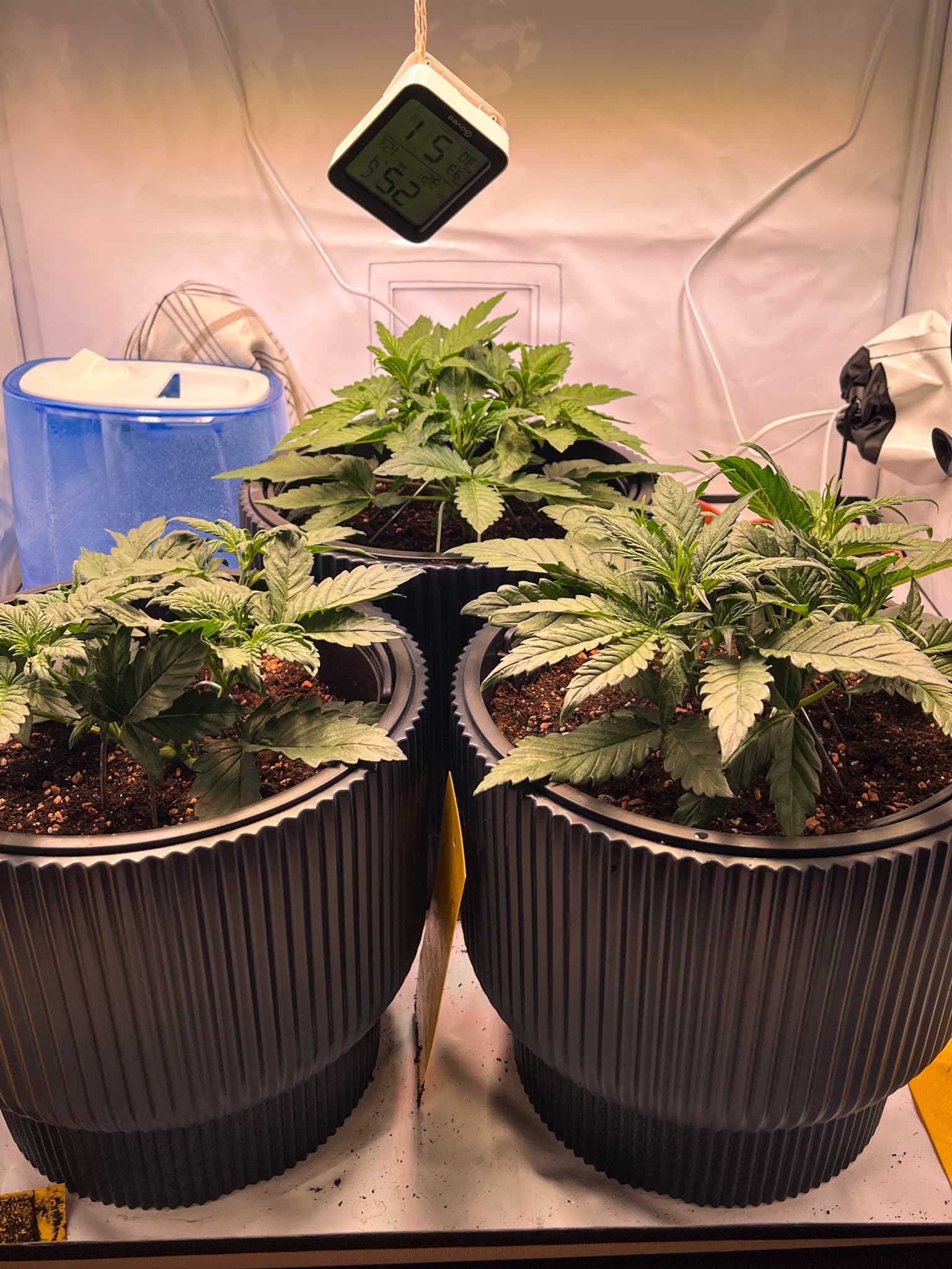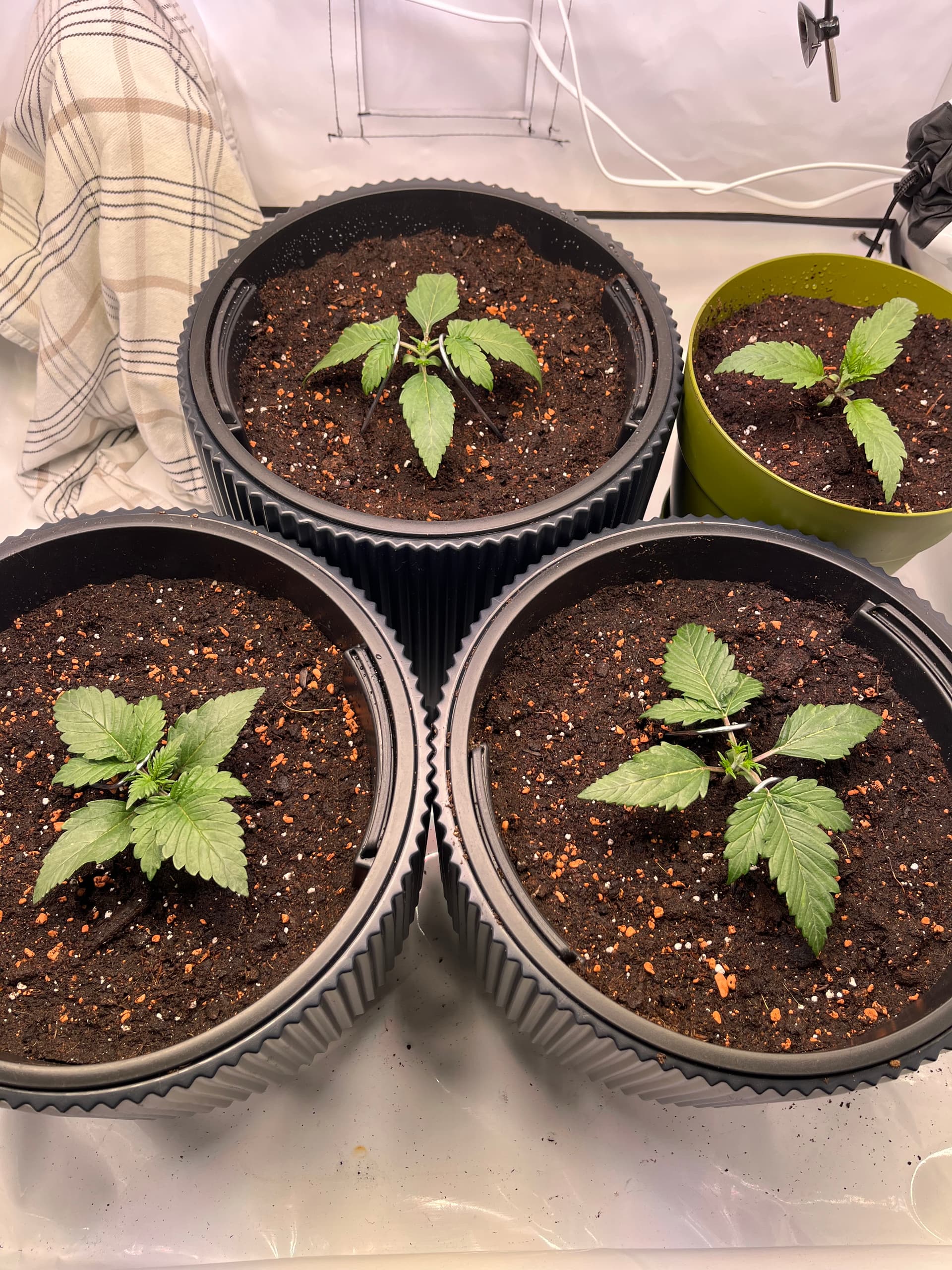 meine Idee wäre die 3 morgen Abend nachdem die Erde nochmal relativ durchgetrocknet ist und sie noch einen kleinen Schwung durchhaben, schlussendlich in den finalen Topf zu setzen.