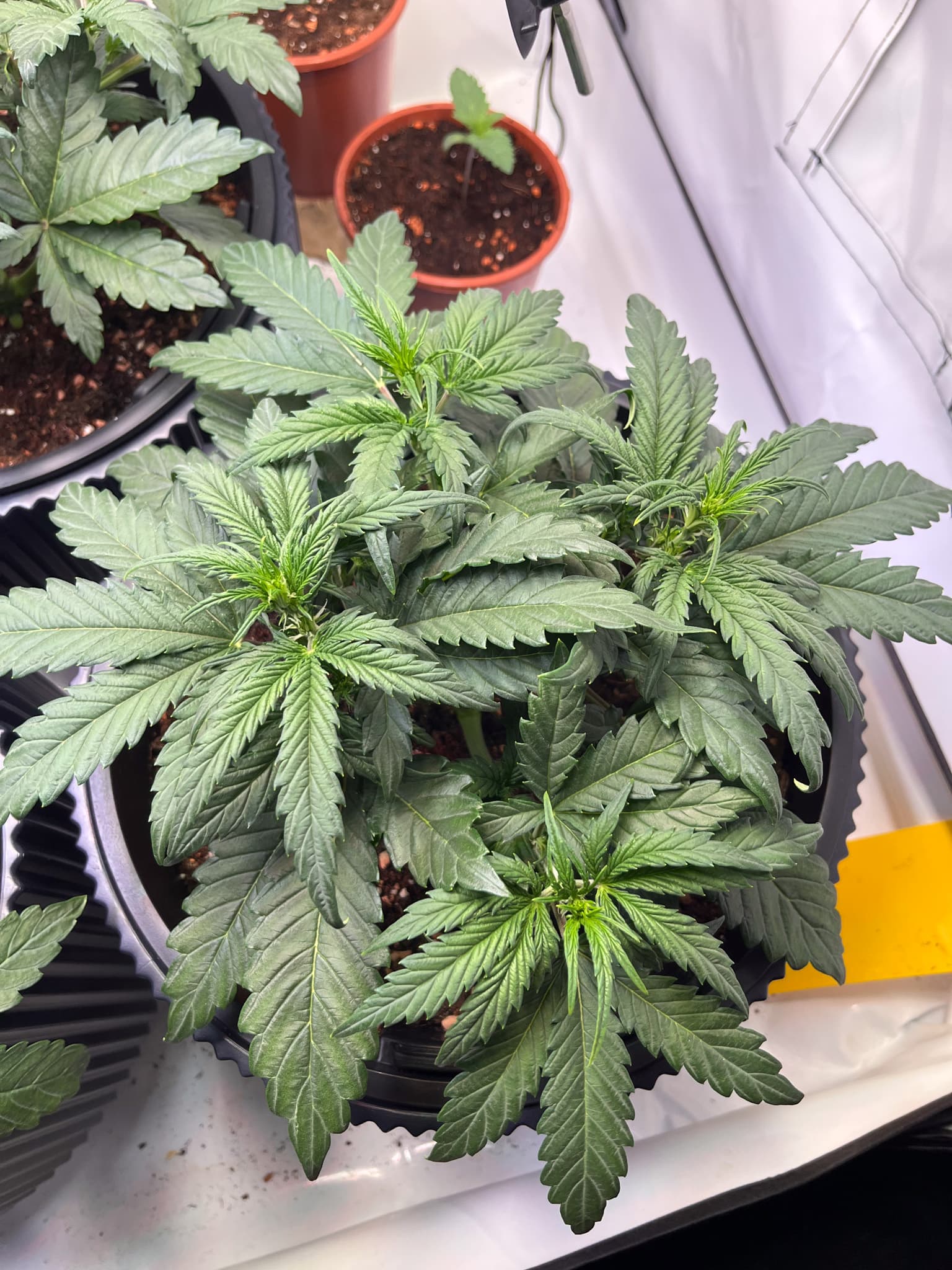 Sie wachsen jetzt schnell und sehr buschig gedrungen weiter, bin ein wenig überfordert damit, da viele Blätter jeweils andere verdecken. Ich hoffe die stretchen sich die nächsten Tage auf ein gutes Niveau