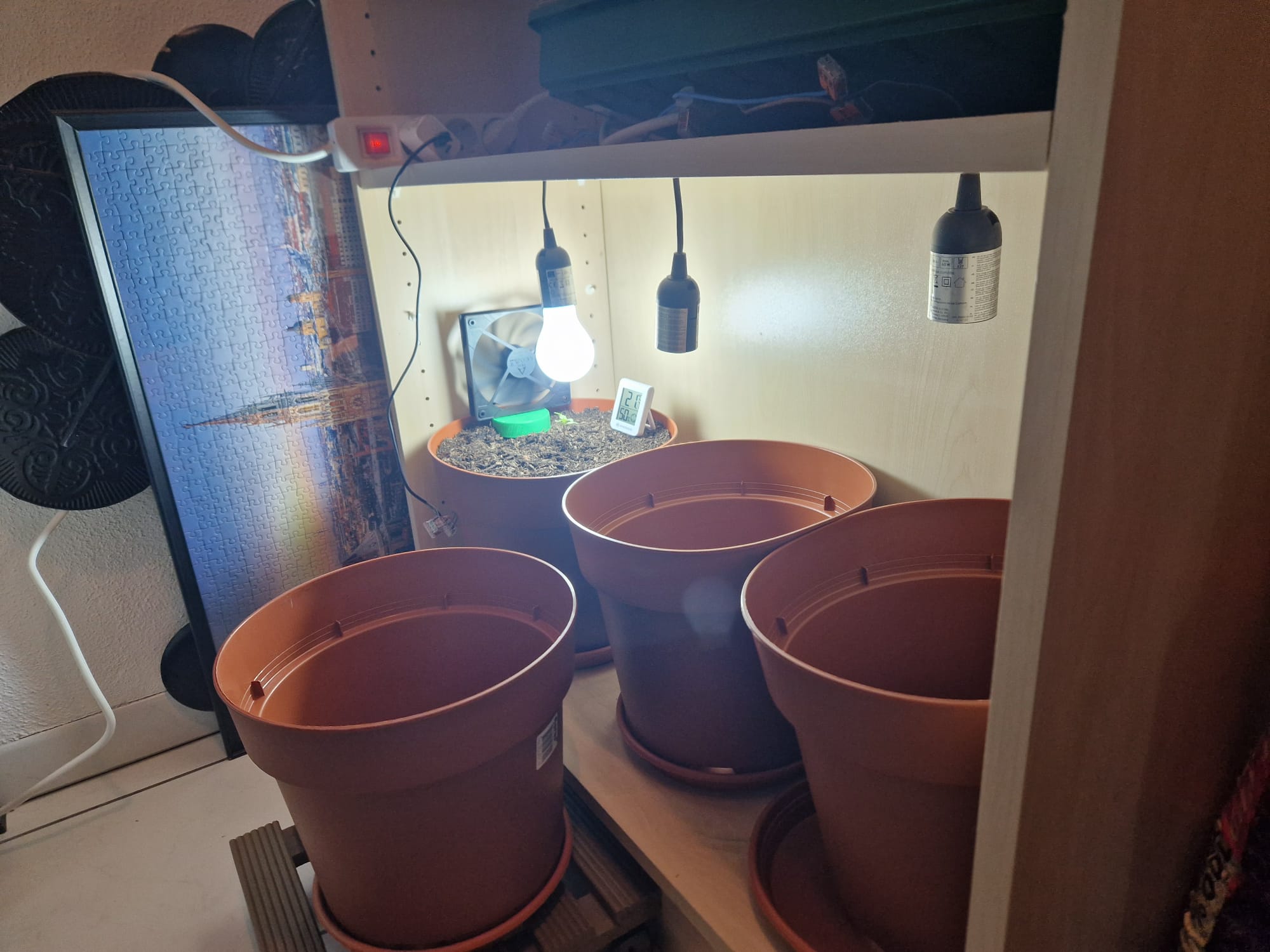 Da will ich auch mal motivieren, sind 6x5 Watt gu5,3, die Samen haben am 6.4 Wasser erhalten. Aus der Erde waren sie am 9.4, nur die kleine Mimosa auto war erst am 13.04 zu sehen.
