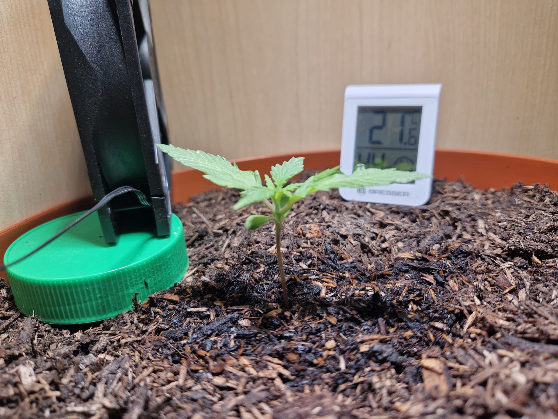 Gegossen mit der 1/3 bzw. 1/6 Regel, leider etwas TrauermĂŒckenbefall an allen Pflanzen. Vermutlich von drauĂen oder vielleicht doch die Markenerde aus dem Baumarkt.