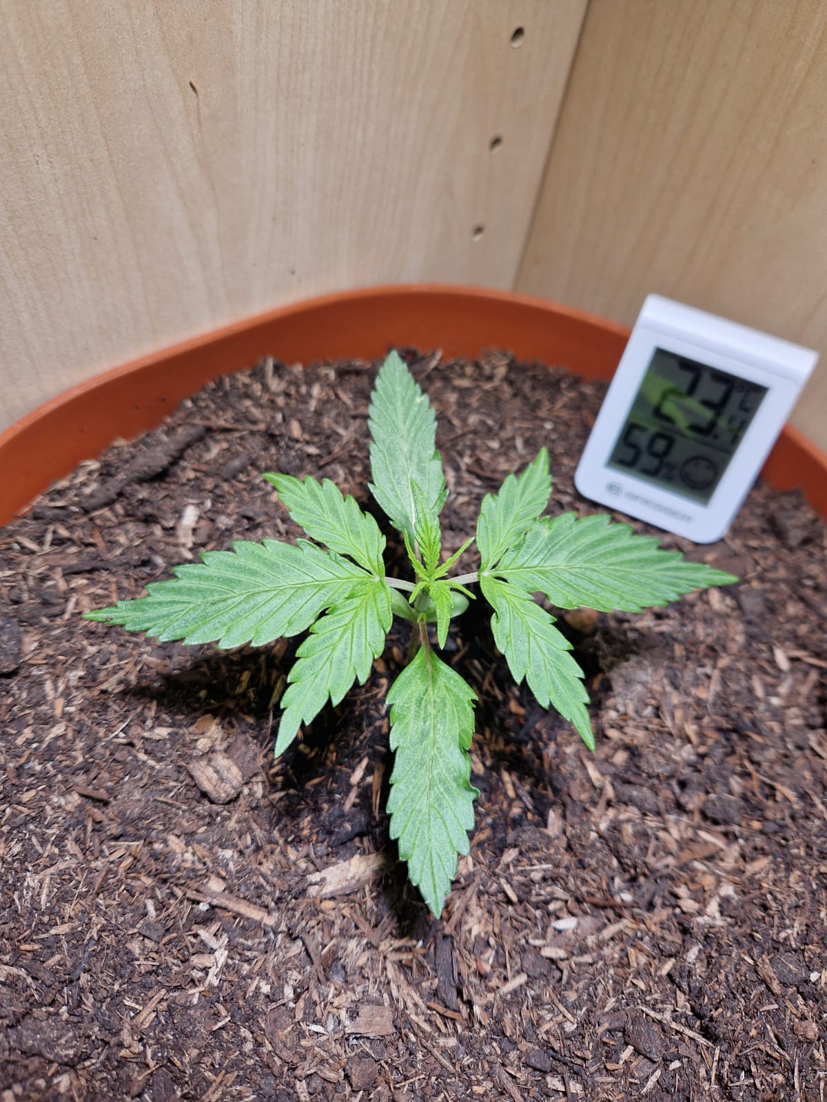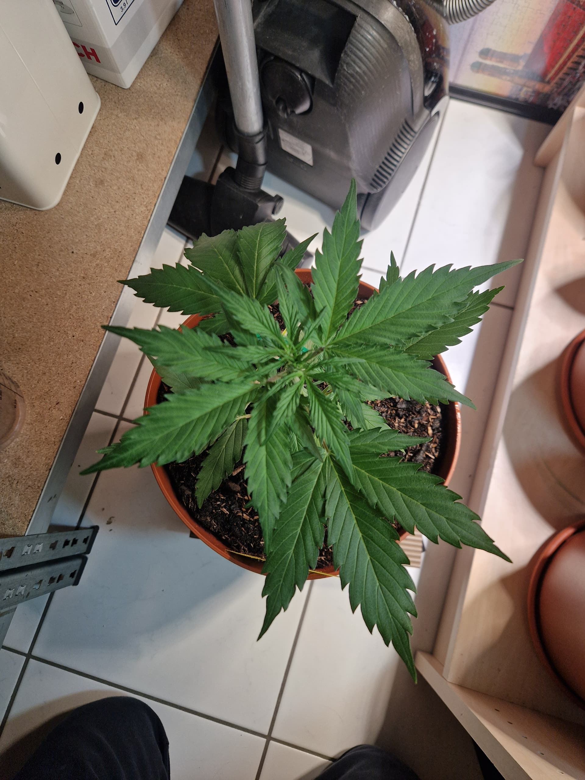 So das 5-Finger-Blatt ist ausgebildet. Somit befindet sie sich offiziell in der Wachstumsphase ![]()
